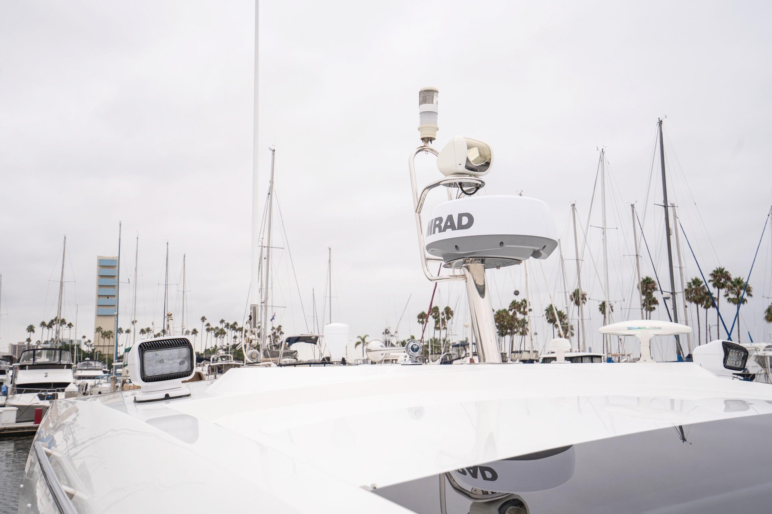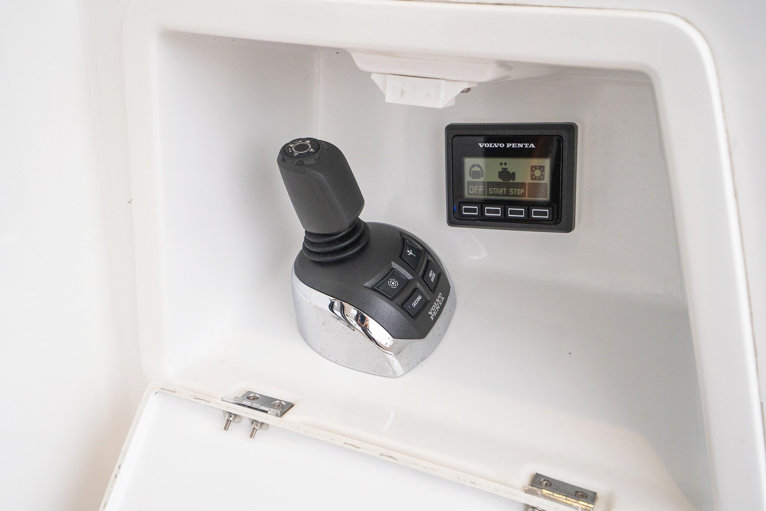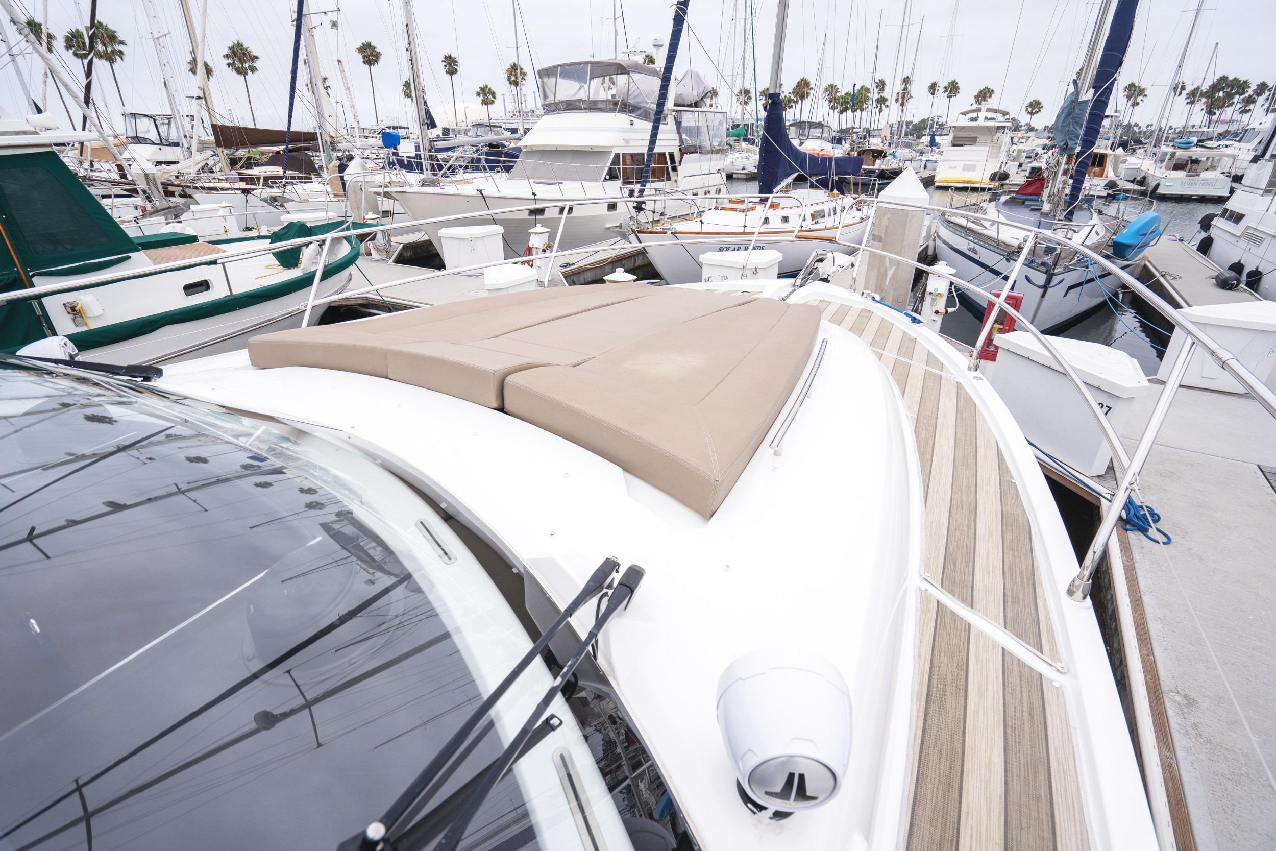 Powered by LOW HOUR Twin Volvo Penta IPS 500 (370 HP each) pod drives, the NC 14 offers exceptional maneuverability, fuel efficiency, and a smooth, quiet ride. Joystick control at helm and aft cockpit makes docking or close quarter handling effortless. The exterior features a spacious cockpit with a sliding aft bench, an electric sunshade, and wide side decks leading to the foredeck sunpad. The hydraulic swim platform makes access to the water or use of a tender a breeze.