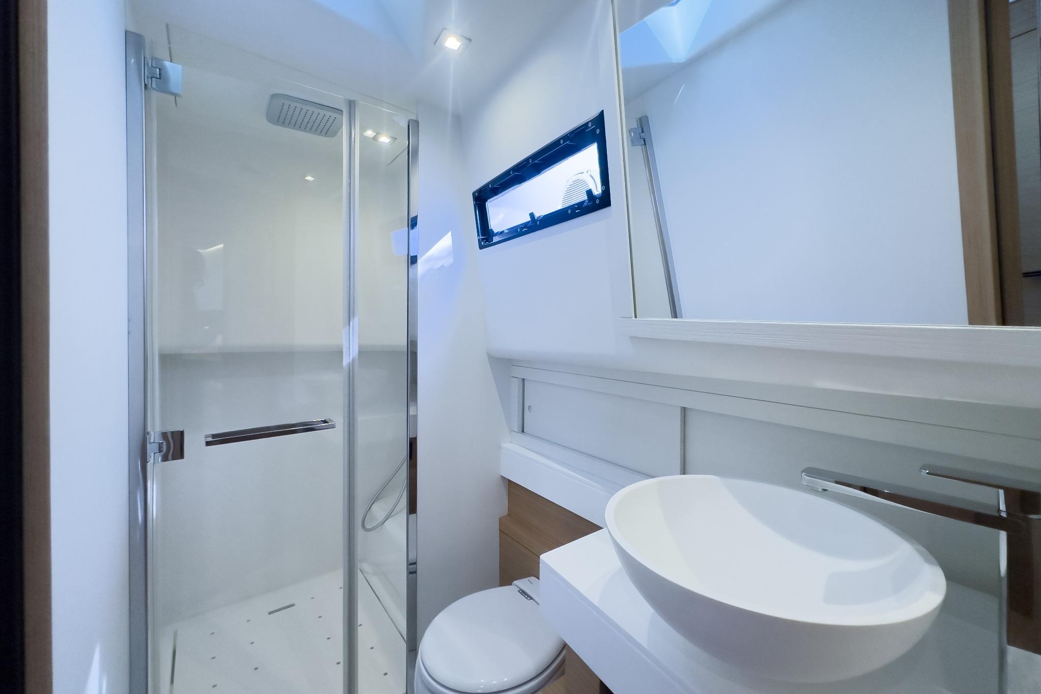 spaces with two cabins and two heads. The lines and the refined furniture are enhanced