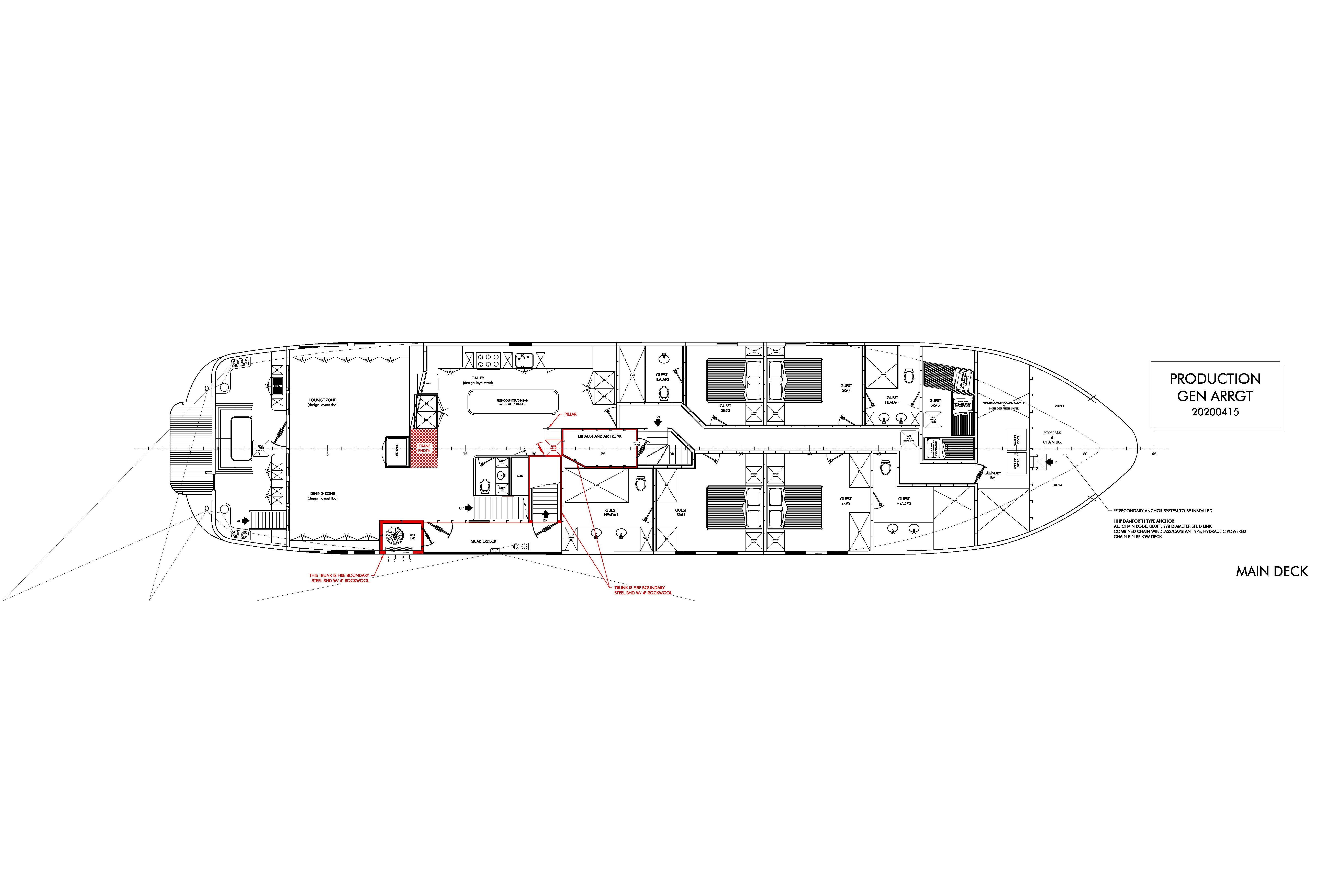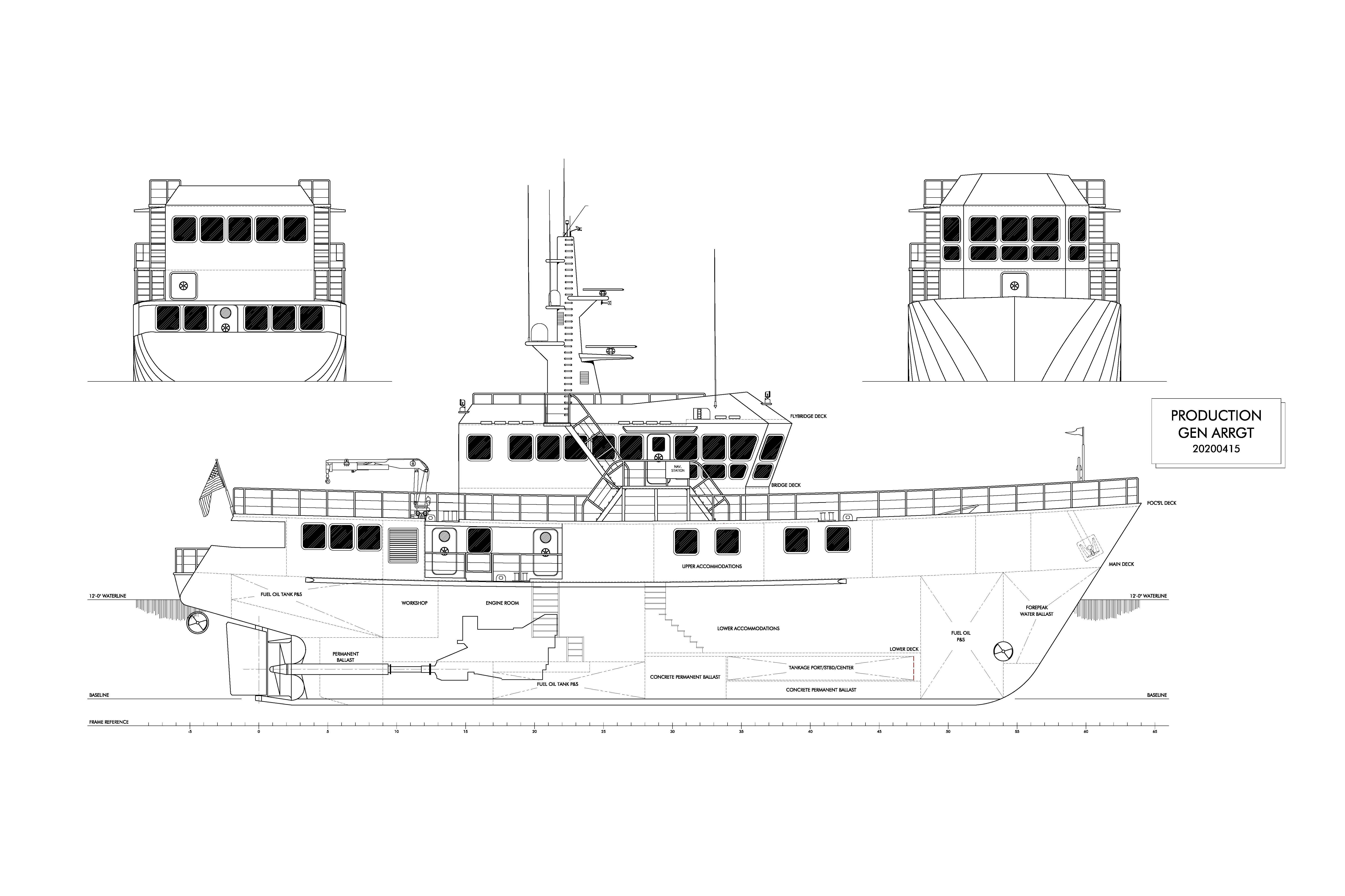 - Crew accommodations for up to 4 in 2 cabins, with gym expansion capability for up to 6 crew in 3 cabins