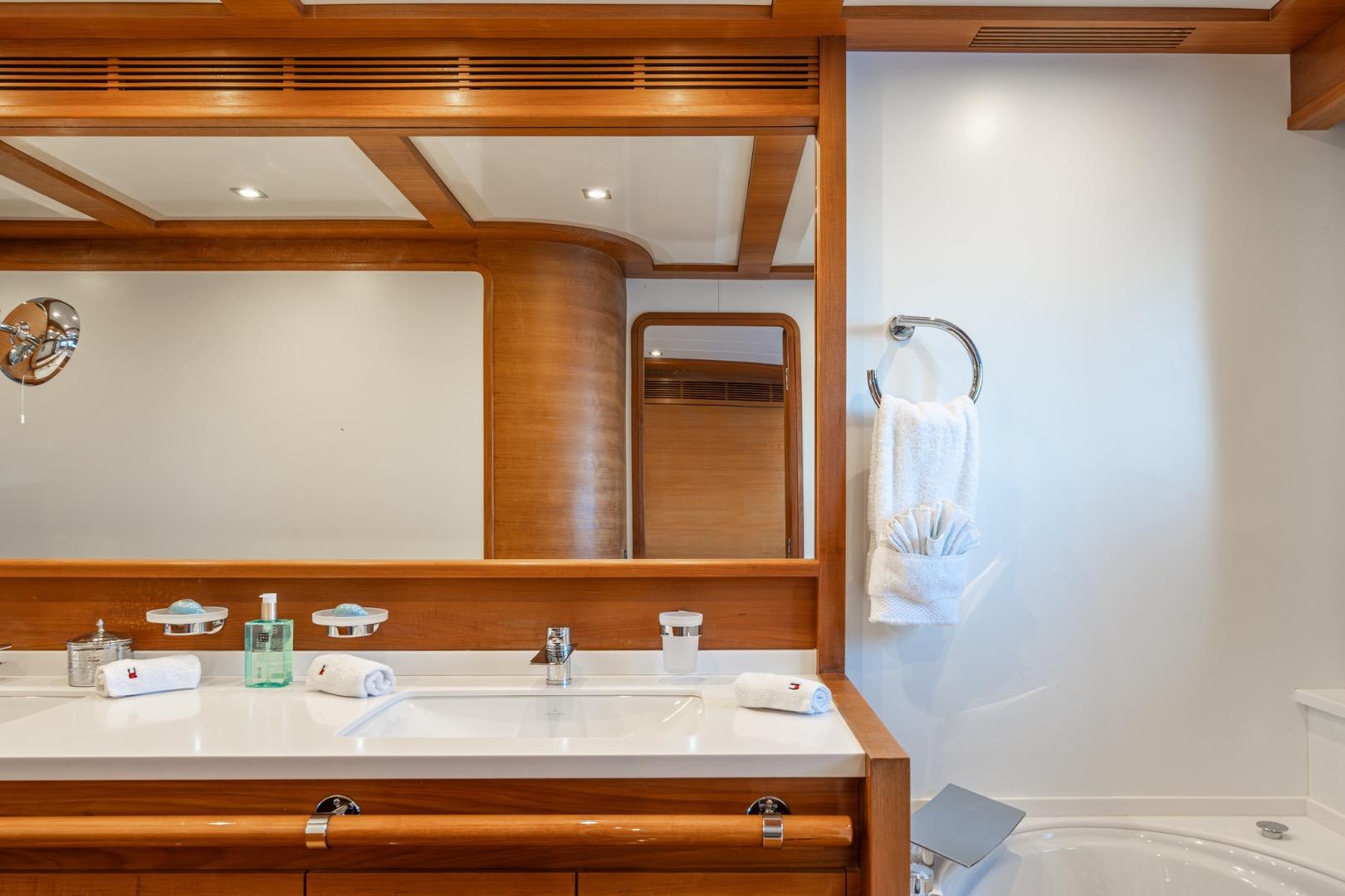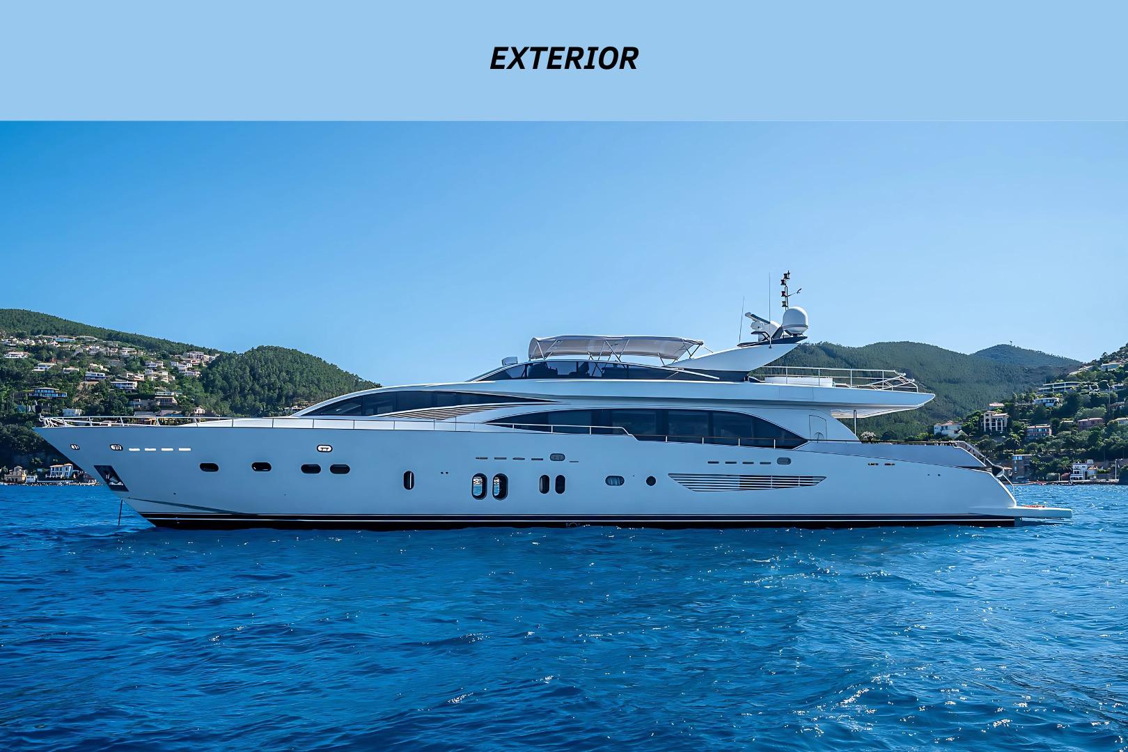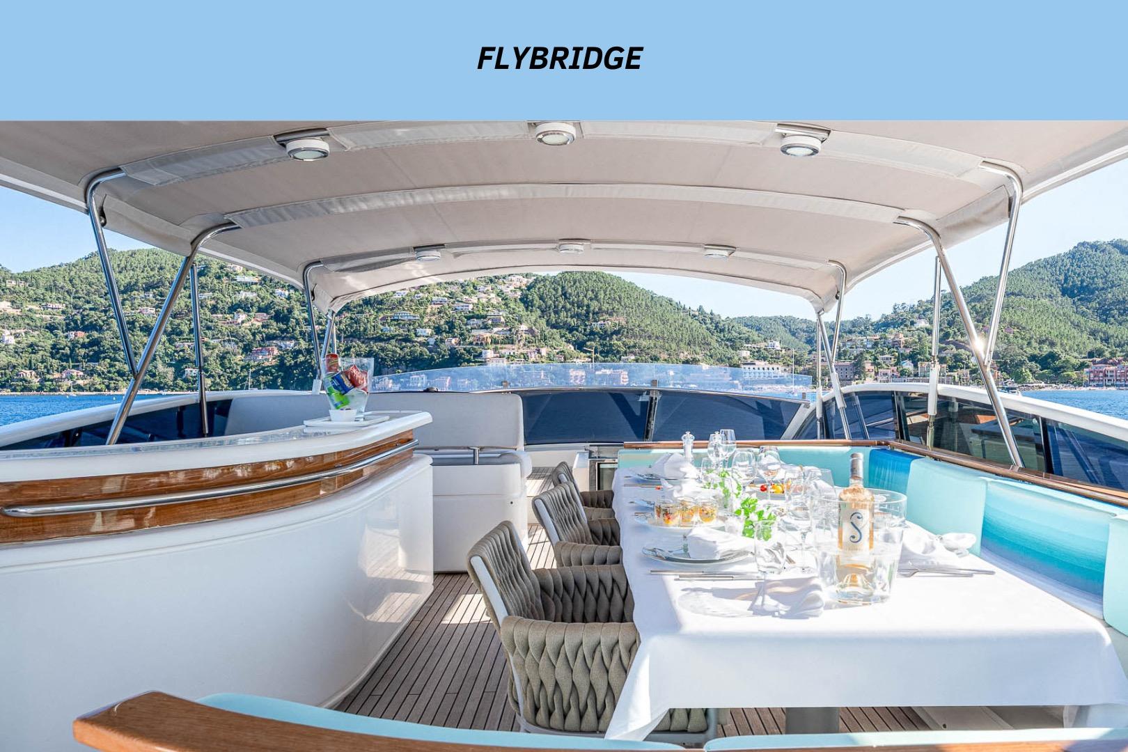 Avec ses quatre cabines luxueuses pouvant accueillir jusqu’à 8 invités et son immense flybridge idéal pour recevoir famille et amis, ce yacht de 34 mètres offre un volume impressionnant. Il atteint une vitesse de croisière de 25 nœuds et jusqu’à 32 nœuds en pointe, garantissant des navigations rapides et agréables.