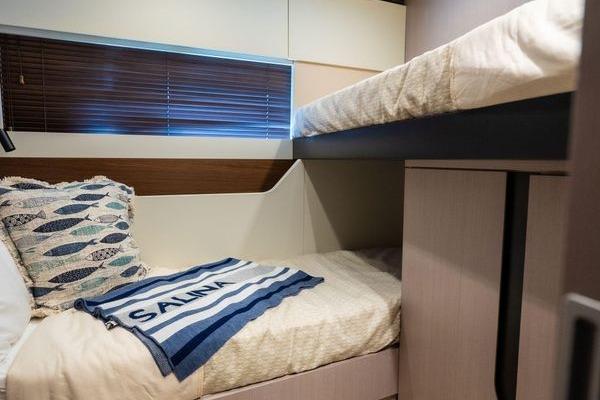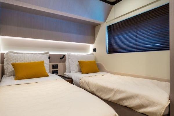 Embody an eco-sporty nature with the S7. Thanks to the extensive use of carbon fiber, the adoption of a triple VOLVO IPS engine configuration and a high-efficiency hull, S7 embodies the brand’s revolutionary eco-sport philosophy, delivering maximum performance with a reduction in both fuel consumption and emissions of between 20 and 30% (compared to the traditional propulsion systems), ensuring maximum silence and a sharp, dynamic cruise. The S7’s sporty character is highlighted by her sleek profile, enhanced by the arched line created by the extensive glazing that runs seamless along the superstructure. This magnificent graphical sweep and the cutout bulwarks allow natural light to fill the interiors as much as possible. The carbon fiber-enhanced superstructure offers more spacious environments while maintaining excellent levels of performance and stability. The interior lounge is cool and modernly organized, flooded with light from the large side windows. A deep knowledge of life at sea cultures the latest trends and original design concepts by interior designer Yachtique to realize a dynamic and divergent interior scheme for the S7. The neutral palette of matte-finished colors is at once cozy and chic, softening the sleek, modern furnishings. The surfaces and spaces are designed to minimize obstacles and enhance continuity, expressing the series’ sporty DNA on the inside as well. S7 is the dream boat for contemporary owners who are dynamic and sporty, who love cruising in grand style and in absolute safety, and who also like to keep a close eye on sustainability.