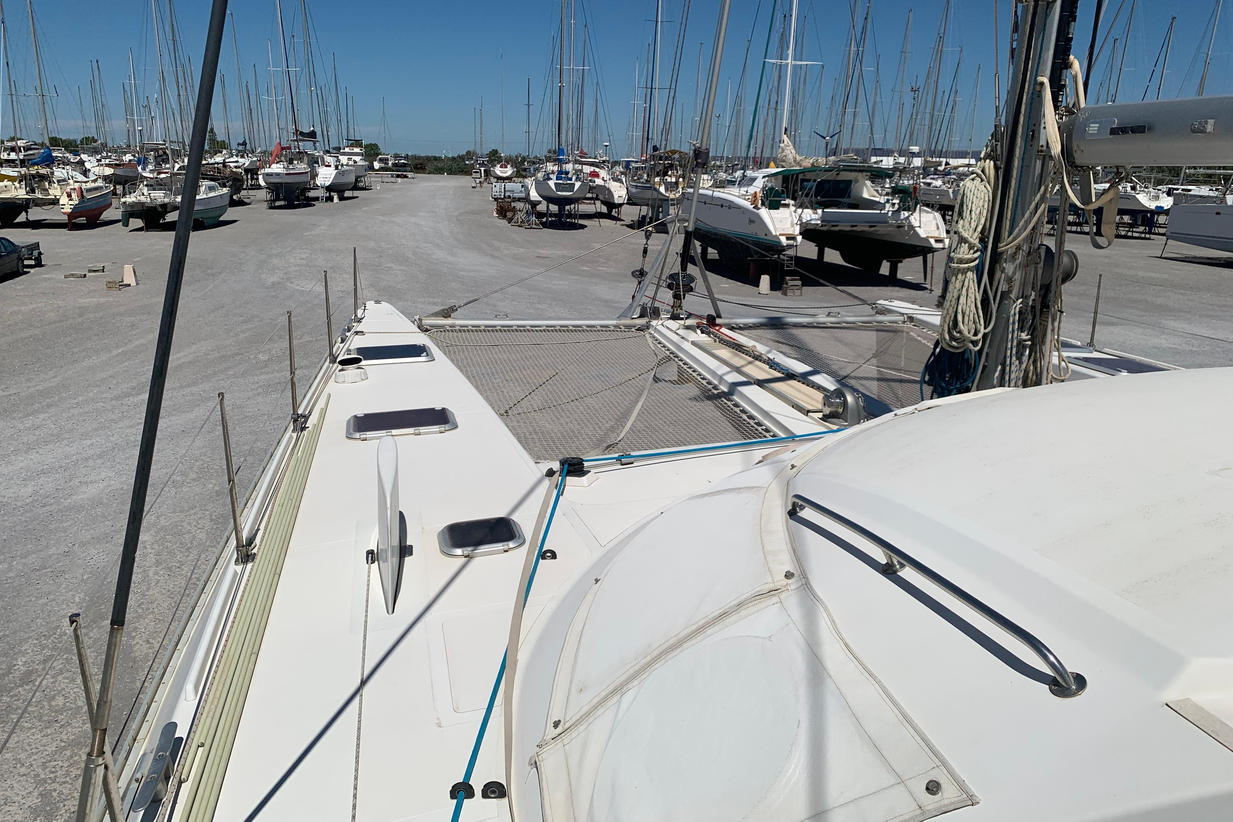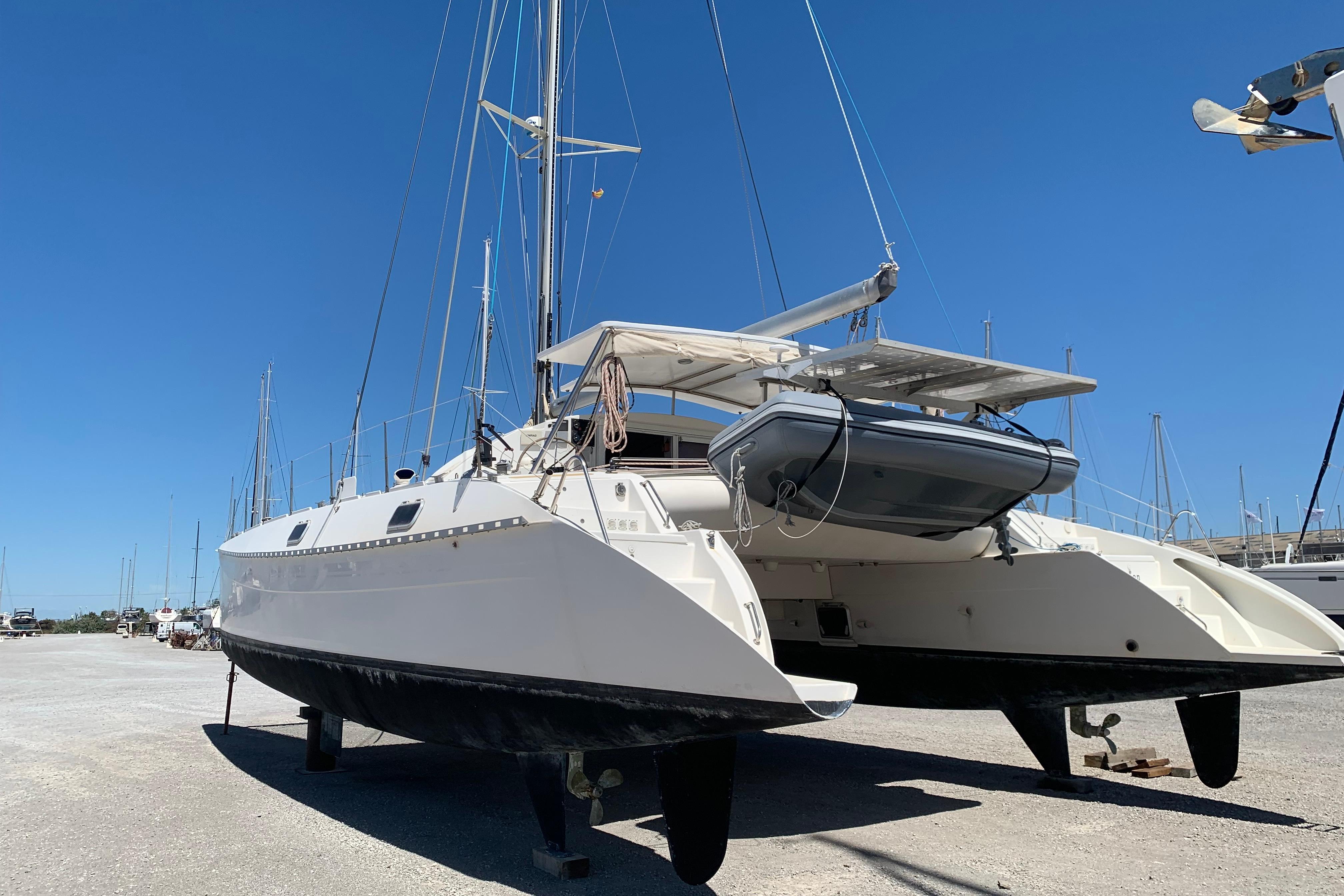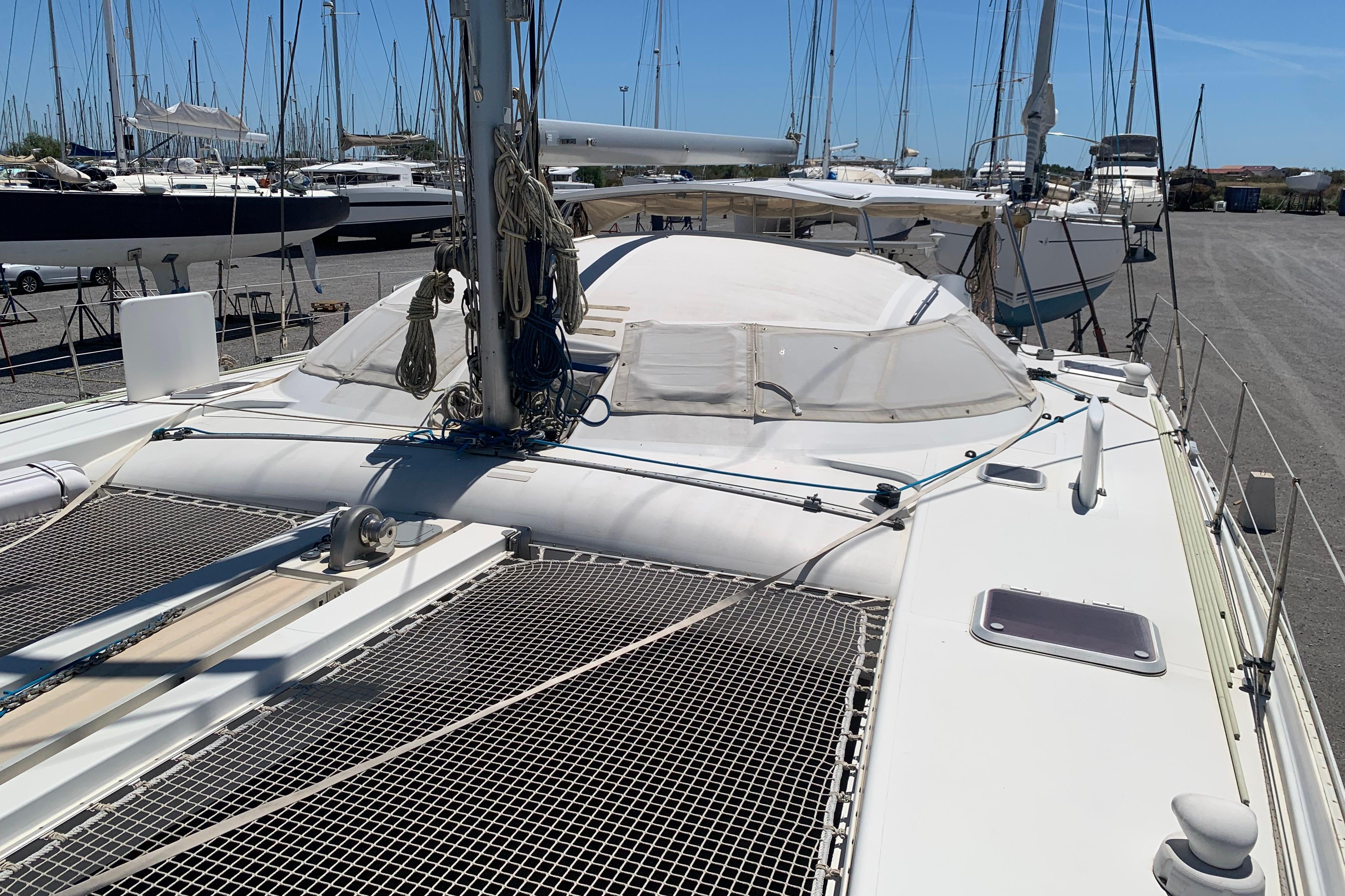 PASOP, Outremer 45 génération Danson, millésime 2002, numéro 12 de série, se distingue par ses jupes rallongées qui améliorent l’ergonomie et le confort à bord. Ce catamaran est en très bon état et prêt à repartir autour du monde. Son plan d’aménagement familial offre 4 cabines doubles et deux salles d’eau, un carré spacieux avec sellerie récente et une cuisine équipée, idéale pour la vie au long cours. Côté propulsion, il est équipé de deux moteurs Yanmar 3GM30 bien entretenus, d’hélices repliables FLEXOFOIL et de réservoirs de gasoil de grande capacité. Le gréement a été entièrement renouvelé en 2019 avec une grand-voile à corne Hydranet DELTA VOILE de 2023, un solent autovireur de la même génération et un jeu de voiles complet pour toutes les allures.