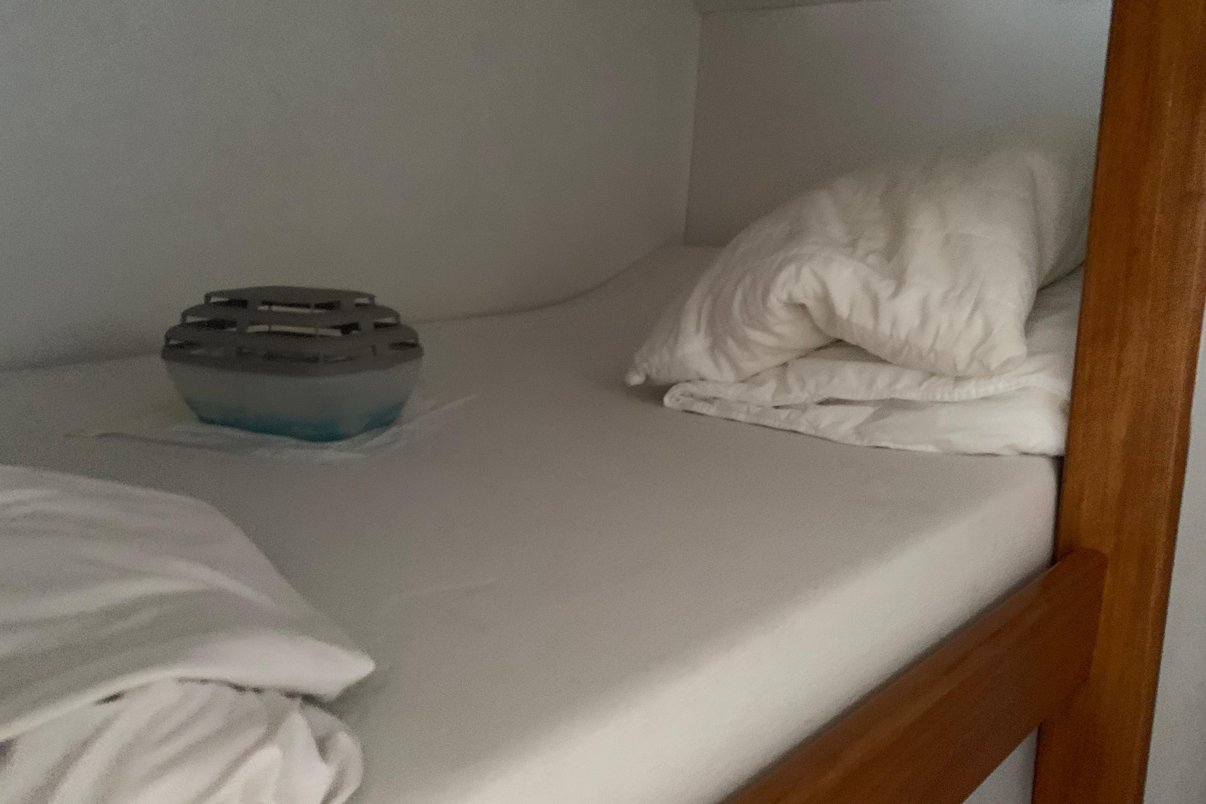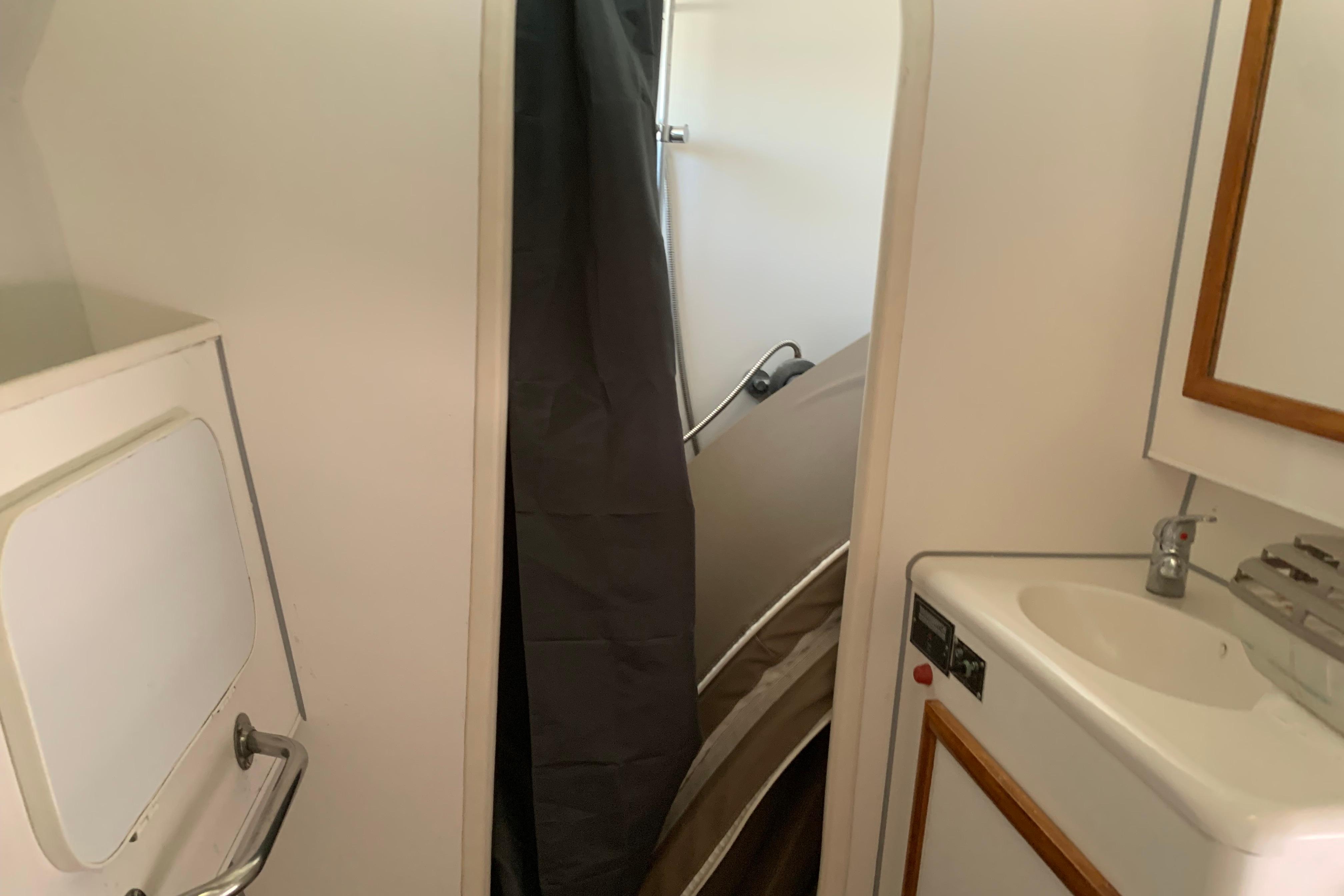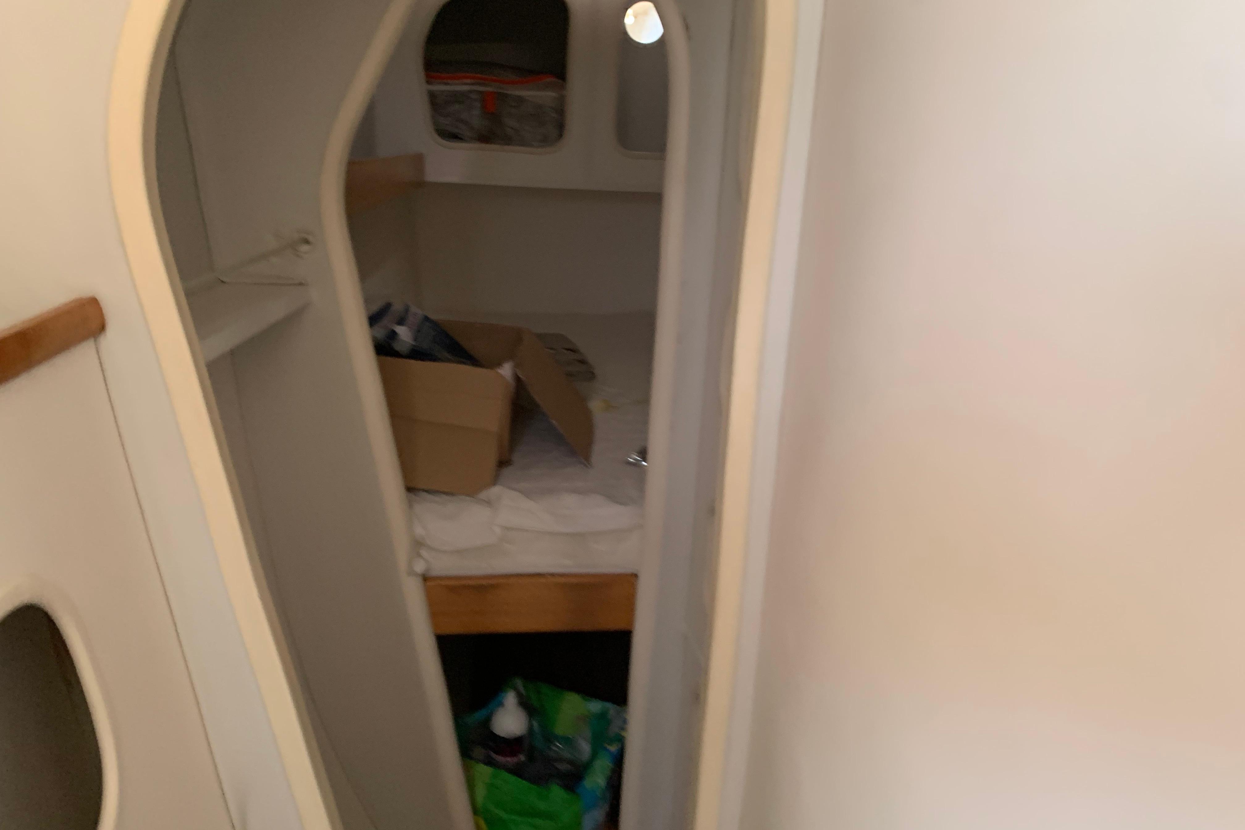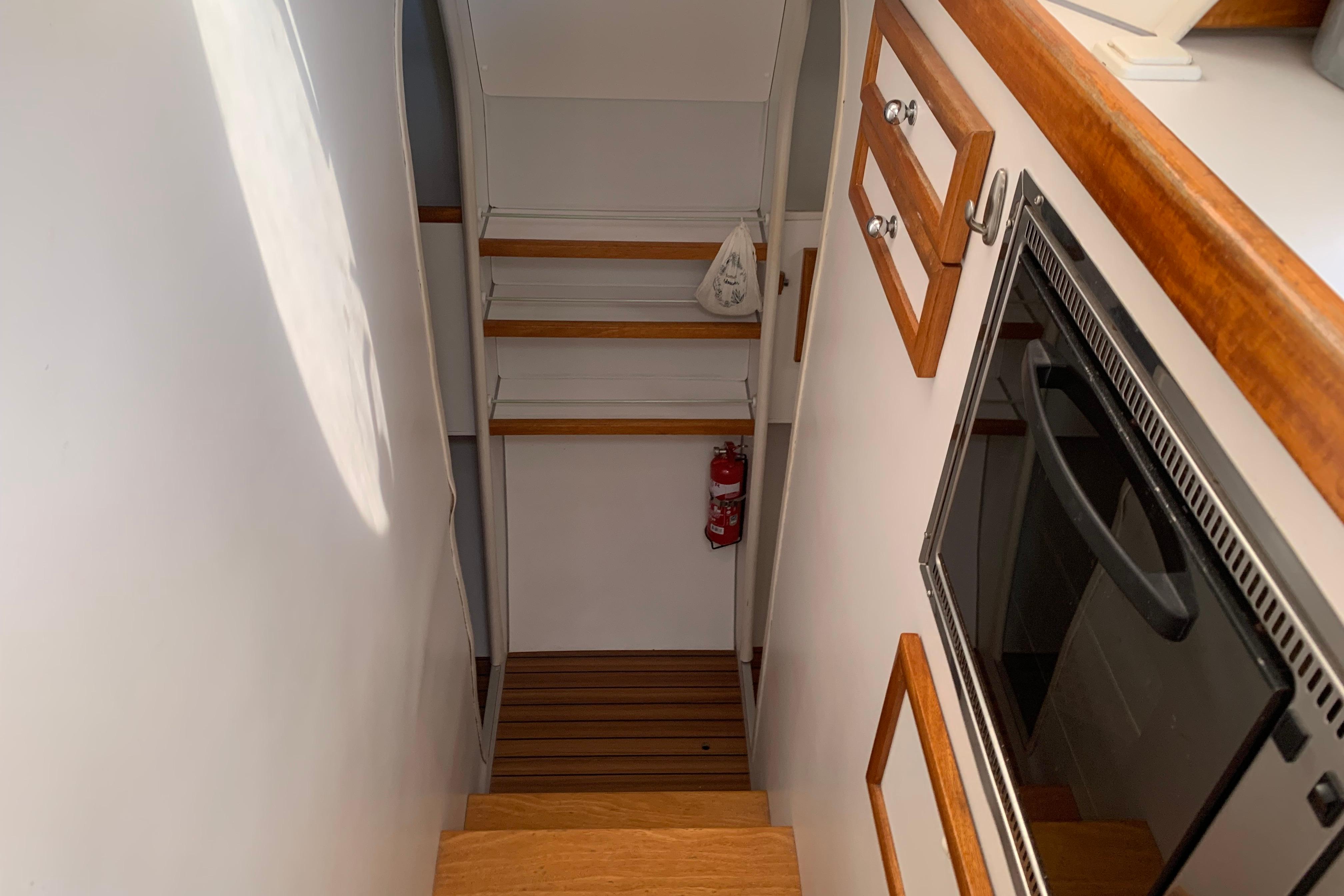 Sur le pont, on retrouve un bimini rigide avec récupérateur d’eau, un cockpit habillé en teck, un guindeau électrique récent, une annexe Highfield 340 avec moteur Honda 20 cv (2023) ainsi qu’un équipement de sécurité complet incluant un radeau de survie 8 places. L’électronique est fiable et fonctionnelle, comprenant radar Furuno, AIS, GPS, pilote automatique hydraulique et affichage Raymarine au poste de barre. L’énergie est assurée par 4 batteries lithium 100 Ah "neuves" (2023), trois panneaux solaires de 180 W, alternateurs et régulateurs neufs (2025), garantissant autonomie et tranquillité. Enfin, le confort à bord est renforcé par un dessalinisateur Dessalator D60 12V et de larges capacités d’eau douce.