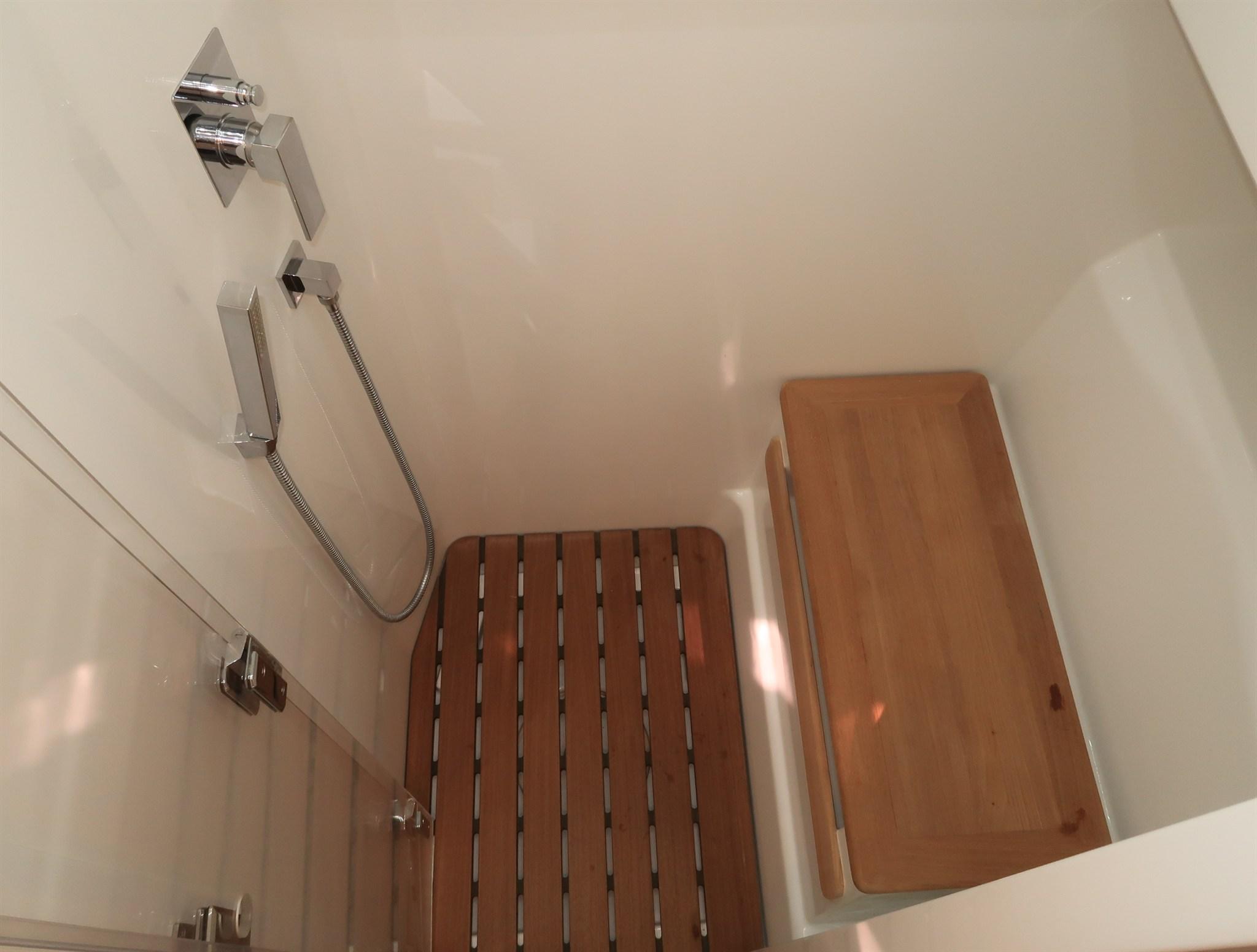 Engine Alarm, Bilge Alarm, 2 Alternator, Anchor (20kg SS with 100m SS chain and hydraulic anchor arm system), Water pressure pump, Auto-Trim (Volvo Interceptor System with auto trim and list), Batteries (2x 90 Ah + 4x 260 Ah AGM), 8 Folding cleats, Draining System, 2 Shore power cable (Main + AC), Special Colour (Anniversary Silver (AS M9389) hull), Anchor mount (Hidraulyc foldable system), Electric Flaps (Volvo BTS trim tabs), Tender Garage, Fire Extinguishing System (firebuoy), Flaps Indicators, Washbasin in the cockpit, Courtesy Lights (on deck), 4 Underwater lights, Battery Monitor, 8 Fenders, Gangway (Besenzoni hydraulic), Platform (hydraulic tender lift), 3 Automatic Bilge Pump, Teak deck (Synthetic Teak Grey), Entry door, Teak Cockpit (Synthetic Teak Grey), Stabilizers (gyroscopic Seakeeper 6), 2 cockpit table (with foldable teak wings and electric pedestal convertible into sun pad), 2 guard rails with gates, Horn, T-Top (Singal white).