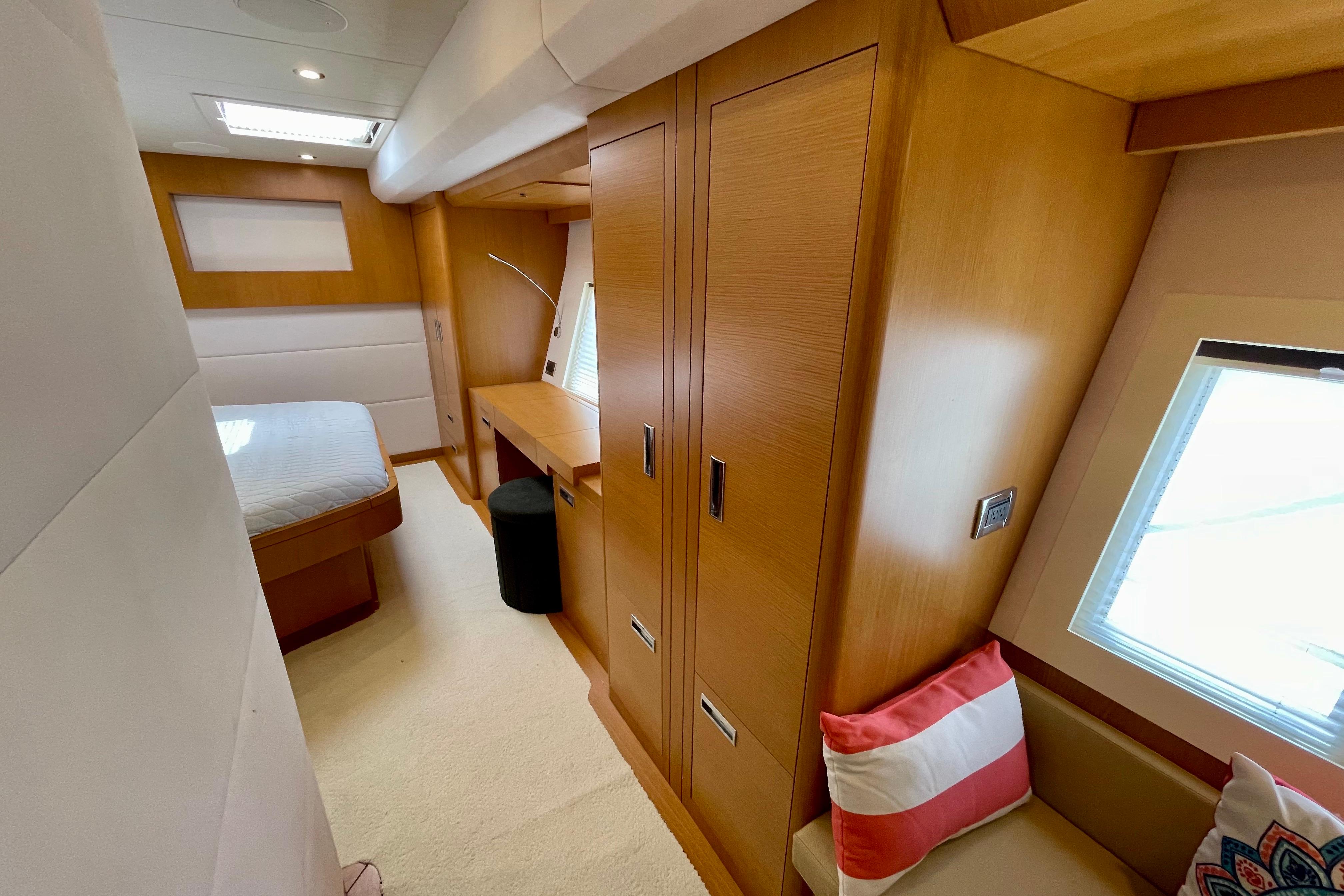 - Large storage room in the starboard forepeak OR Additional crew cabin with bathroom