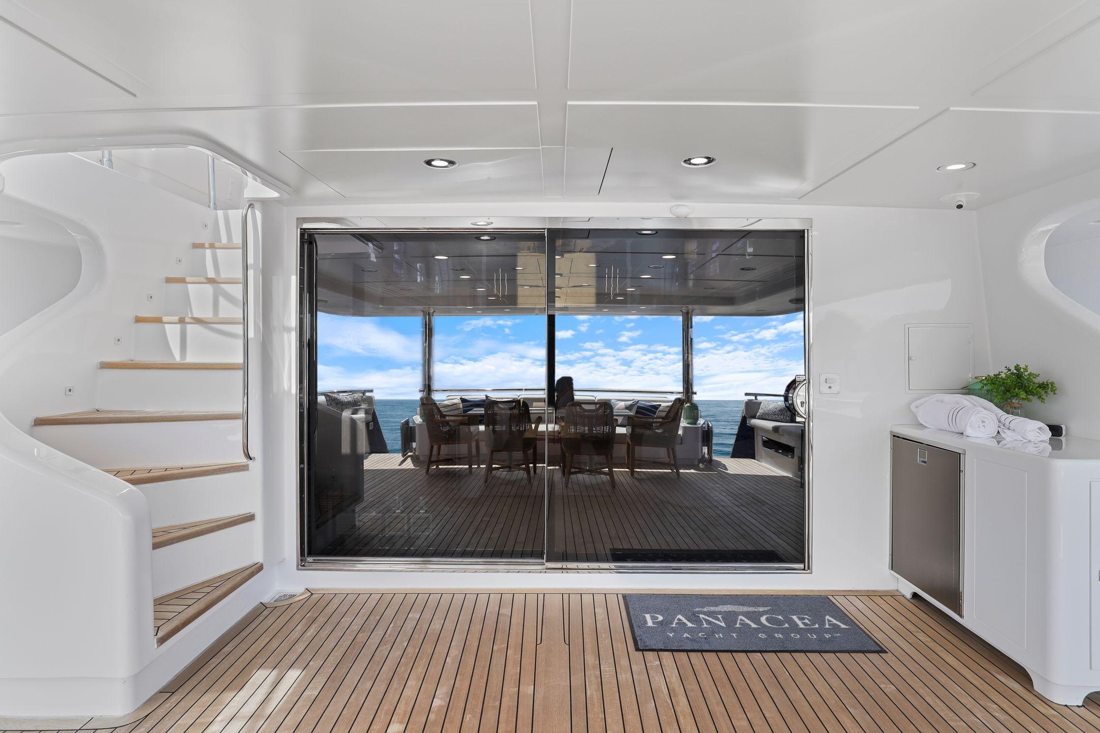 Fresh out of a complete "down to the walls" refit, M/Y PANACEA represents THE BEST buying opportunity for a 5 stateroom yacht anywhere in the world. PANACEA sports a fantastic layout perfect for charter or private use, featuring main deck master, 2nd full beam master, VIP forward, and 2 additional guest staterooms. The spacious aft deck features outboard lounges, new furniture, upholstery and overhead LED lighting. The flybridge on PANACEA rivals anything found on much larger vessels featuring a massive single flush deck arrangement w/ large sun deck aft w/ space for toys, dining and lounge space under the hardtop, and a bunny pad with jacuzzi and wet bar forward. You'll be hard pressed to find another yacht in this class to match the interior and exterior layout of PANACEA.