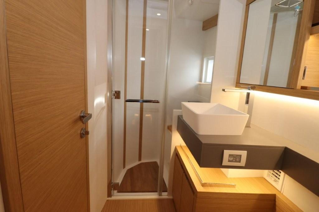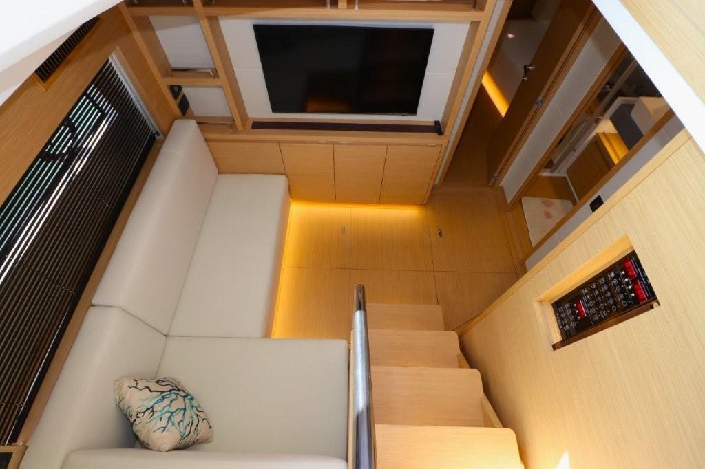 Acqua Calda, Boiler, Clima reversibile, Collegamento internet satellitare (Antenna SAT TV KVH TV5,completa di decoder), Controllo Domotica, Dissalatore (OSMOSEA 100 L/H), Indicatore del Serbatoio dell’Acqua, Inverter (2500 W), Pavimento interno in legno (TEAK TRATTATO), Prese interne 12v, Prese interne 220v, 2 Serbatoio Acque Nere, 2 WC marino elettrico.