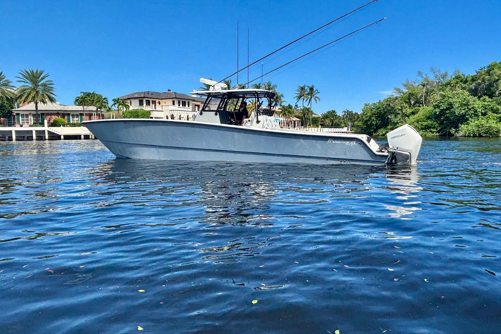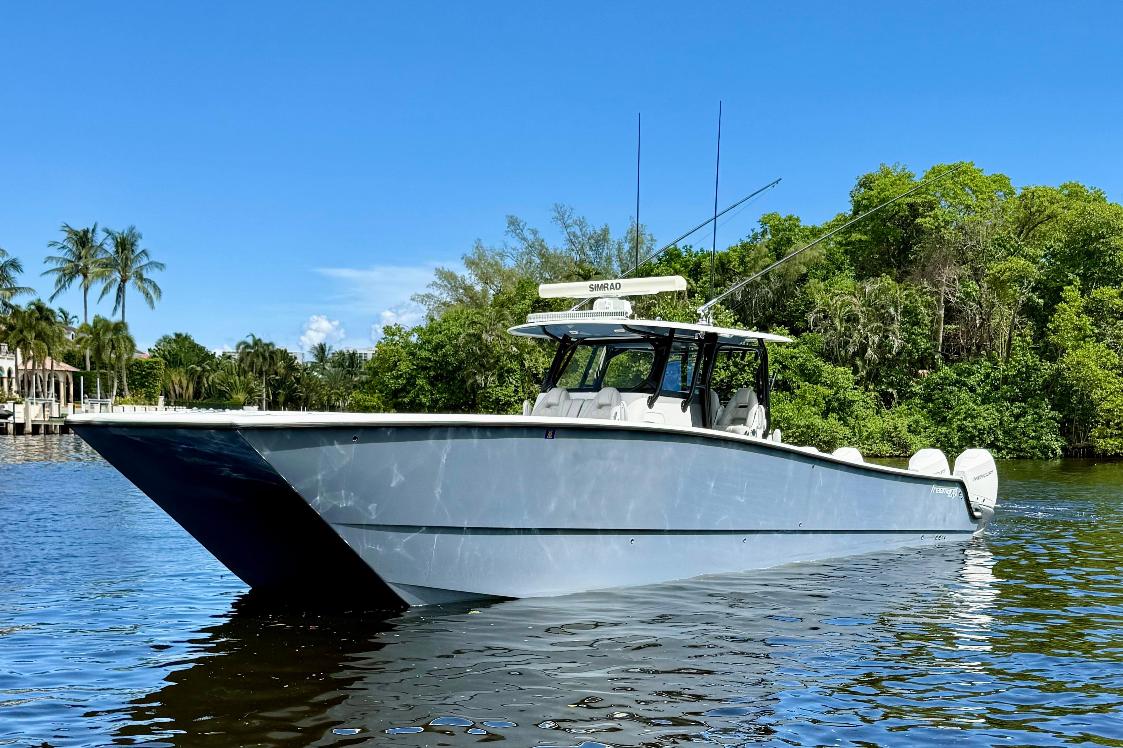 This 2019 Freeman 42LR is a turn-key offshore machine that received a full repower in 2023 with quad Mercury 300 V8s (240 hours) and Platinum Warranty coverage through December 2031. Meticulously maintained and stored on a lift with a full cover since day one, this vessel combines Freeman’s legendary ride with updated power and premium features for serious anglers and adventurers alike.