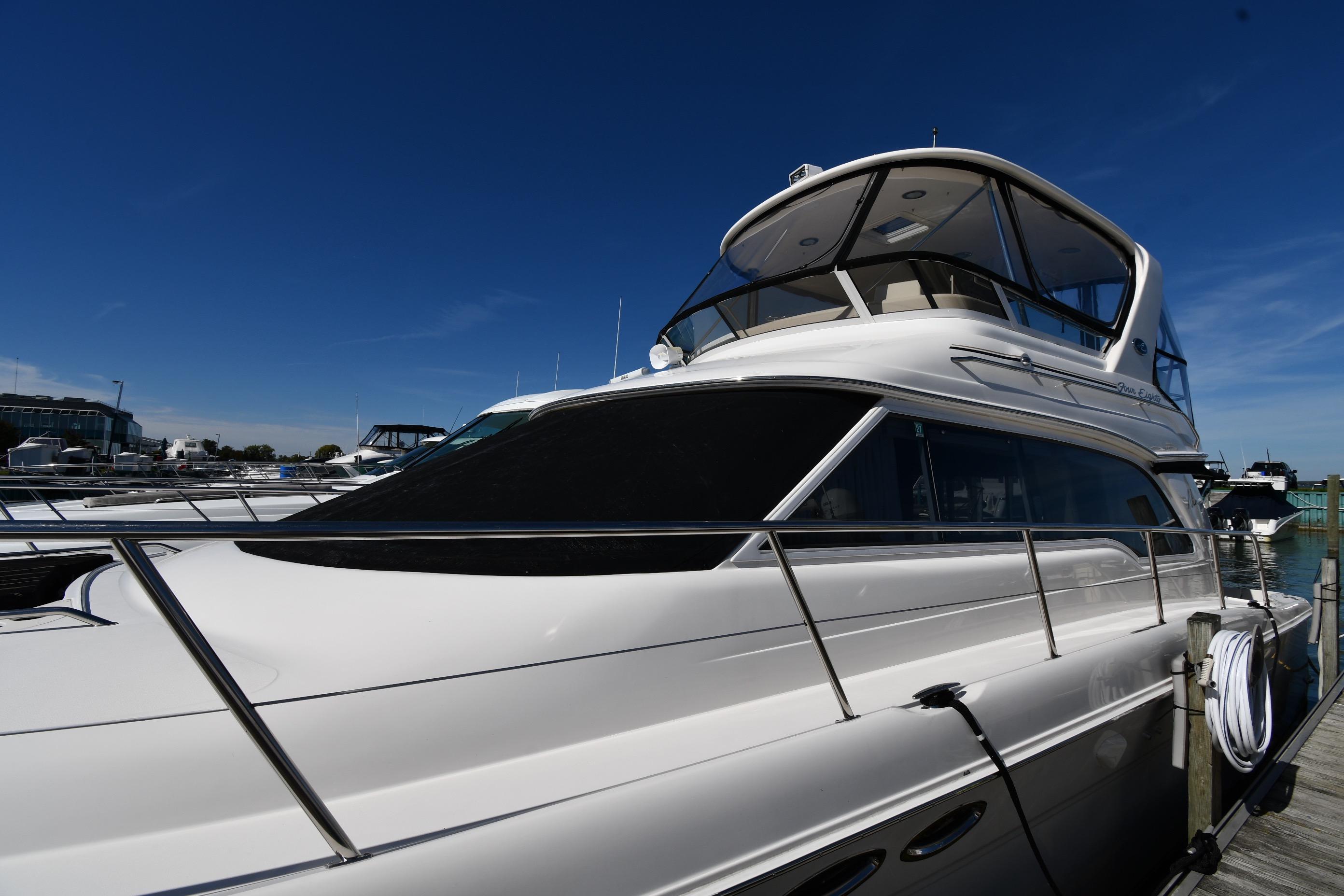 Freshwater / Great Lakes boat since new this vessel features Optional Twin Caterpillar 3196 TA 660-hp Diesel Engine's with only 1279 original hours. Notable features include but are not limited to the following: Air-Conditioning & Heat (4-Units; Including Bridge AC/Heat), (2) Head's (Vacuflush) w/Vanity/Sink/Stall-Shower's, Central Vacuum System, Washer / Dryer, Westerbeke Generator, Bow Thruster, Windlass Anchor w/Forward Pedal Controls & Freshwater Washdown, Complete Electronics Package (VHF Marine Radio, Tri-Data w/Depth/Speed/Water-Temp, Radar w/GPS/Chartplotter, Autopilot - Note NEW Garmin Electronics Tastefully Installed), Full Bridge Enclosure, Hydraulic Swim-Platform, Custom Canvas w/Aft-Deck Sun-Shade, and MUCH more!
