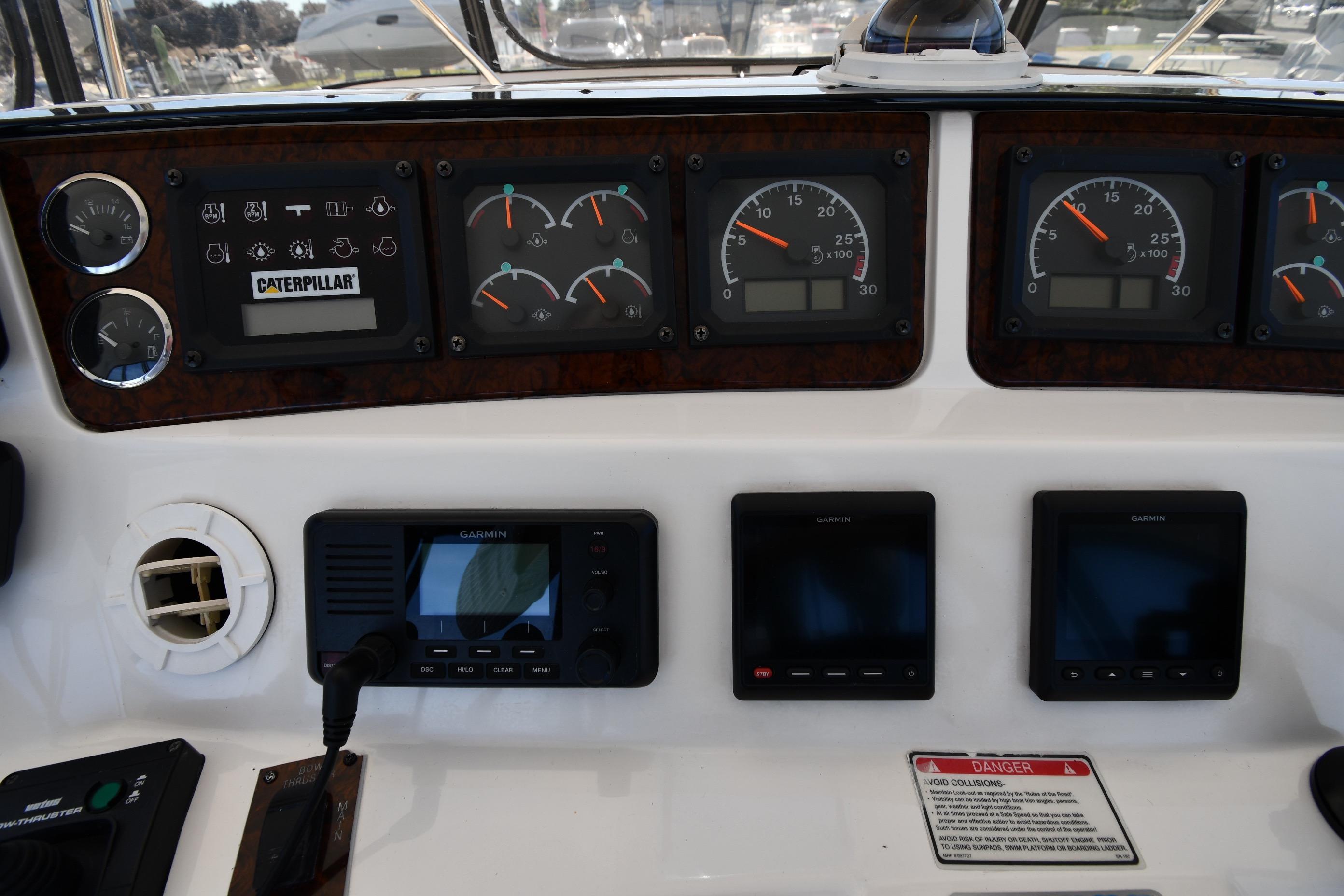Freshwater / Great Lakes boat since new this vessel features Optional Twin Caterpillar 3196 TA 660-hp Diesel Engine's with only 1279 original hours. Notable features include but are not limited to the following: Air-Conditioning & Heat (4-Units; Including Bridge AC/Heat), (2) Head's (Vacuflush) w/Vanity/Sink/Stall-Shower's, Central Vacuum System, Washer / Dryer, Westerbeke Generator, Bow Thruster, Windlass Anchor w/Forward Pedal Controls & Freshwater Washdown, Complete Electronics Package (VHF Marine Radio, Tri-Data w/Depth/Speed/Water-Temp, Radar w/GPS/Chartplotter, Autopilot - Note NEW Garmin Electronics Tastefully Installed), Full Bridge Enclosure, Hydraulic Swim-Platform, Custom Canvas w/Aft-Deck Sun-Shade, and MUCH more!