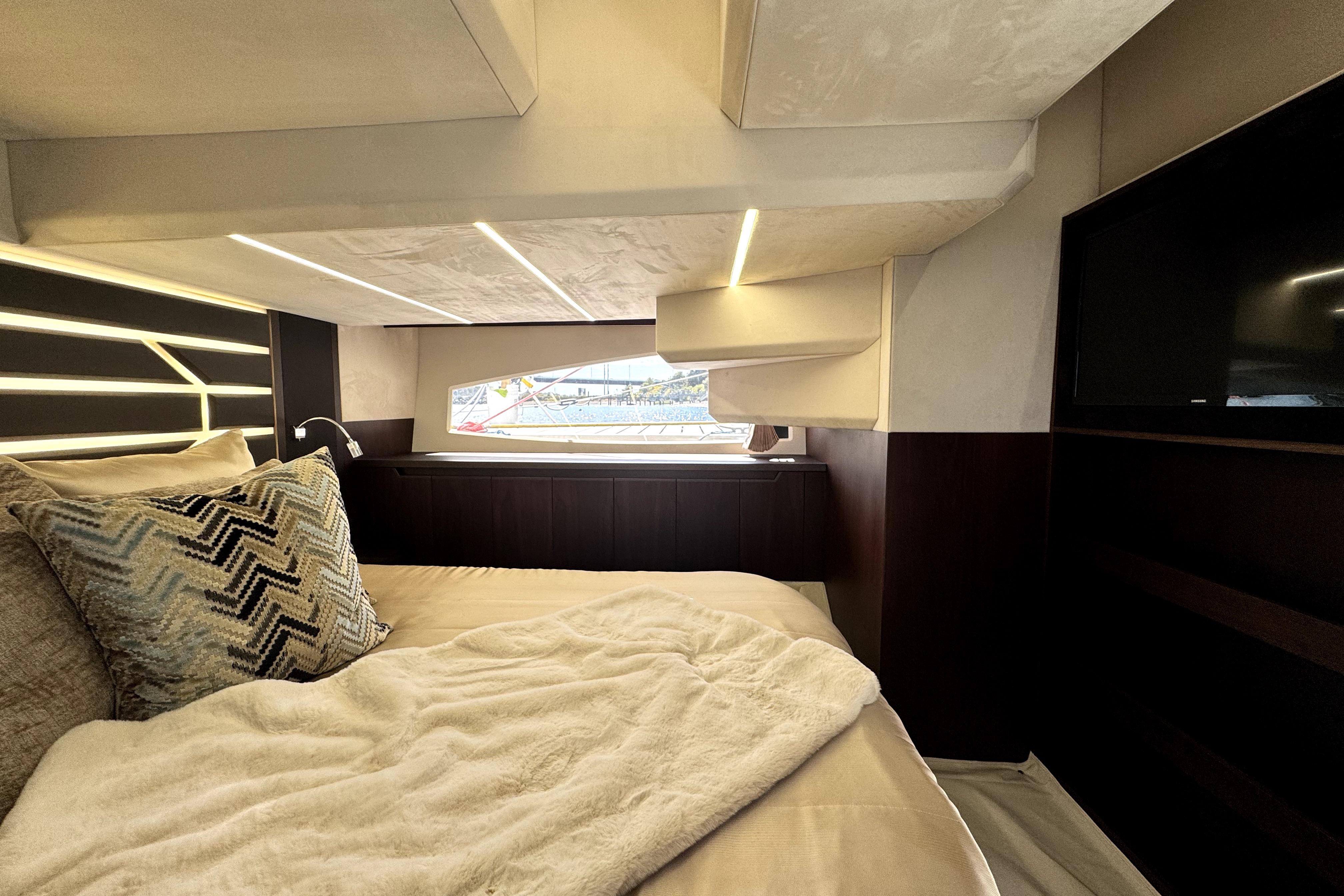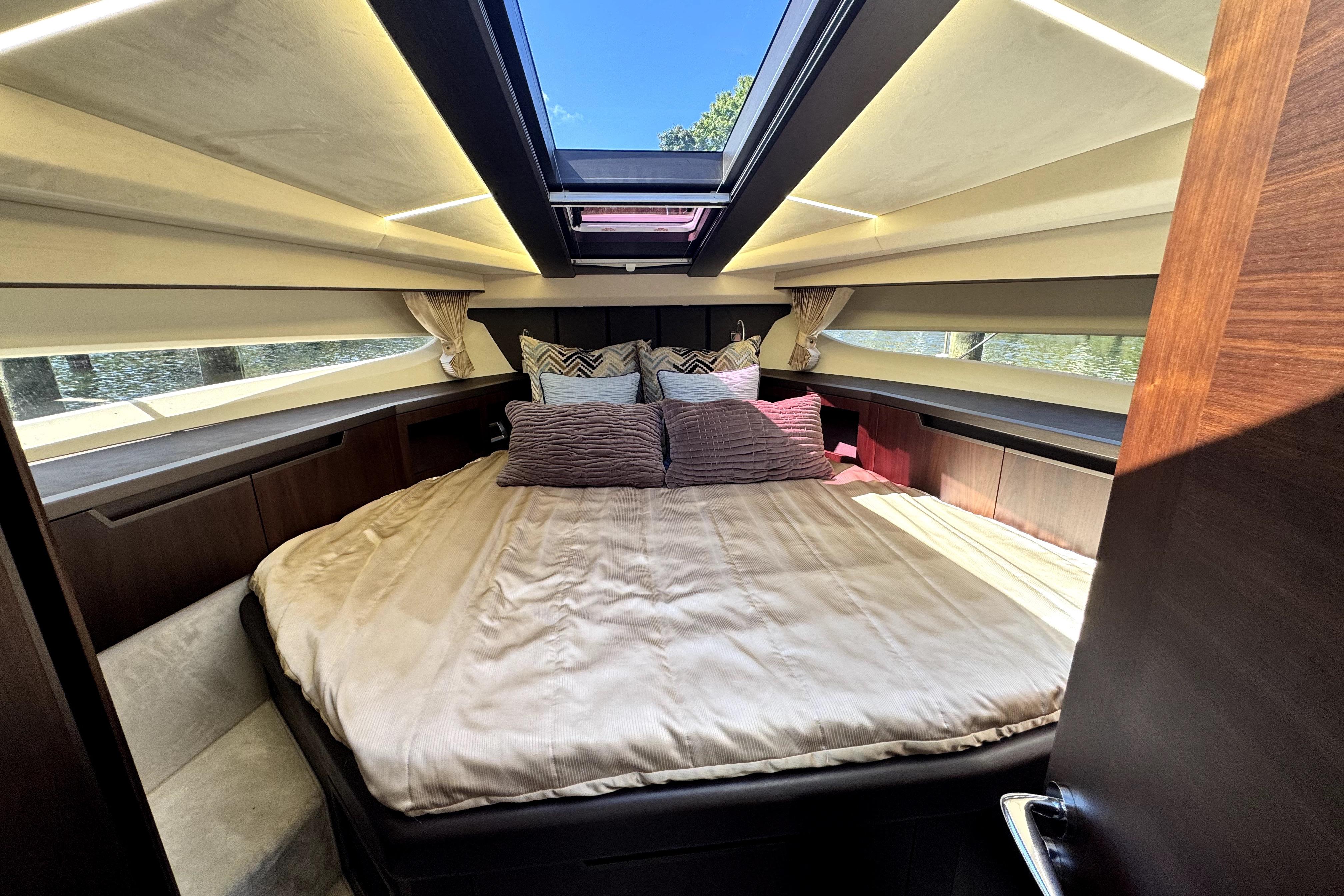 Below deck you will find two staterooms with two heads and the galley. The owner’s suite is located midship and occupies the whole width of the yacht allowing for an incredible amount of volume and storage space. With an IPS propulsion package, you can count on excellent fuel efficiency and unmatched maneuverability.