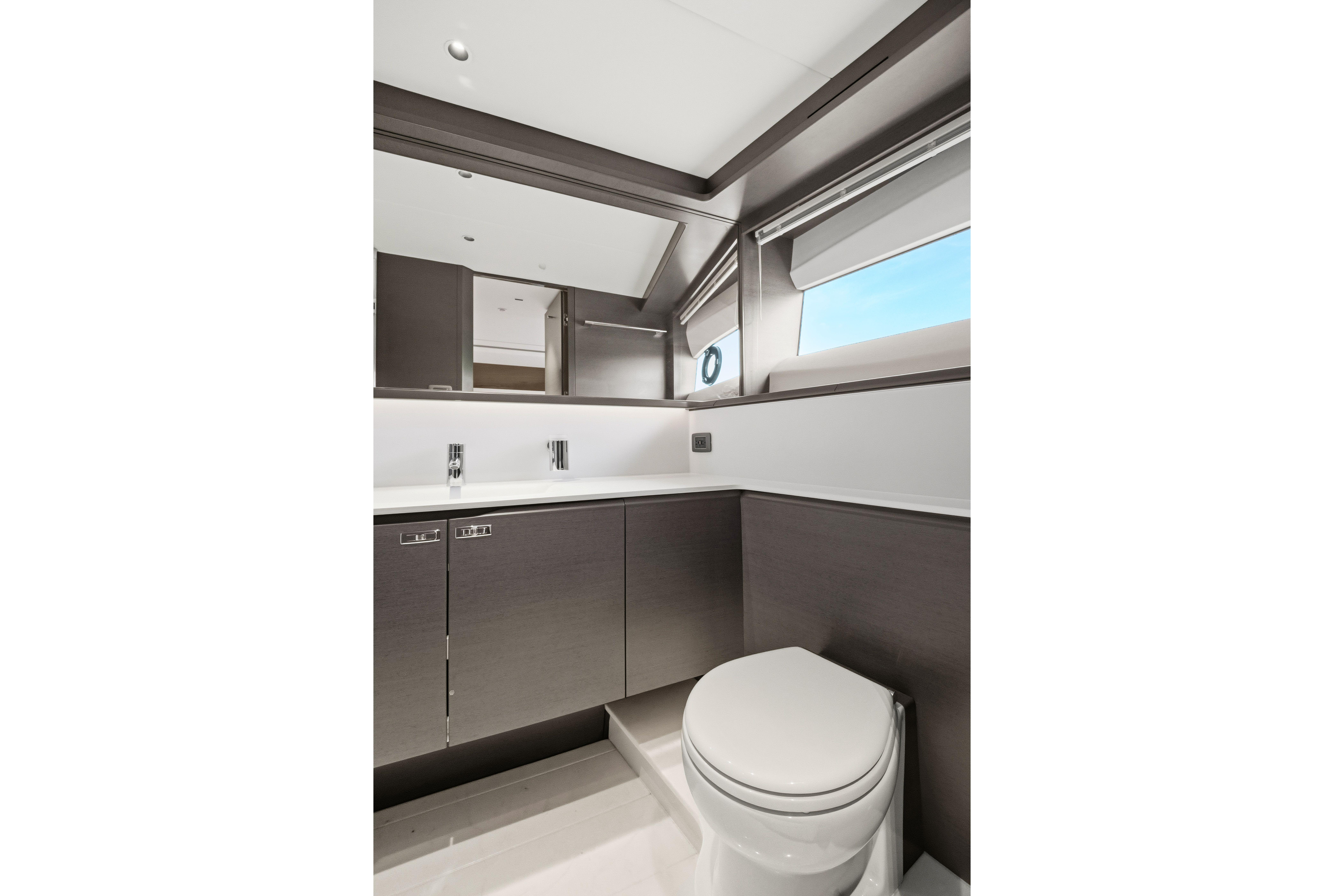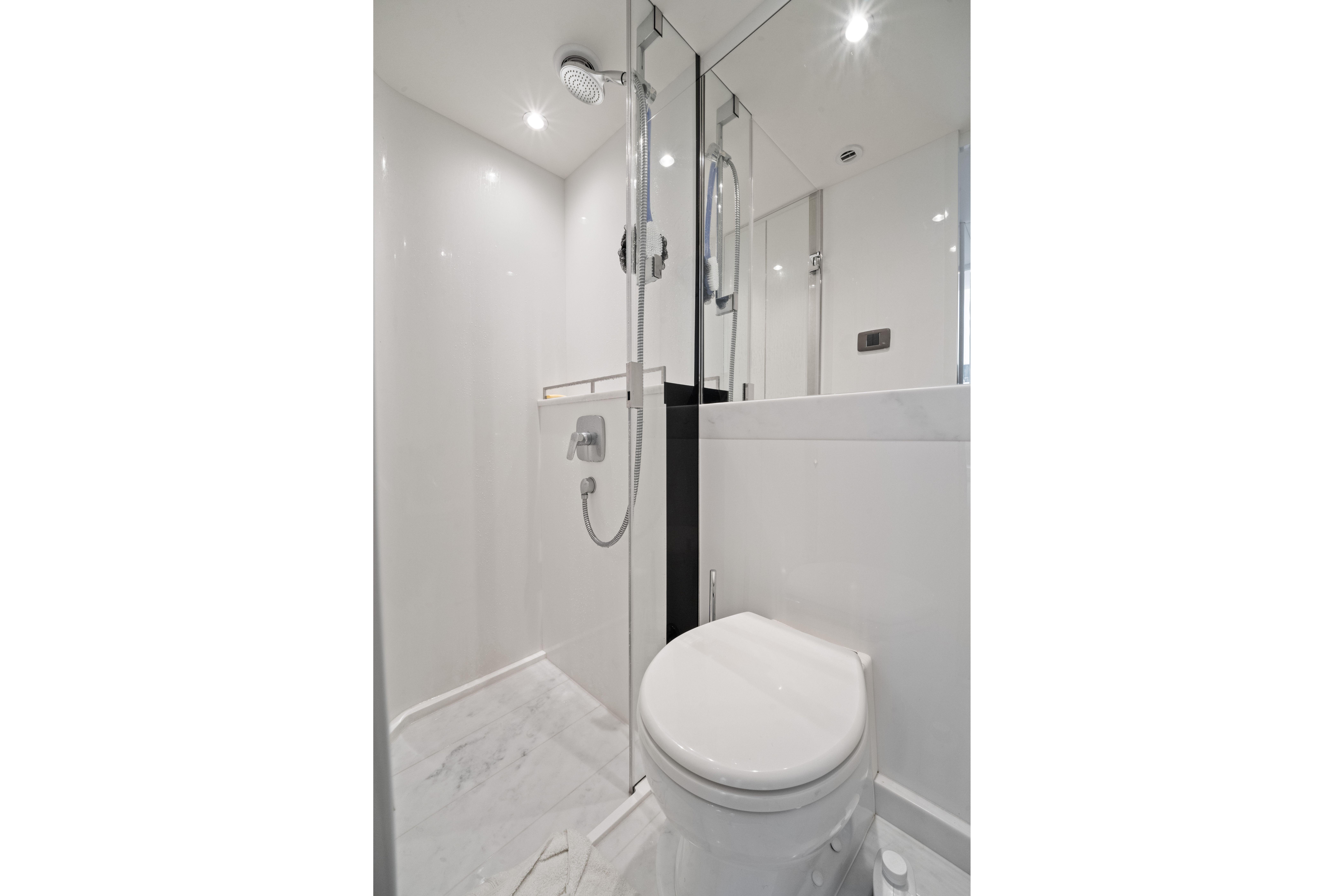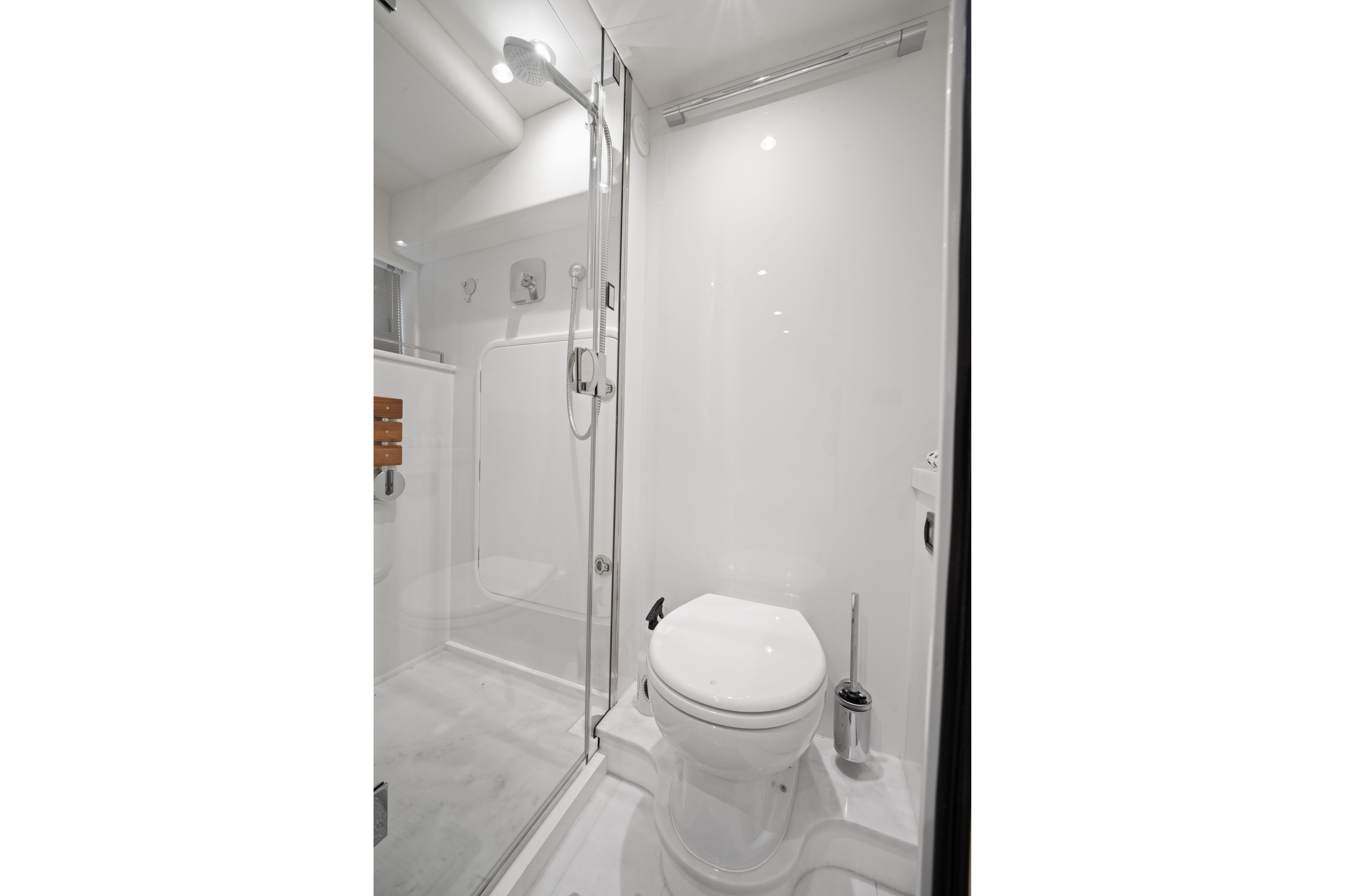 - Bathroom with separate stall shower, electric freshwater toilet and washbasin