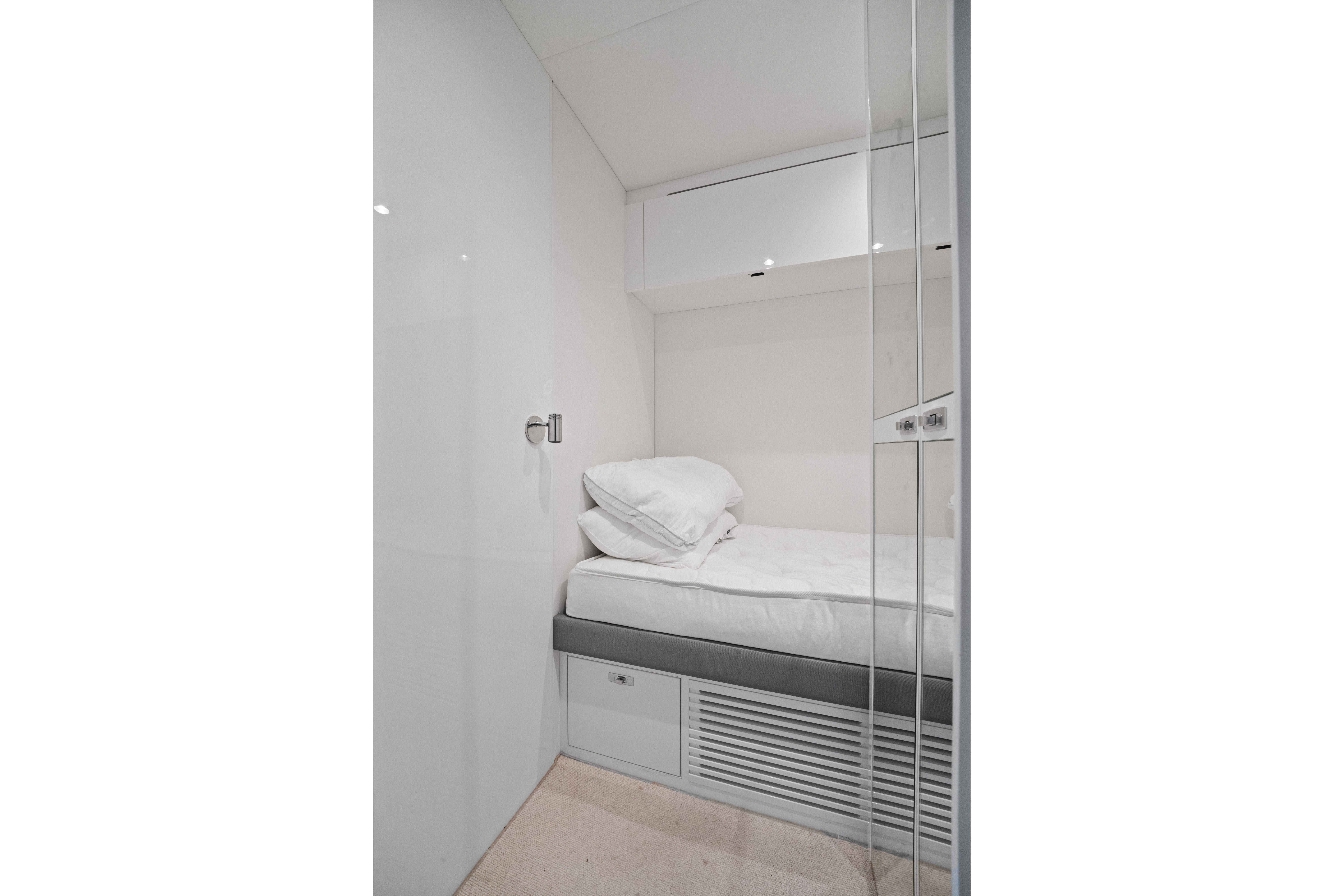 - Crew cabin 1 with single bunk, wardrobe and storage lockers