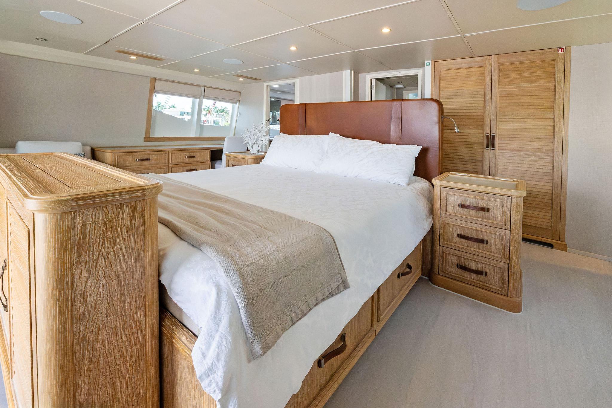 - A central King-size berth provides commanding views of both the private aft deck and a sweeping 180-degree panorama of the surrounding seascape.