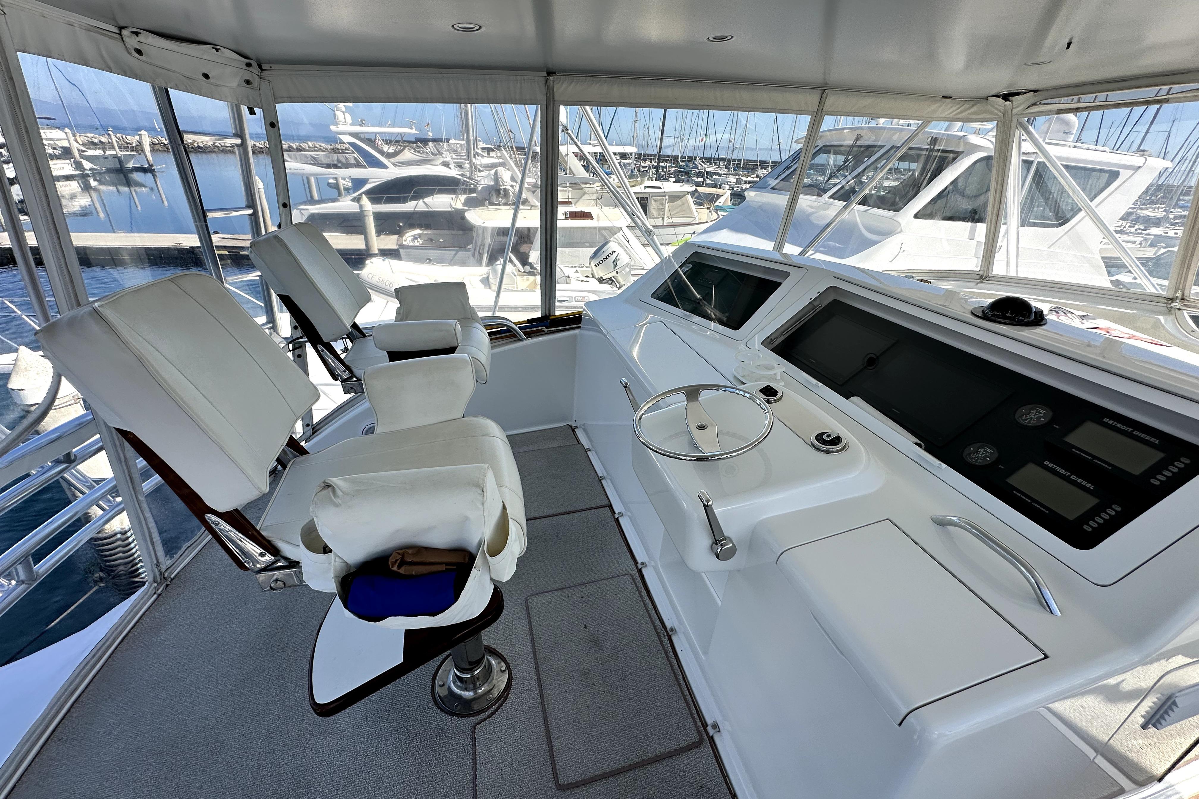 The 40’ tuna tower rises high above the vessel, providing unmatched visibility and control. From the bench seating beneath the cantilevered buggy top, the captain enjoys a commanding 360-degree view over the horizon and across all four corners of this 61’ Viking sportfishing yacht. Designed for serious offshore performance, the tower is both functional and comfortable, serving as a true observation and control platform.