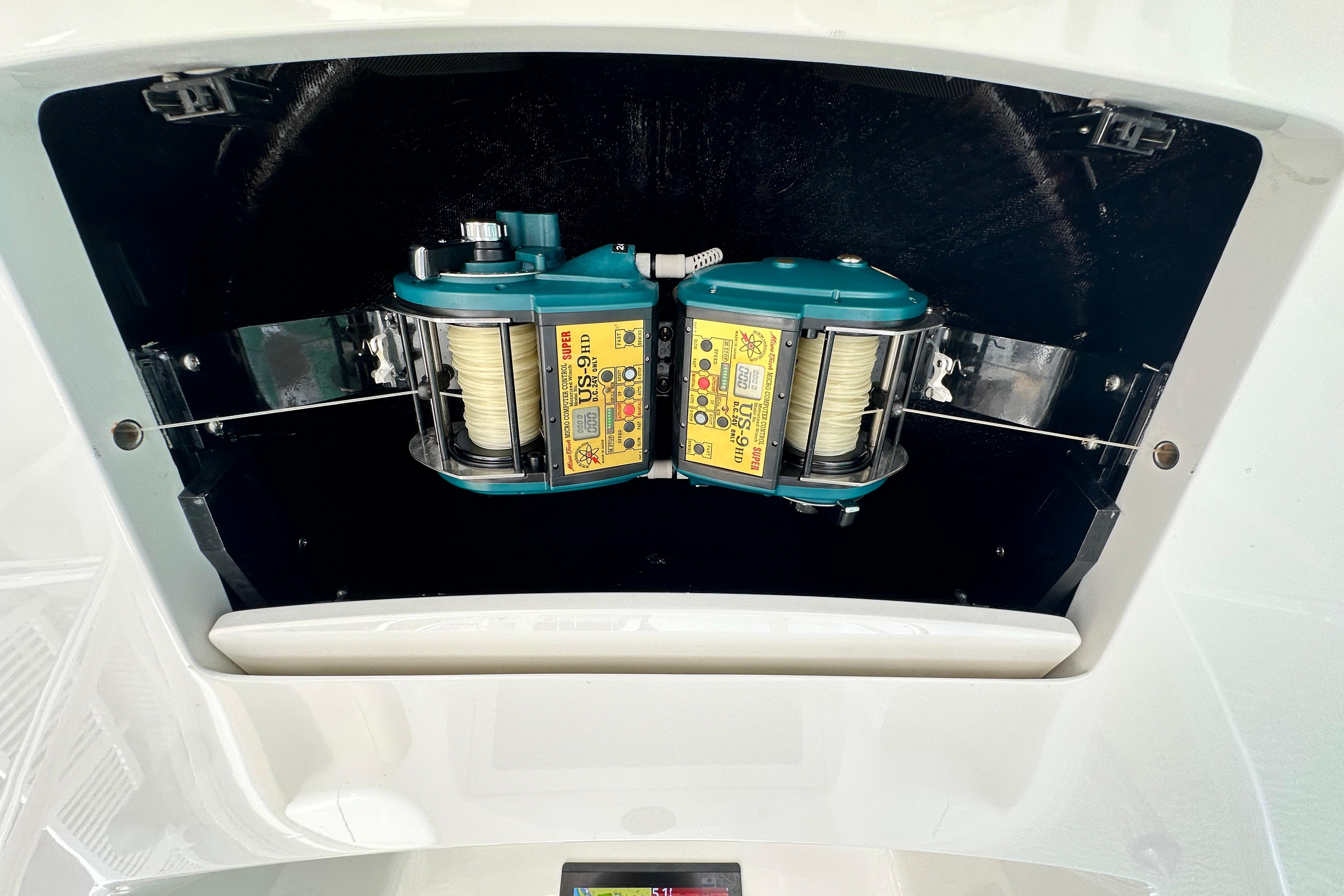 - Glendinning 50 AMP AC Electric Shower Power Cable Reel Systems Located Under the Gunnels