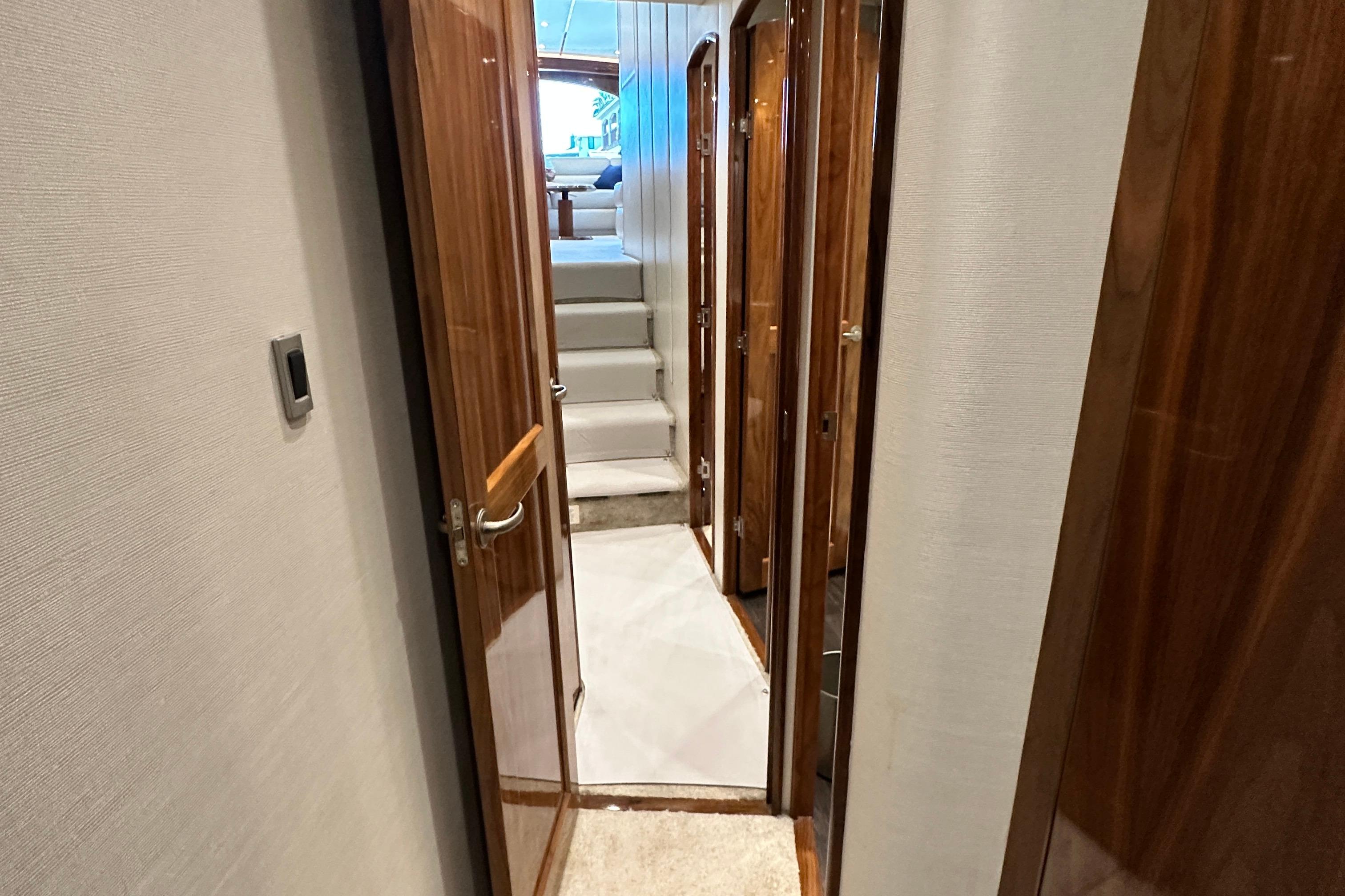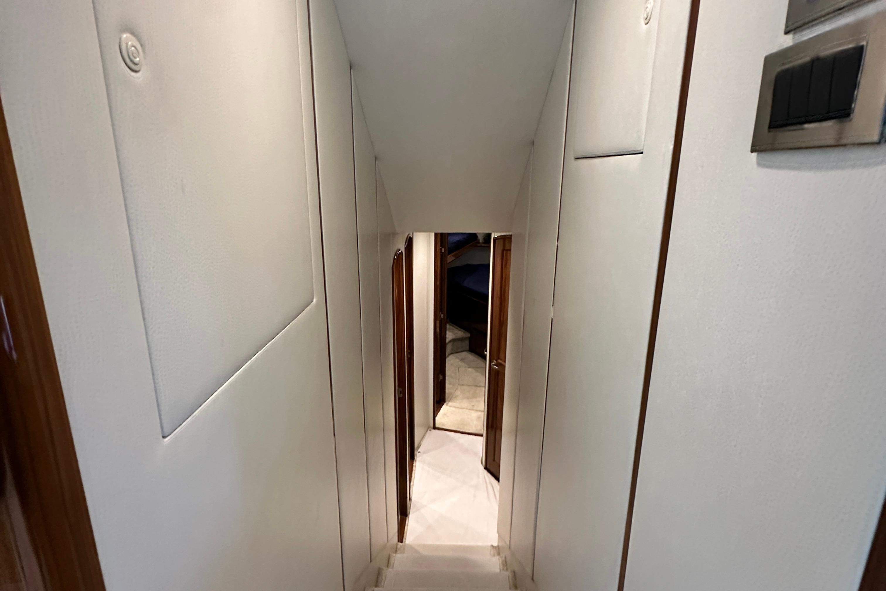 - Custom Wall Panels with Vertical Teak Strips in Companionway