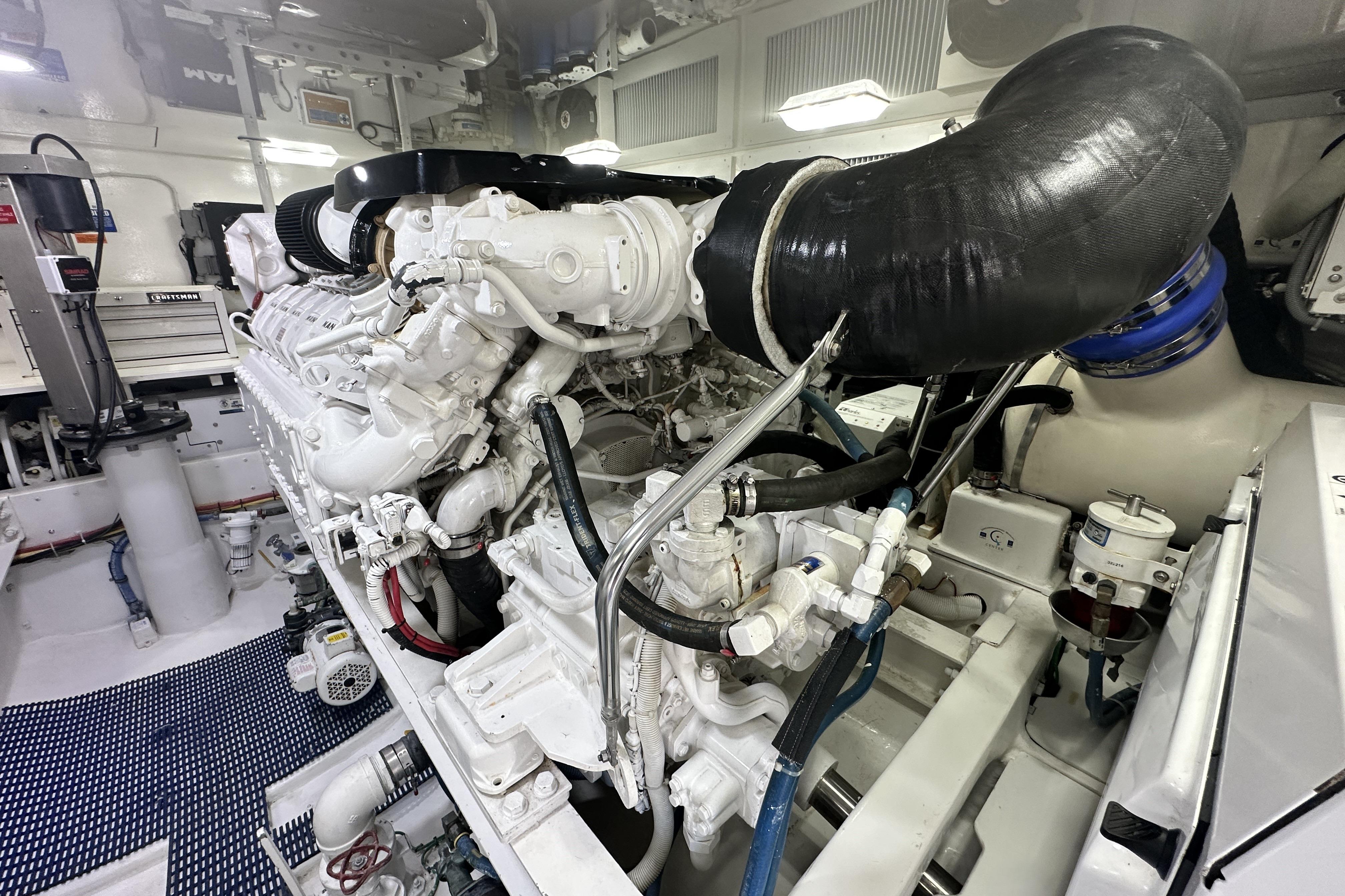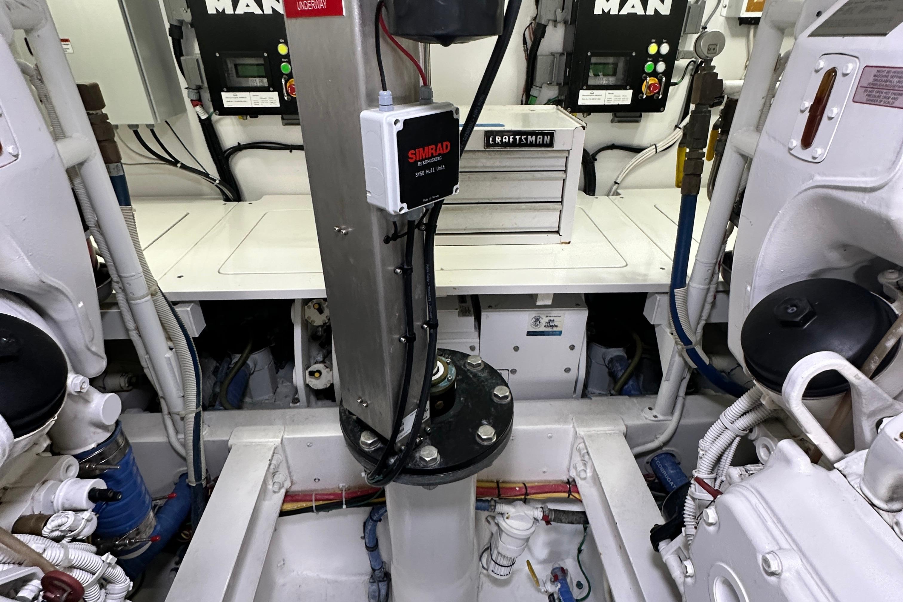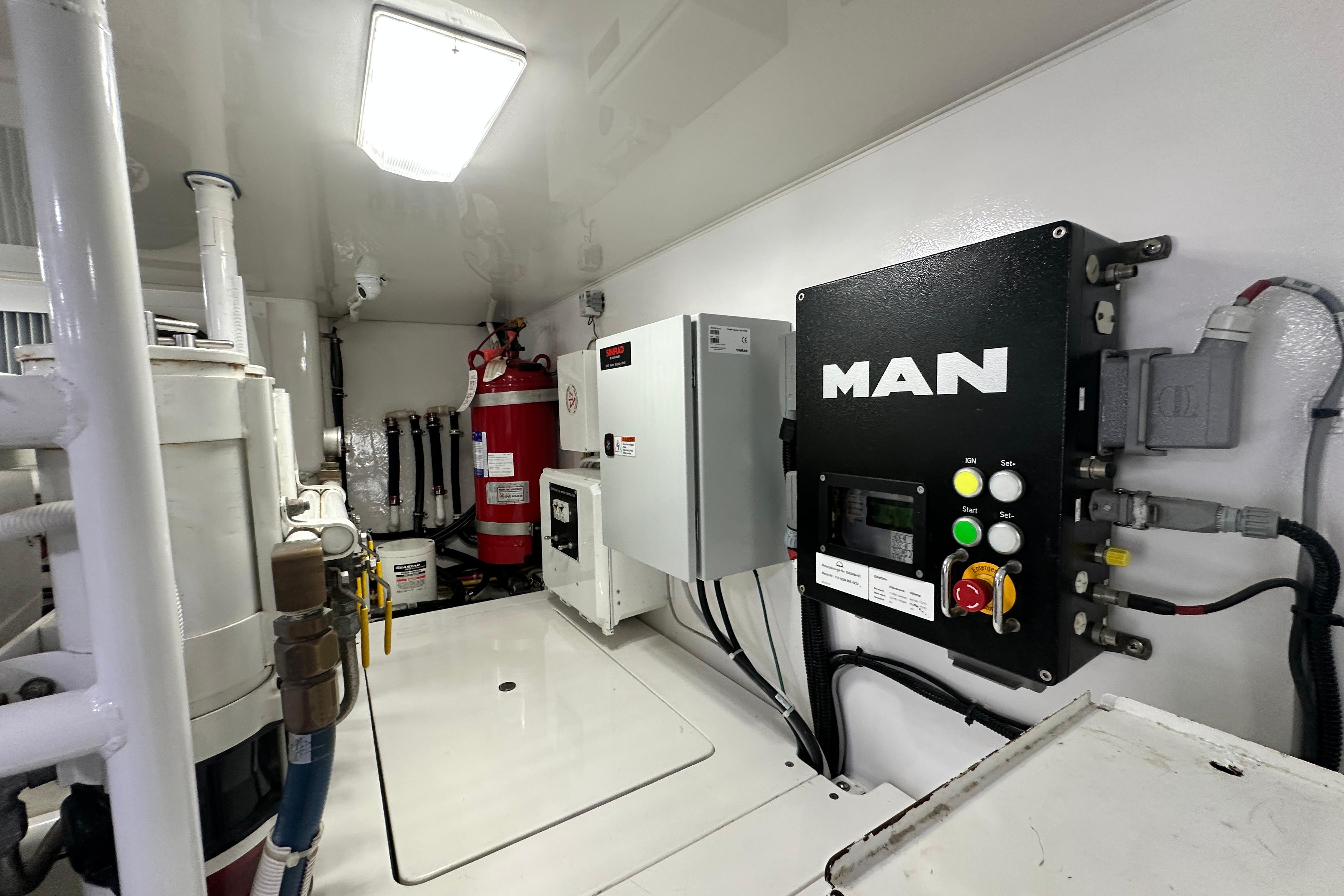 - SeaFire FM 2000 Fire suppression system, automatically or manually operated and tied into main engine and generator ignition systems with override