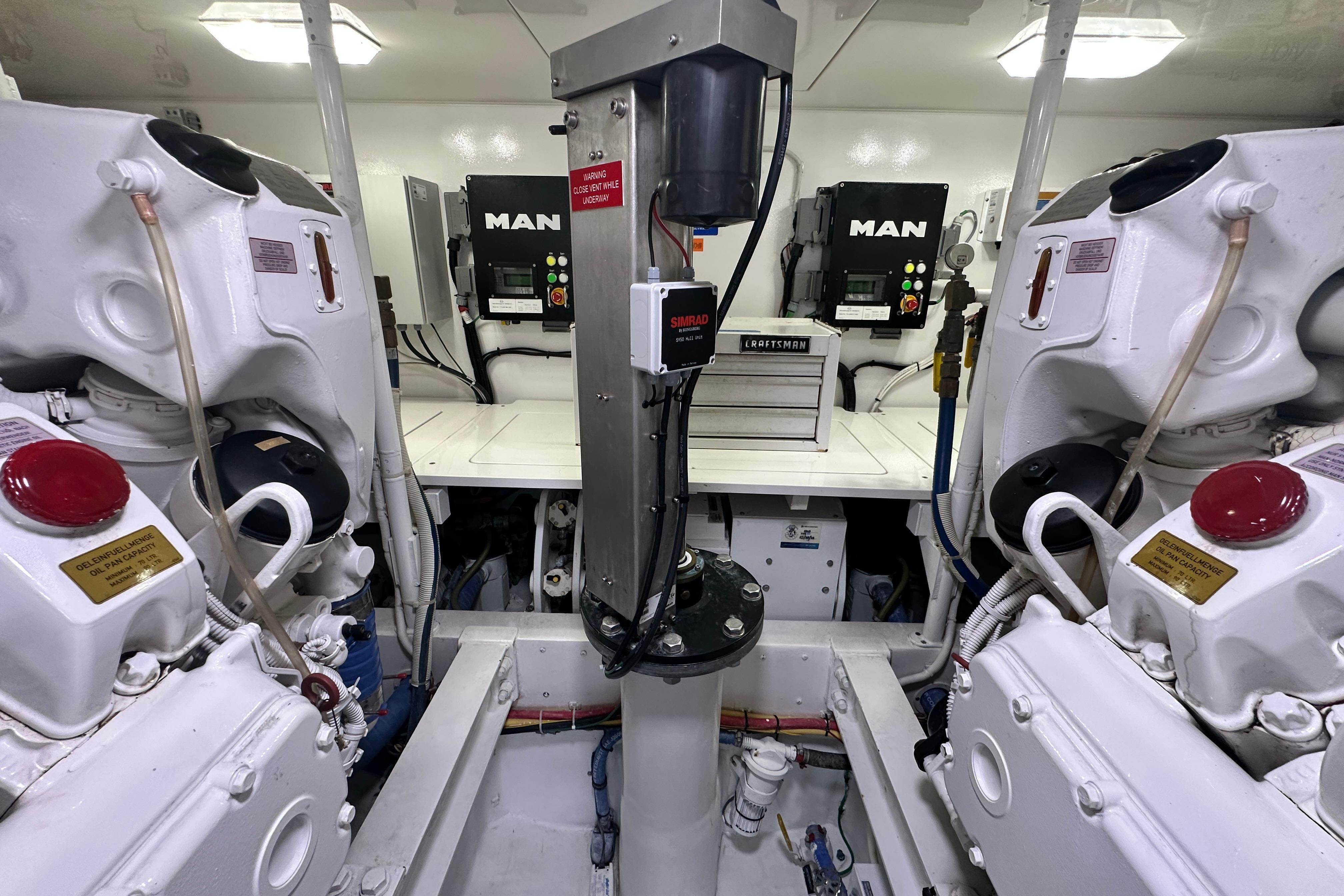 - Engine room lights, AC and DC with switch at engine room entrance