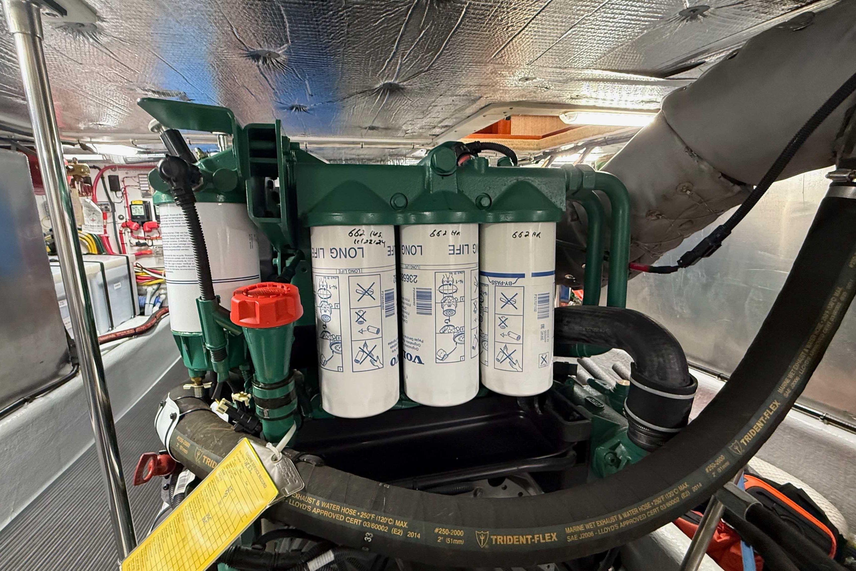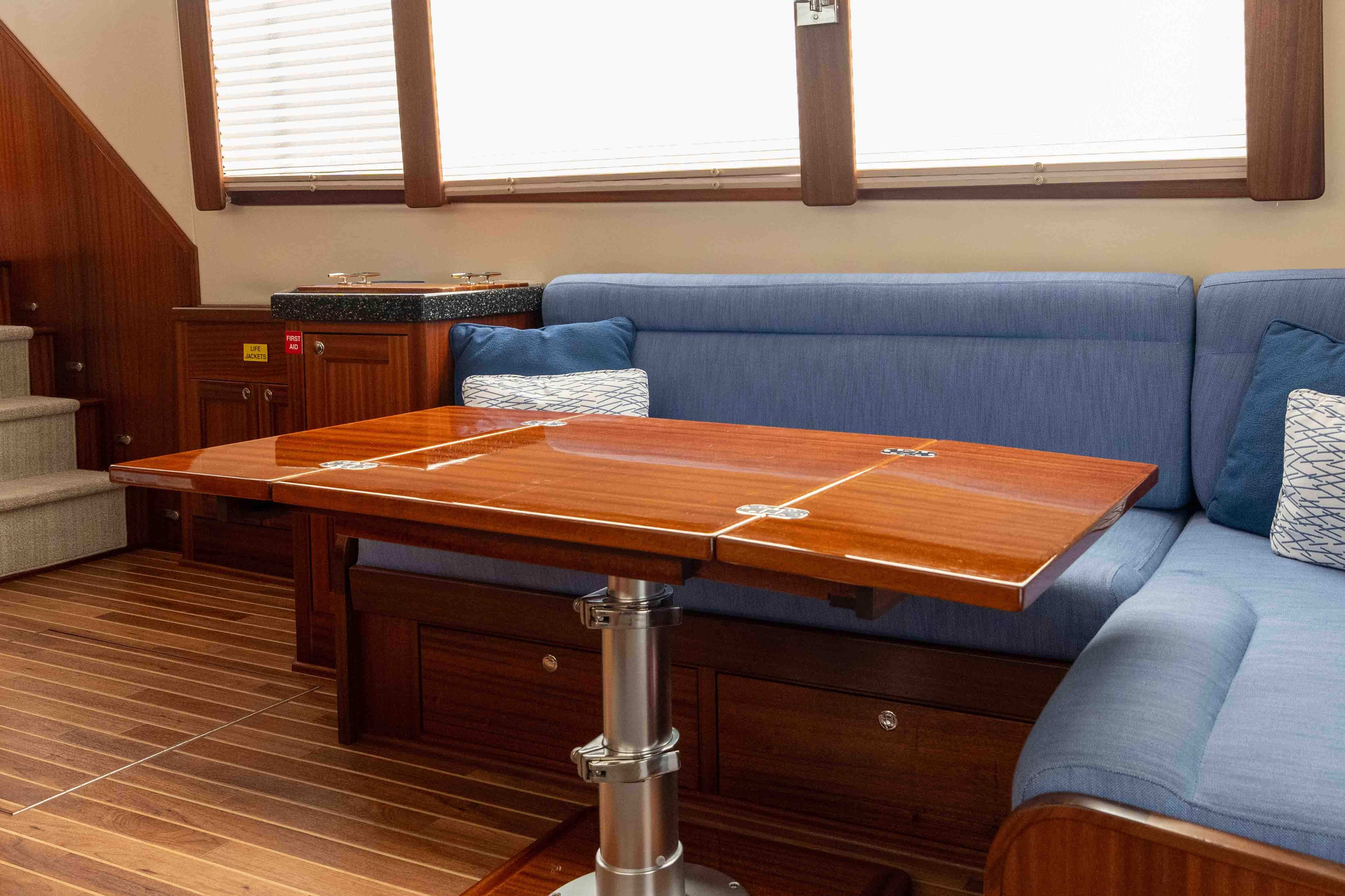 - Access, secondary, to engine room via salon hatch with ladder