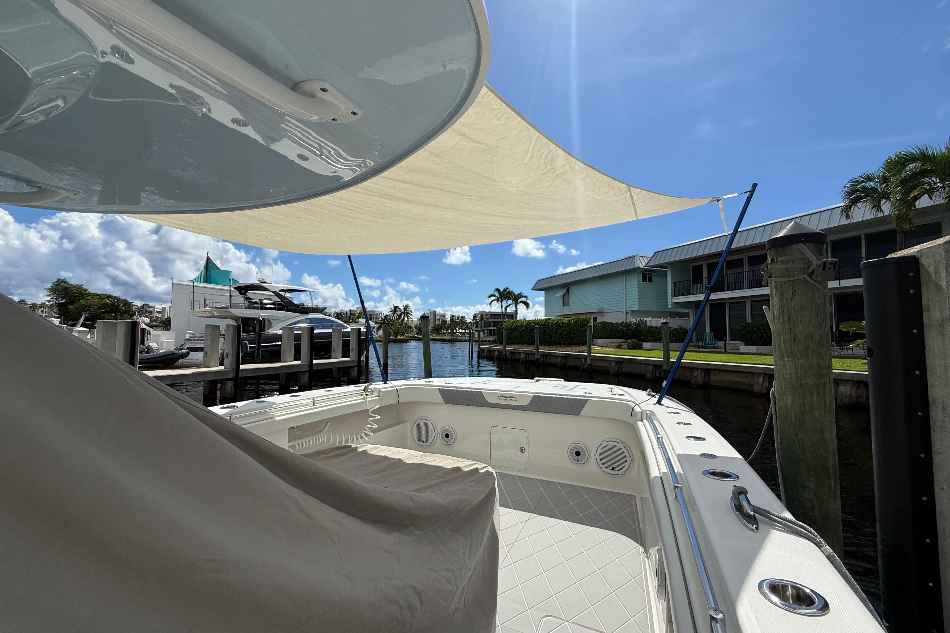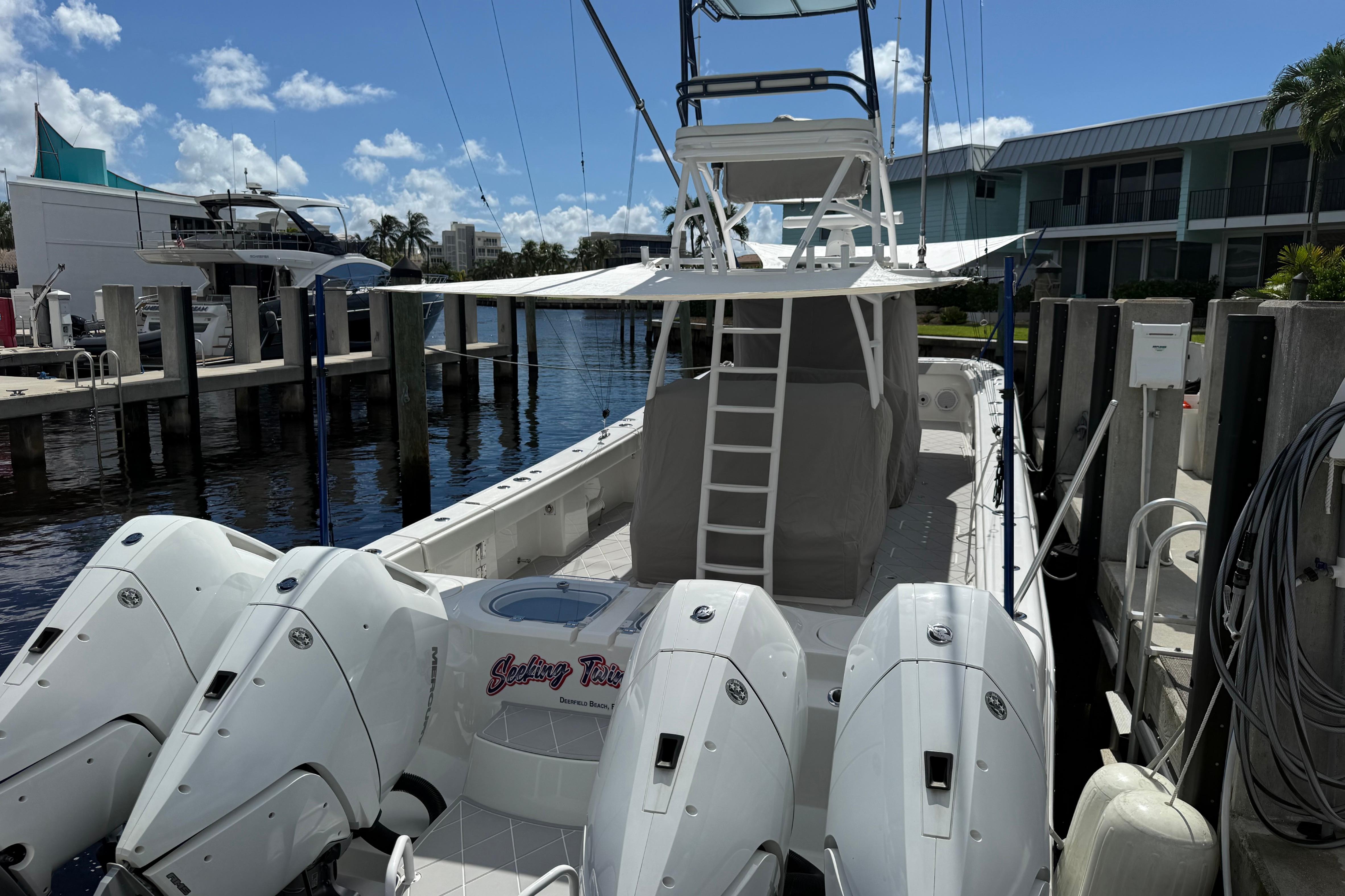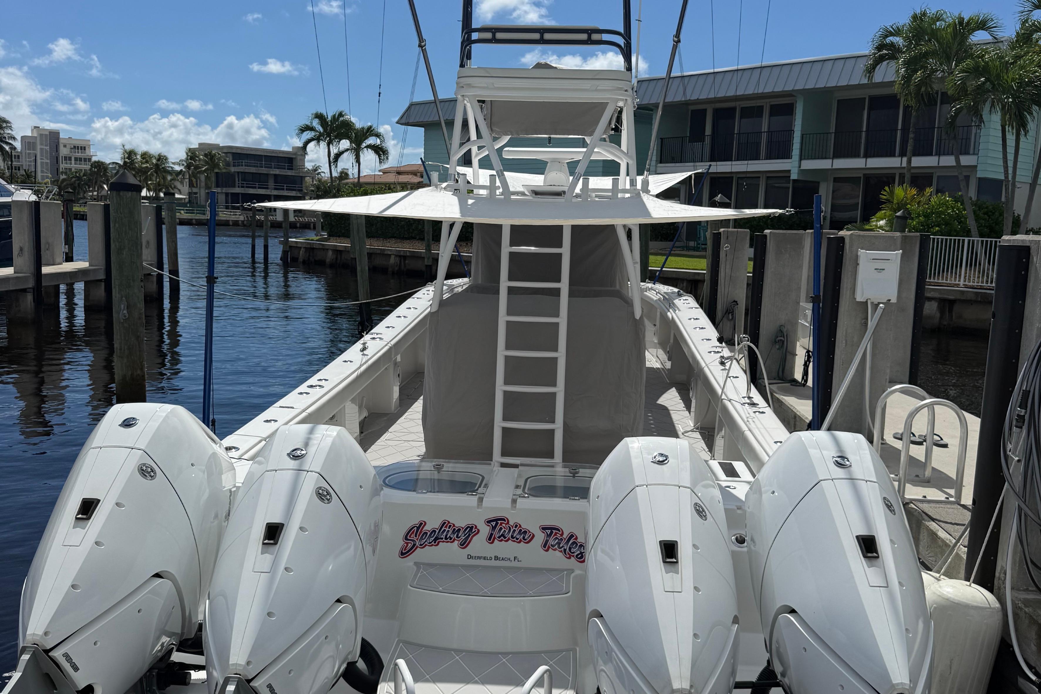 Introducing this stunning 2022 Invincible 46 Catamaran, that combines elegance with high performance to give her new owners an amazing experience. This boat is meticulously maintained by its current owner with weekly wash plan and quarterly full detail and wax. With an overall length of 46 feet, this vessel boasts a sleek Ice Blue hull designed for stability and speed. Equipped with four 2024 Mercury V10 outboard with platinum warranty till 2032, each delivering 400 horsepower, it effortlessly reaches cruising speeds of 45 mph and can achieve a maximum speed of 65 mph. The catamaran features advanced joystick control for seamless maneuverability, double row seating for amazing overall boating experience. Designed for adventure, it is perfect for those seeking thrilling excursions on the water. The spacious layout allows for comfortable movement, making it ideal for entertaining guests or enjoying a day out on the waves. With its modern design and robust engineering, the Invincible 46 Catamaran is a true gem.