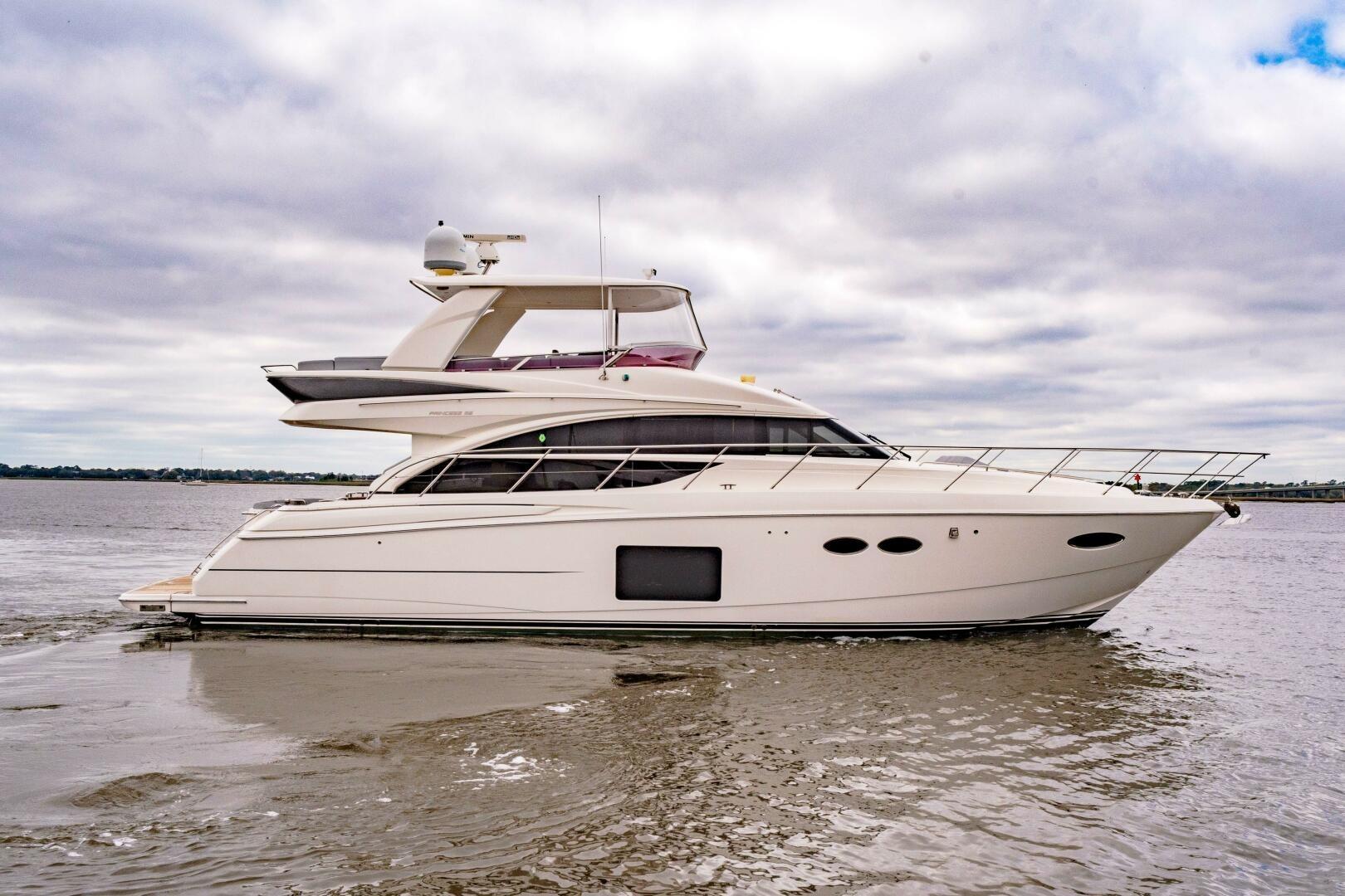 The 56 Princess Flybridge is a very well laid out yacht with a large salon with a galley up, dinette, and a lower helm. There is great visibility and large sliding doors aft.