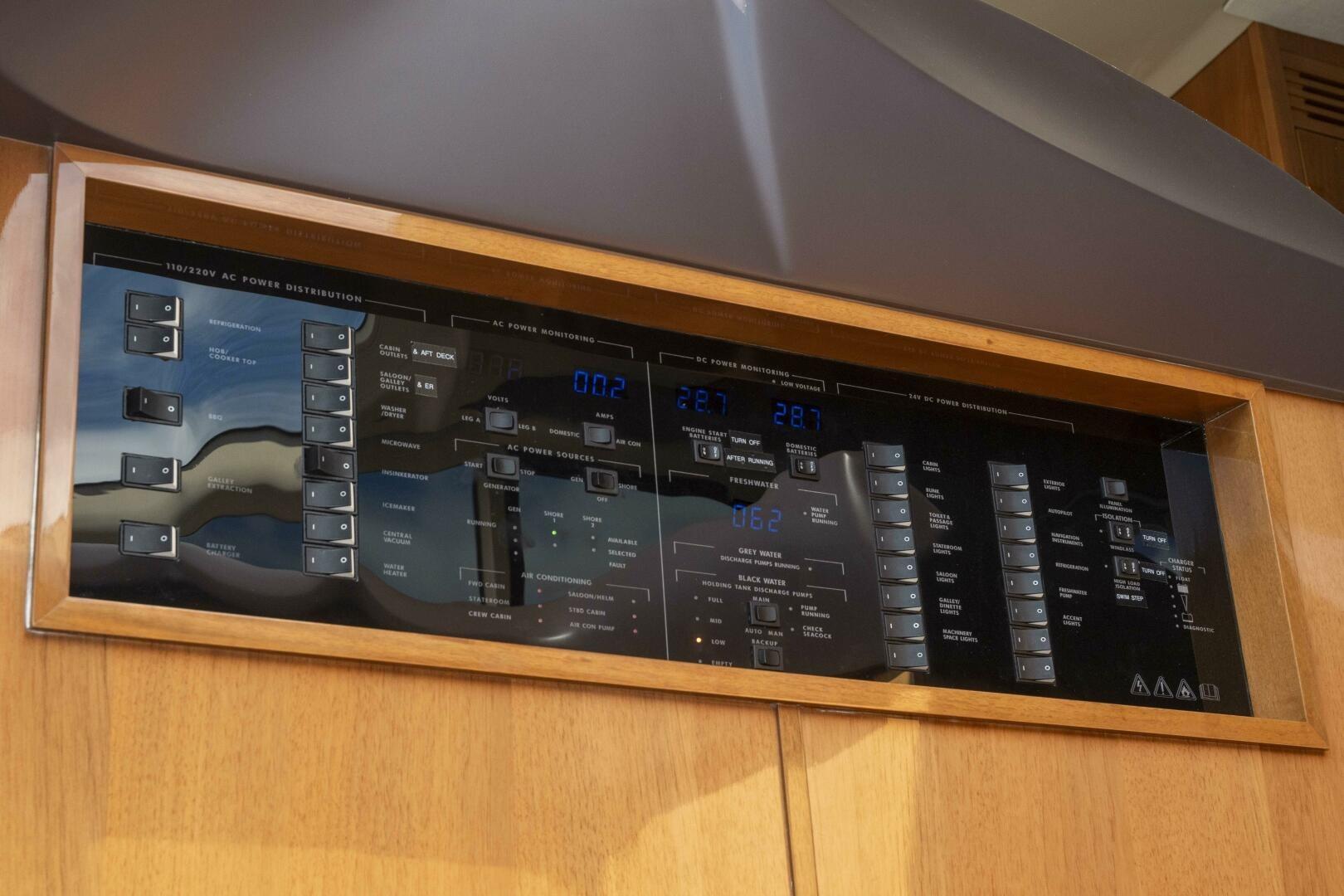- Controls for bow thruster, stern thruster, windscreen wipers, bilge pump and trim tabs (with indicator)