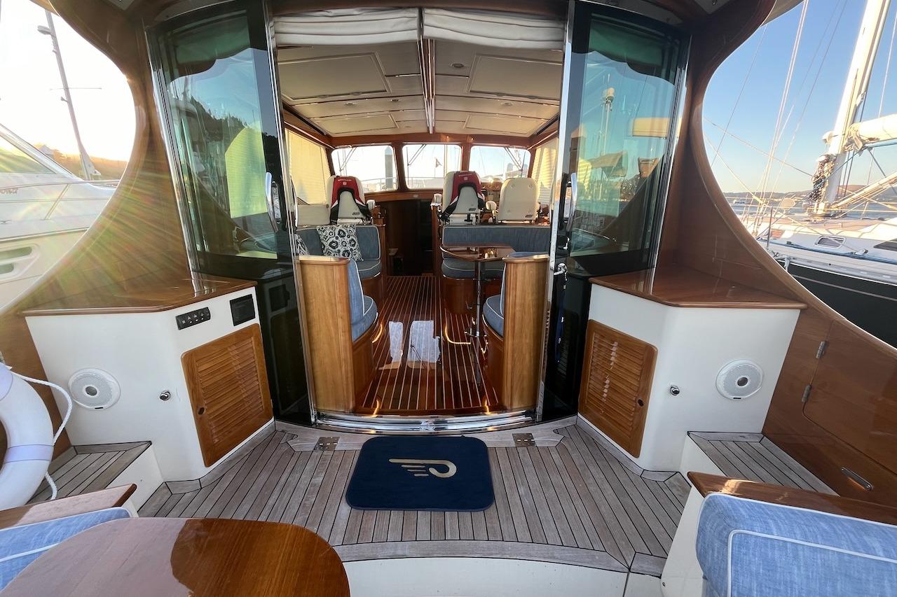 Entirely refitted in 2021 with additional upgrades in 2024, CASSIDY's pedigree and updates shine through in every area to leave a lasting impression with the most discerning buyers. Among her extensive list of updates, CASSIDY's notable features include a new retractable Sureshade, versatile dinette capable of converting to a fully-enclosed second cabin, new gyro stabilization, Raymarine electronics package with radar and autopilot, new FLIR camera in 2024, C-zone interface, Starlink, new hull paint, and much more.