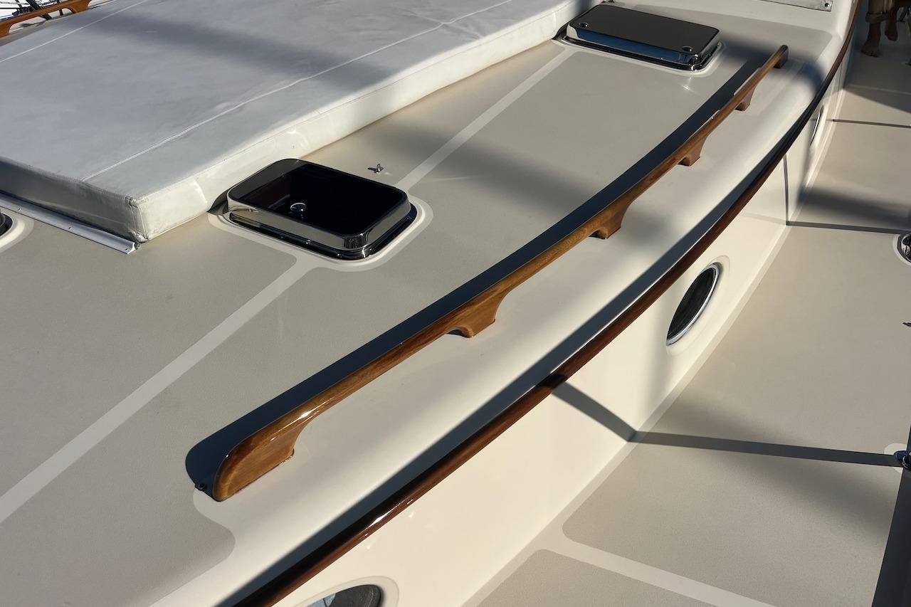 - Varnished teak toe rail, cockpit coamings, teak handrails and stainless steel bow rail give the boat a great balance of looks and functionality.