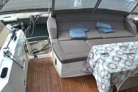 Intérieur chêne grisé, Finition préférence, Hard-top, chauffage, propulseur d'étrave, plateforme hydraulique, ensemble complet plateforme + fly + passavant en teck, taud de fermeture de cockpit, canopi, bain de soleil avant, banquette de cockpit relax, rideaux extérieurs été et hiver, cabine skipper, lave-linge, aspiration centralisé, lave vaisselle, TV, caméra arrière, commande joystick de cockpit, système sono Bose, moquette entree et marches, couvre lits luxe, groupe électrogène, ice-maker, table carré luxe électrique, store-banne, convertisseur pack électronique, pilote auto, vhf, sommiers a lattes.