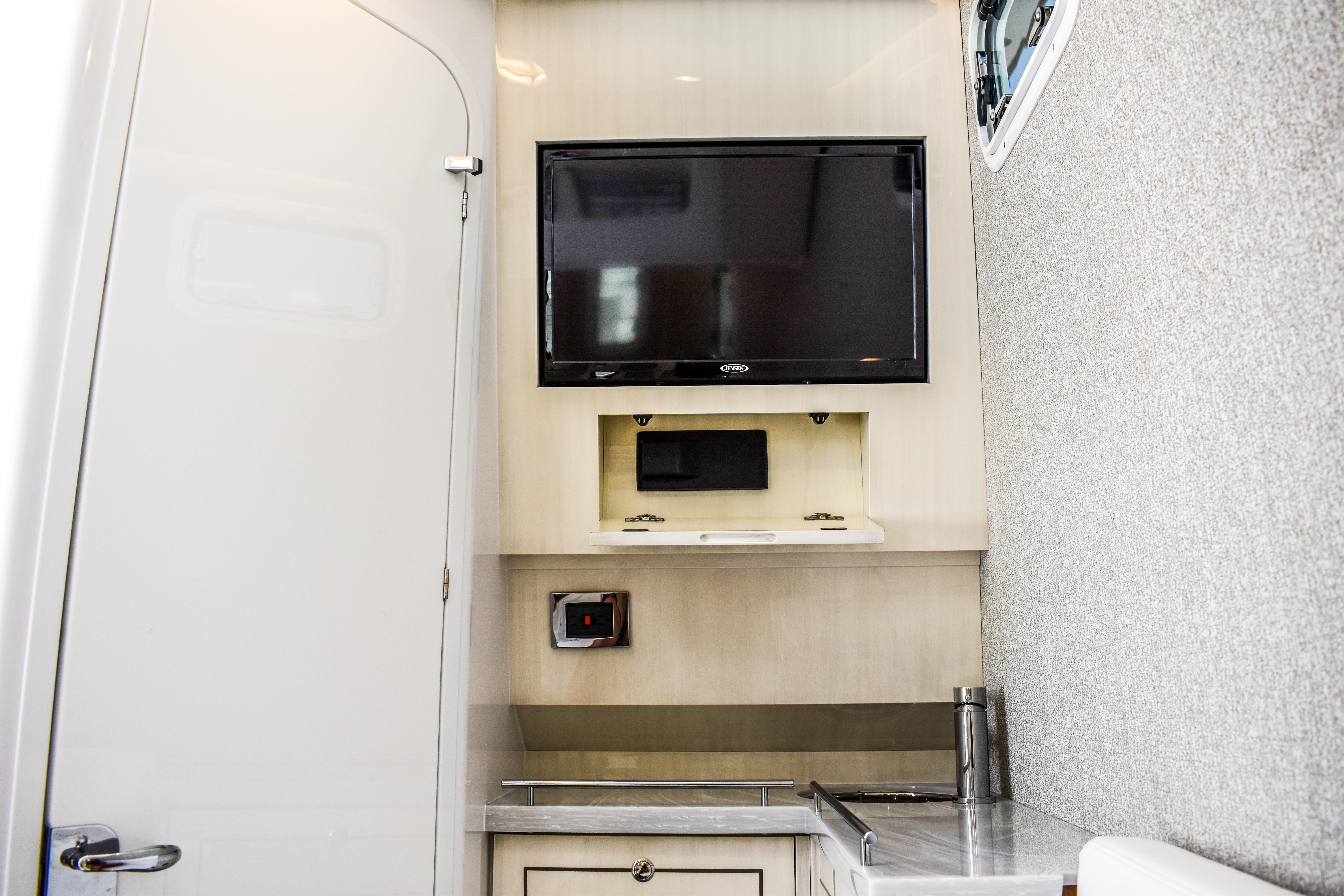The completely revamped helm station meets our industry-leading Sueños seating comfort standards, offering three captain’s chairs with integrated risers for the ultimate command center. The numerous topside features are strategically placed throughout the bow and cockpit, providing convenience and luxury.
