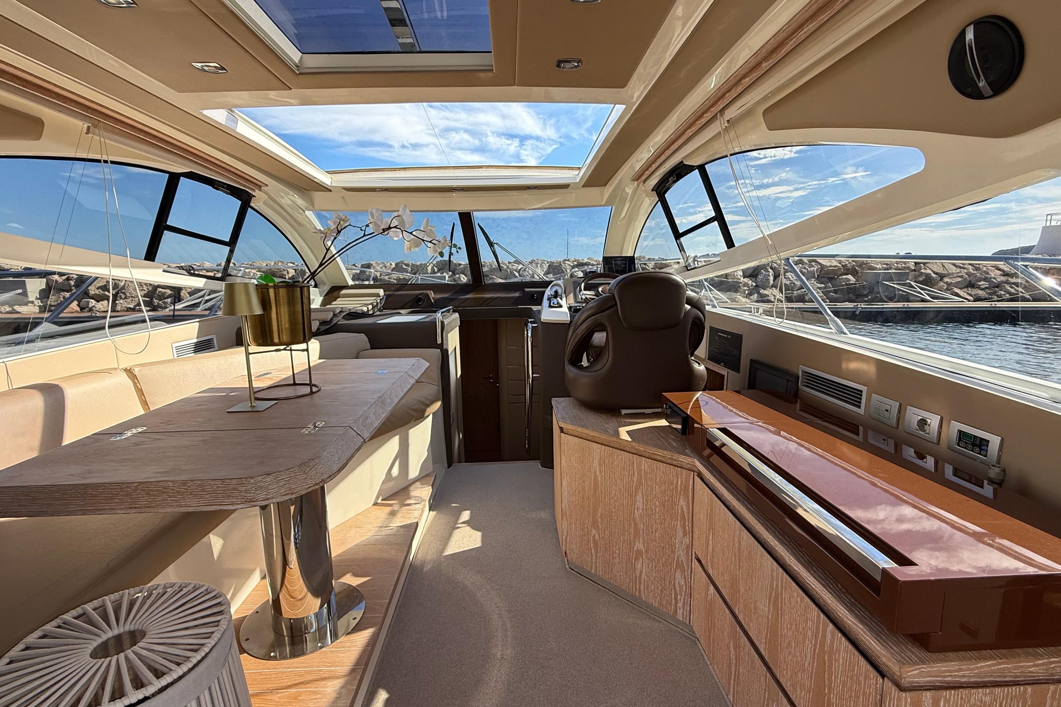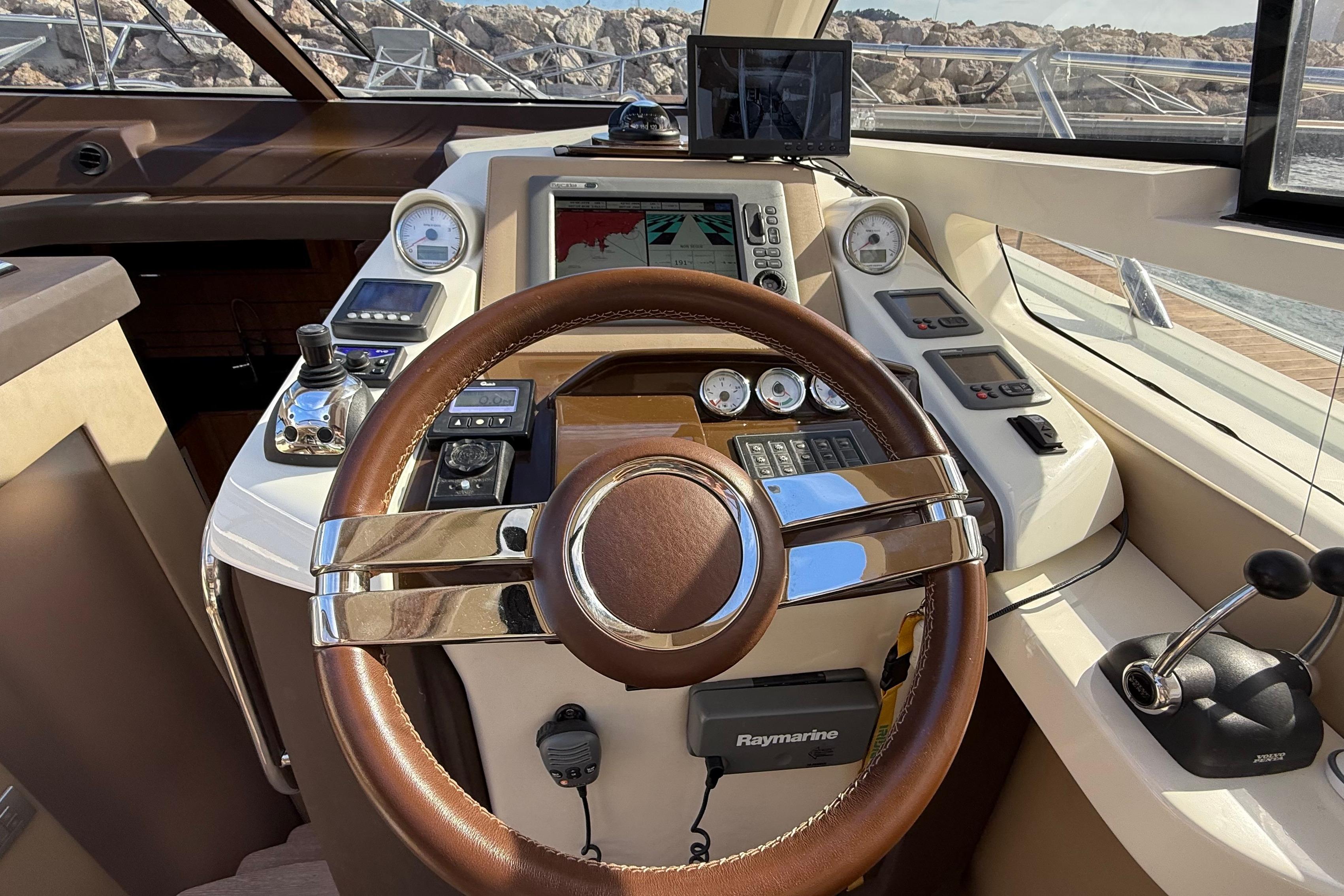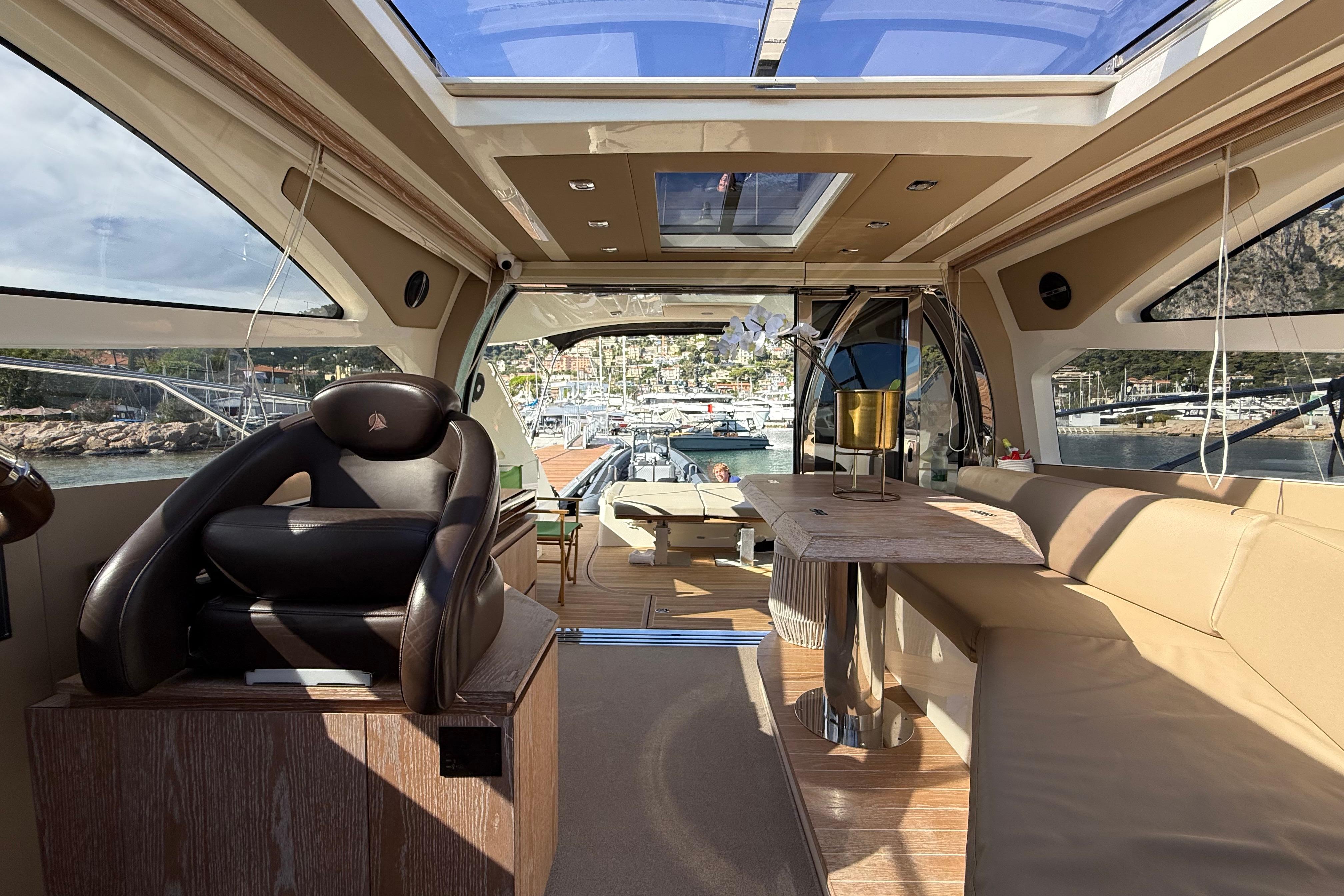 The Sogica 47 Openbridge perfectly embodies the balance between Italian style, performance and comfort. Powered by twin Volvo Penta IPS 600 (D6 – 435 hp) engines with only 830 hours, she delivers smooth handling, quiet operation and outstanding manoeuvrability — ideal for cruising the Mediterranean.