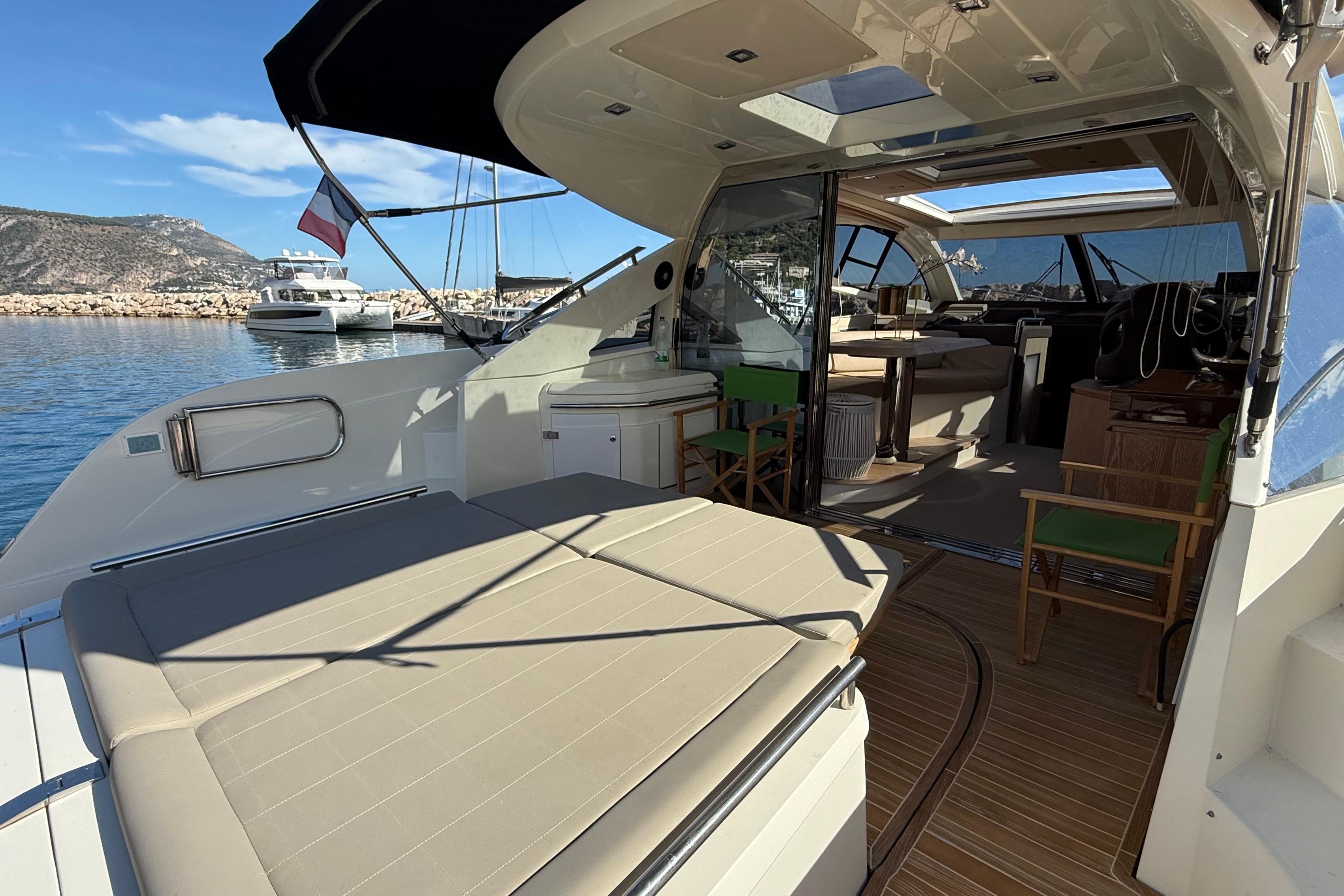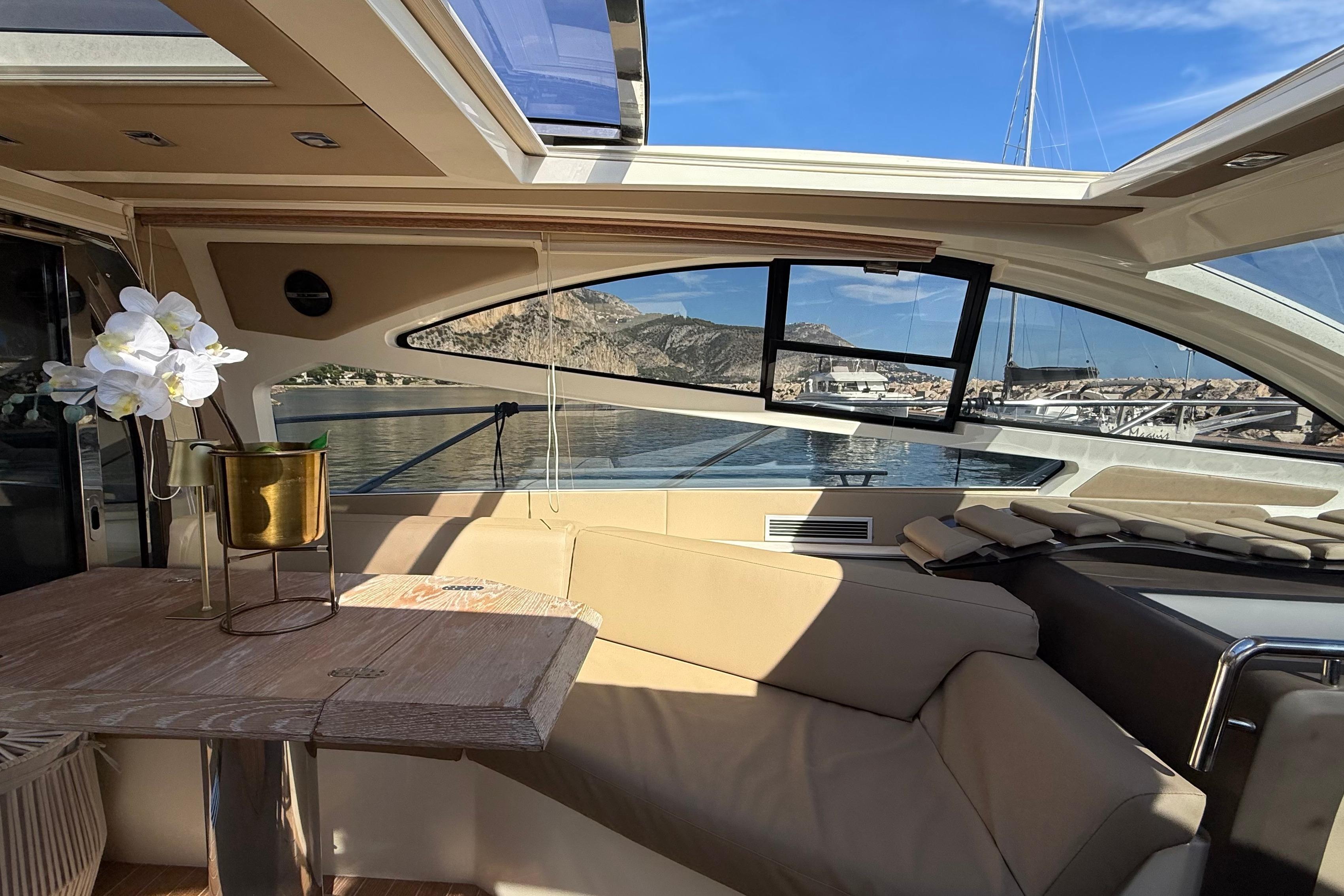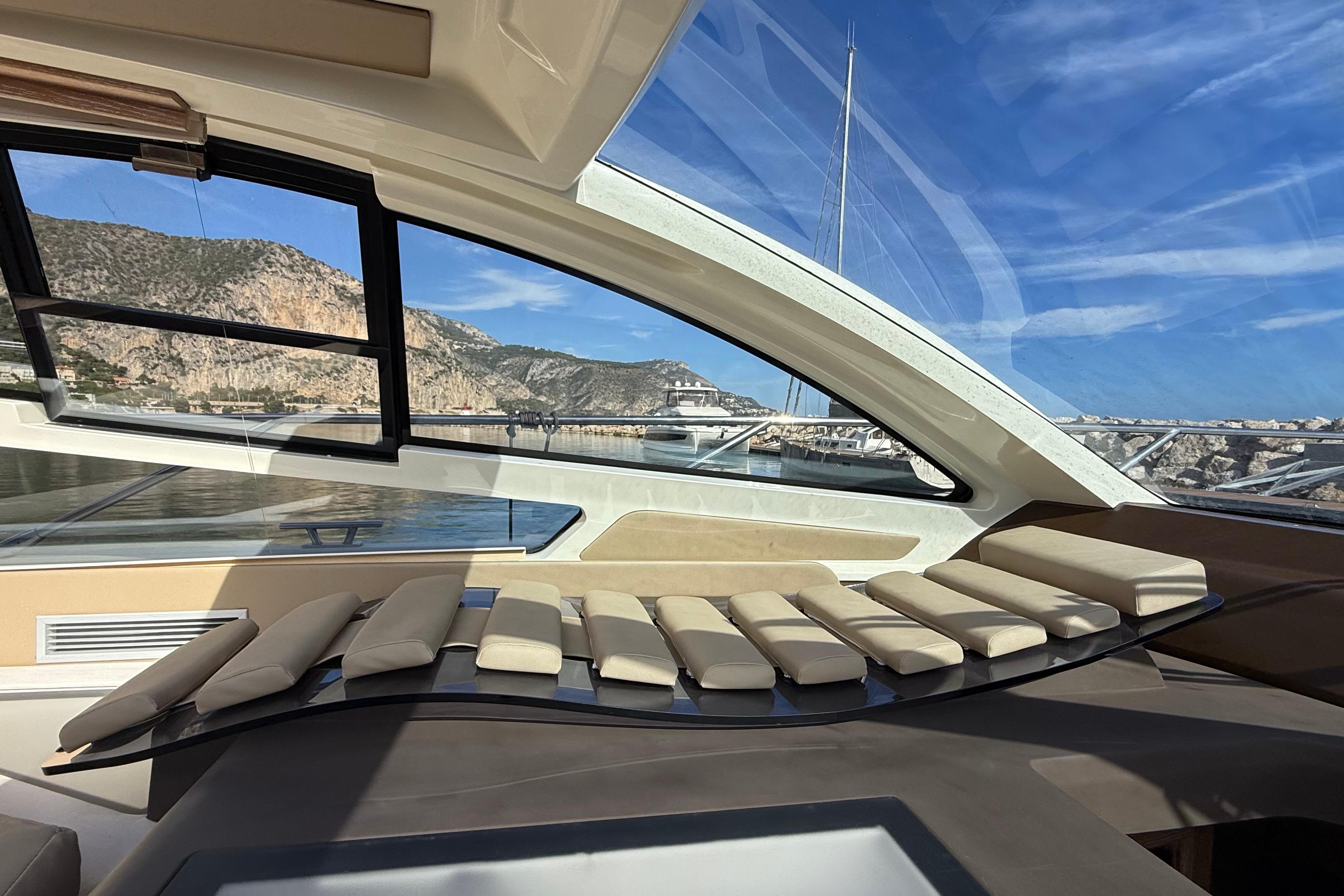 The Sogica 47 Openbridge perfectly embodies the balance between Italian style, performance and comfort. Powered by twin Volvo Penta IPS 600 (D6 – 435 hp) engines with only 830 hours, she delivers smooth handling, quiet operation and outstanding manoeuvrability — ideal for cruising the Mediterranean.