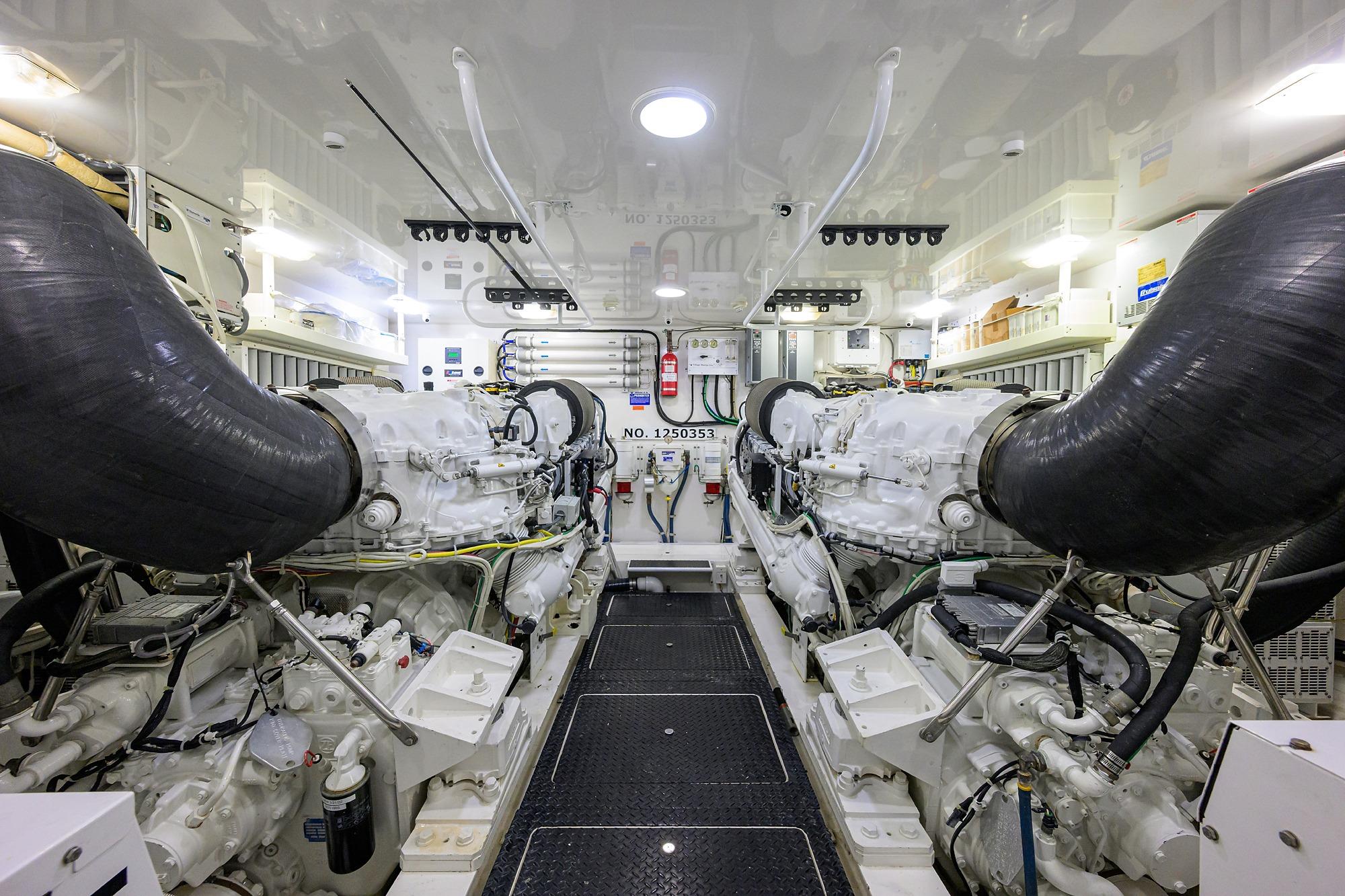 She has just returned from the shipyard where the annual bottom service was performed, reflecting the owner’s commitment to proper maintenance and care. The 76EB combines the comfort of an enclosed bridge with the versatility of a tower, making her equally suited for tournament fishing or long-range cruising.