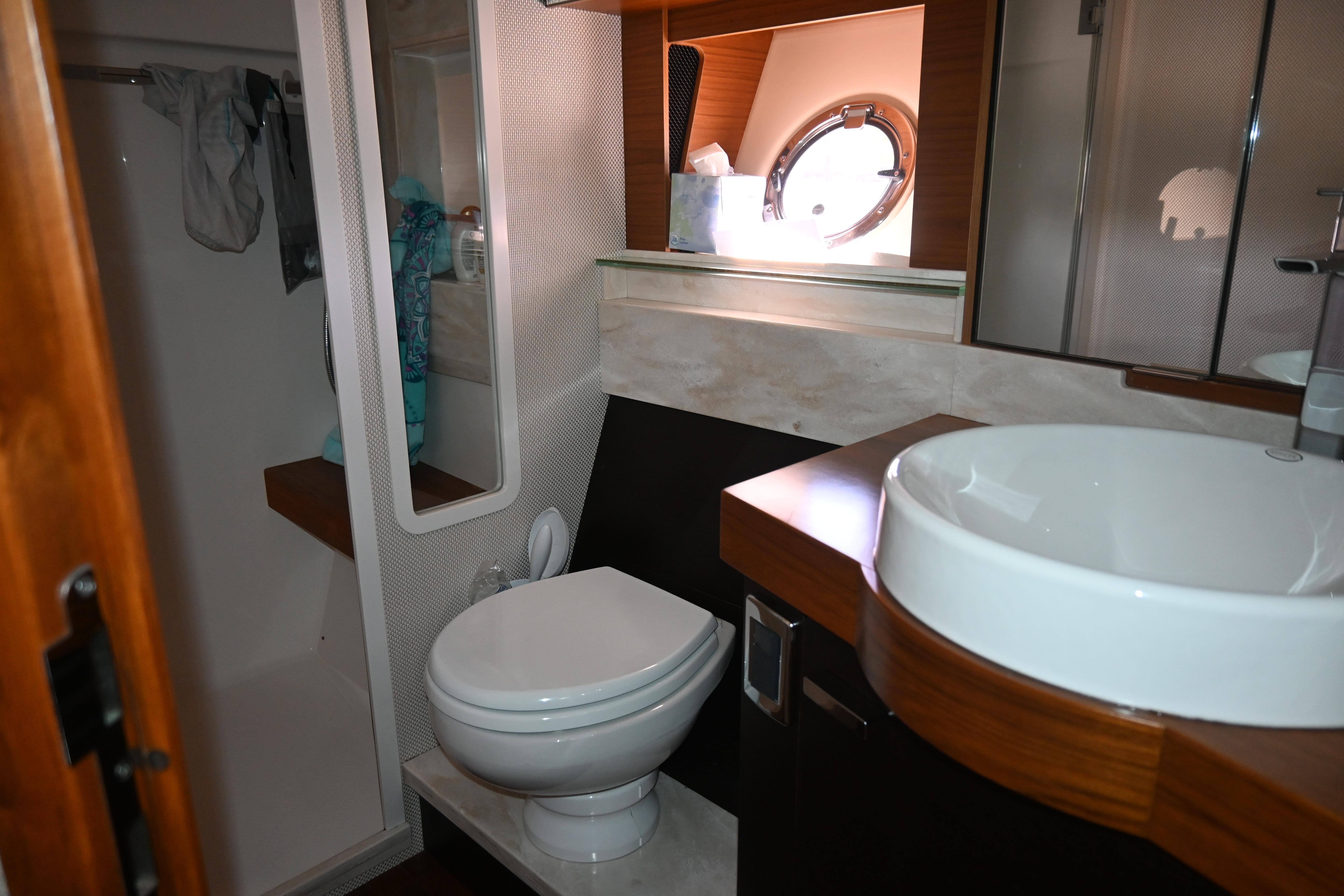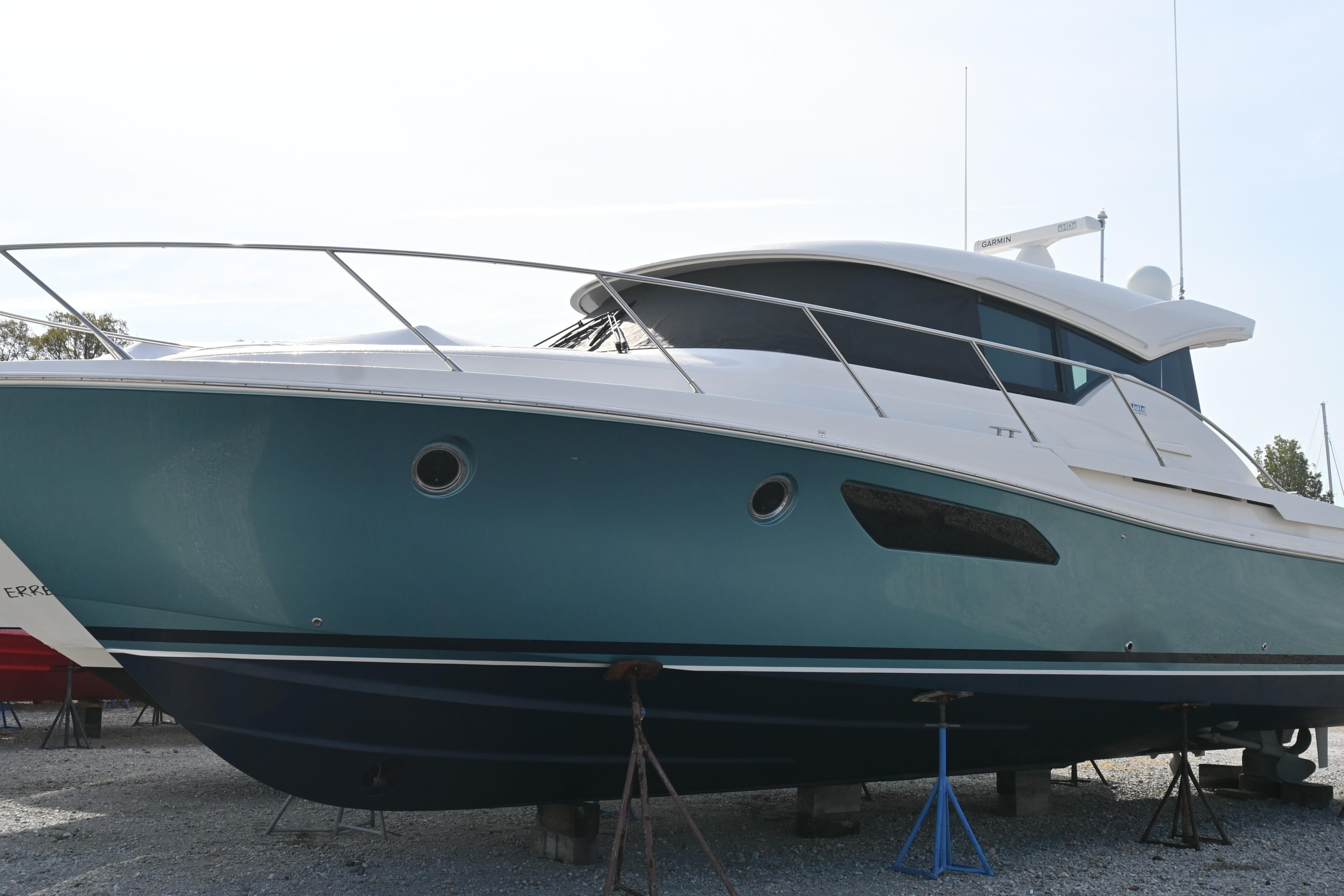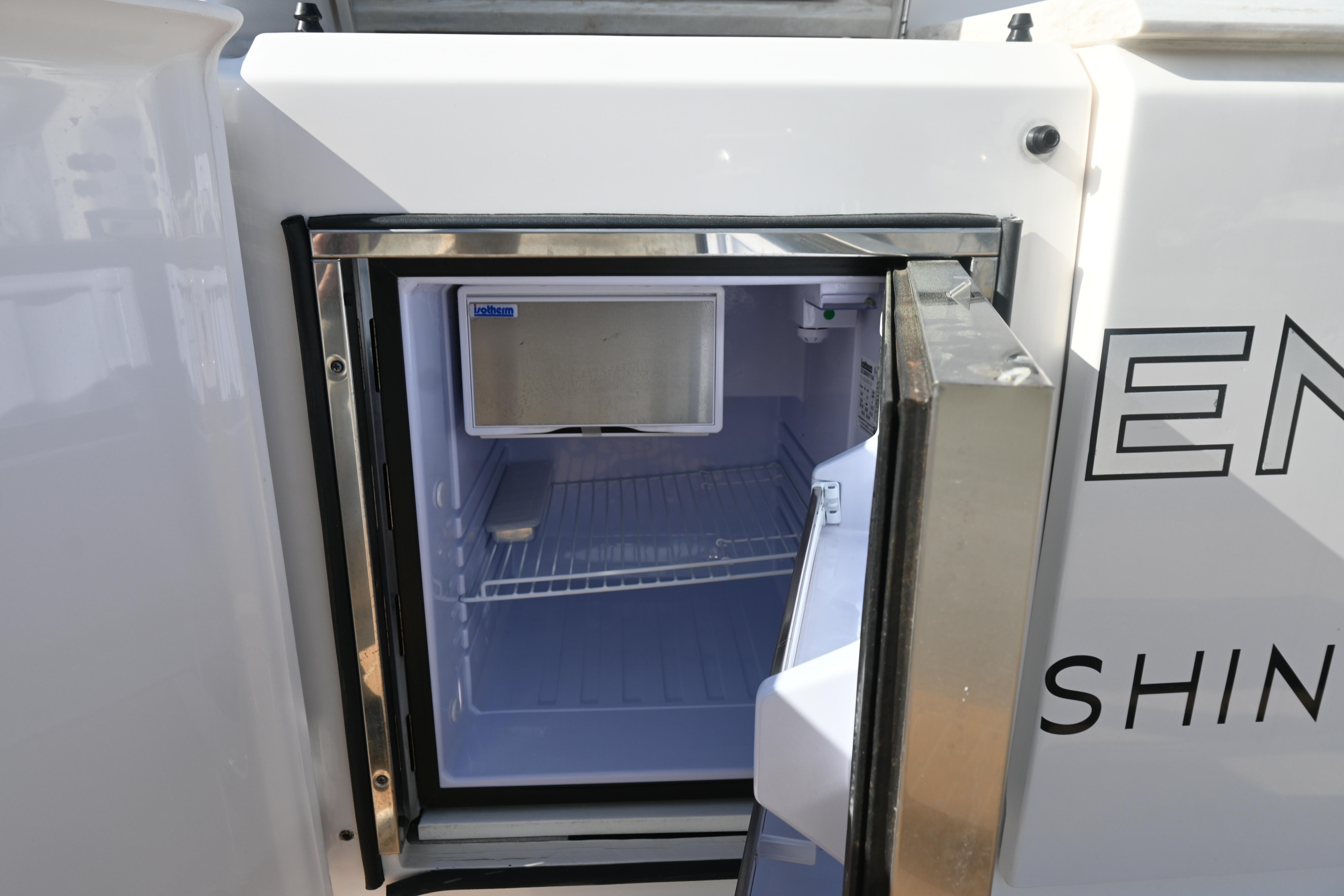 Her custom “Light Aqua Effect” hull paint turns heads wherever she goes, while the spacious cockpit and salon layout provide a seamless flow between indoor and outdoor living. A large swim platform, transom grill, outdoor refrigerator, retractable sunshade and expansive bow sun pad make her ideal for entertaining, while the massive transom trunk with powered door adds impressive storage for day trips, weekend getaways, or extended cruising.