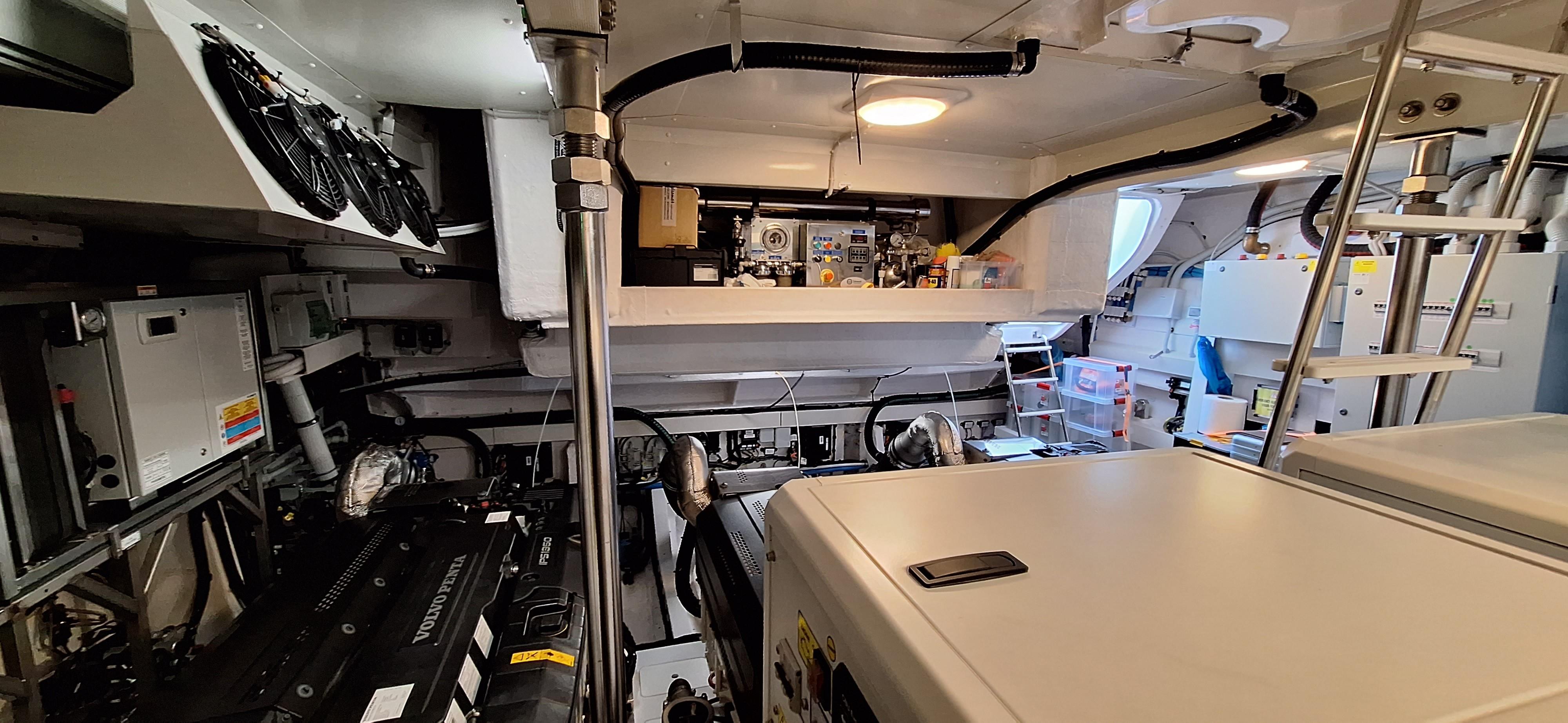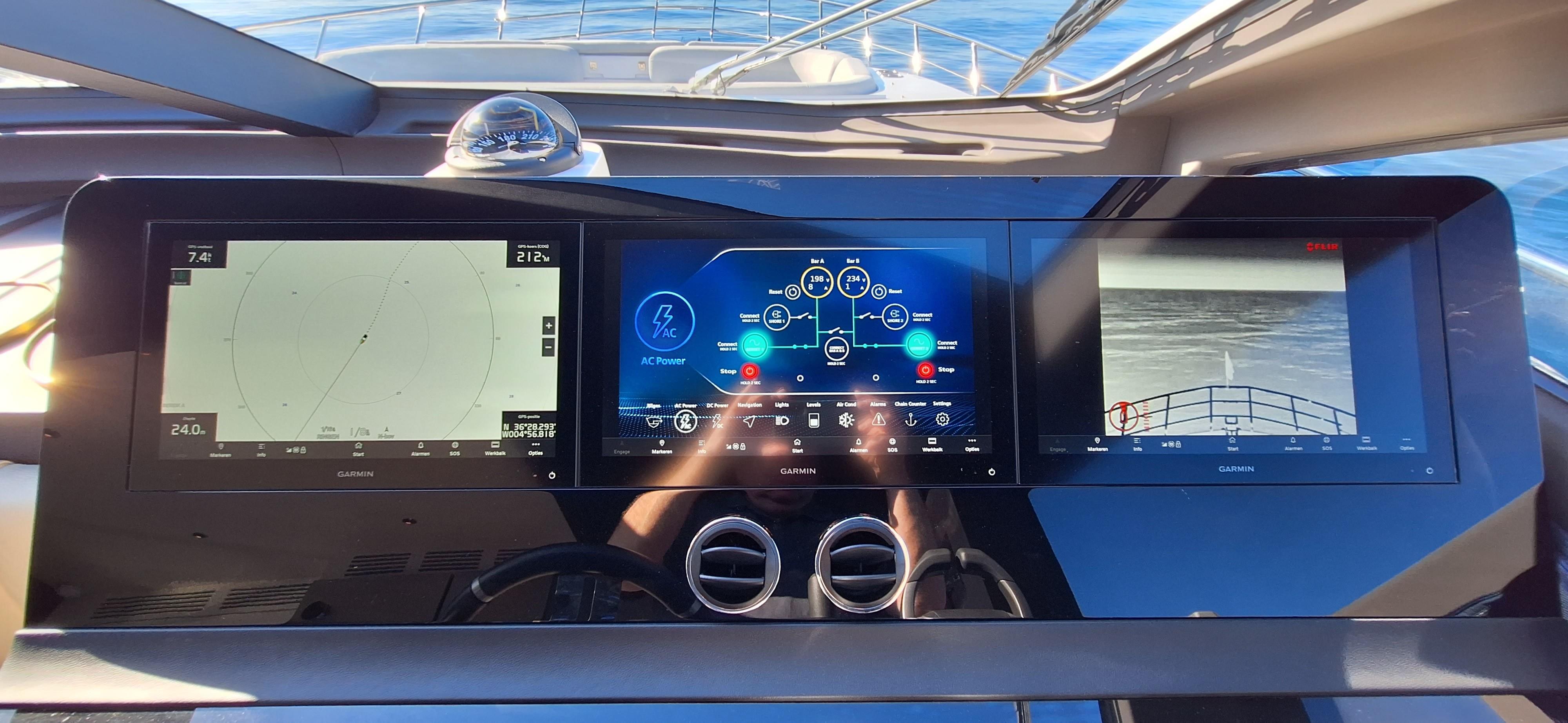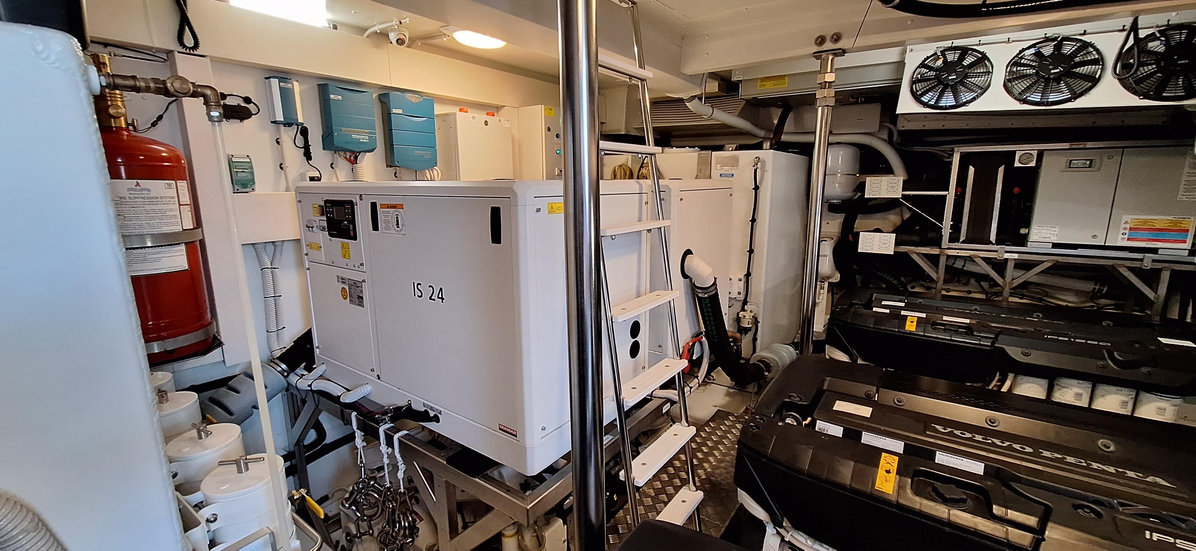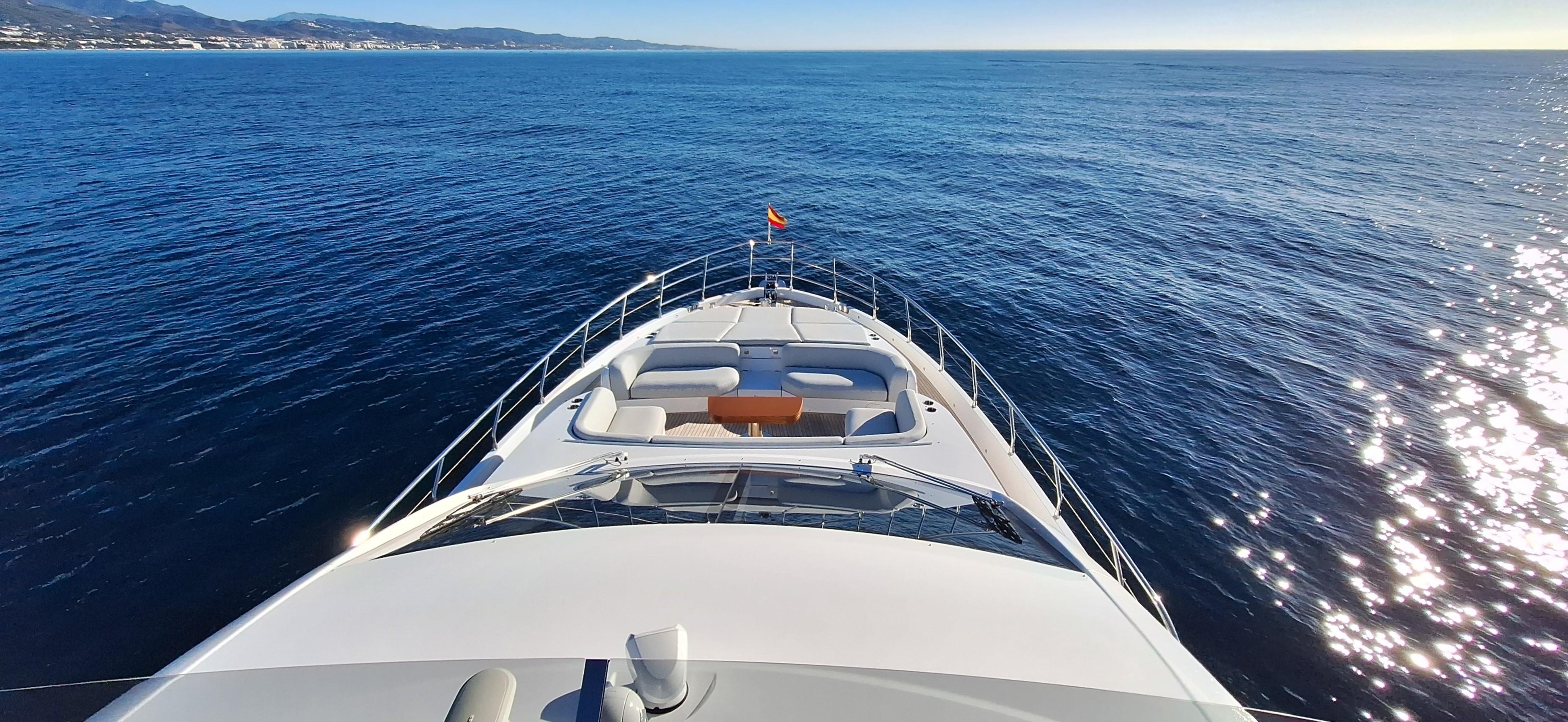 Deze Azimut 78 Fly is uitgevoerd in de exclusieve loungeversie, met twee royale L-vormige salonbanken tegenover het entertainmentcentrum aan stuurboordzijde. Dankzij de zwaarste motorisering, 3x Volvo IPS1350 (D13-1000), bereikt het jacht moeiteloos een topsnelheid van 33 knopen.