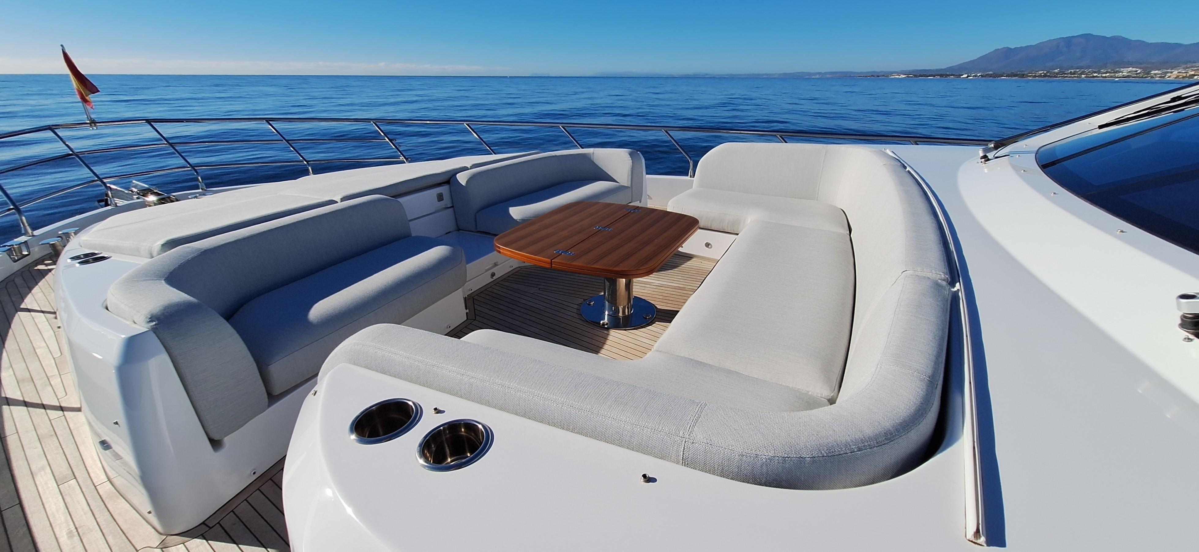 Loungebanken op de flybridge met 2 loveseats en 2 salontafels