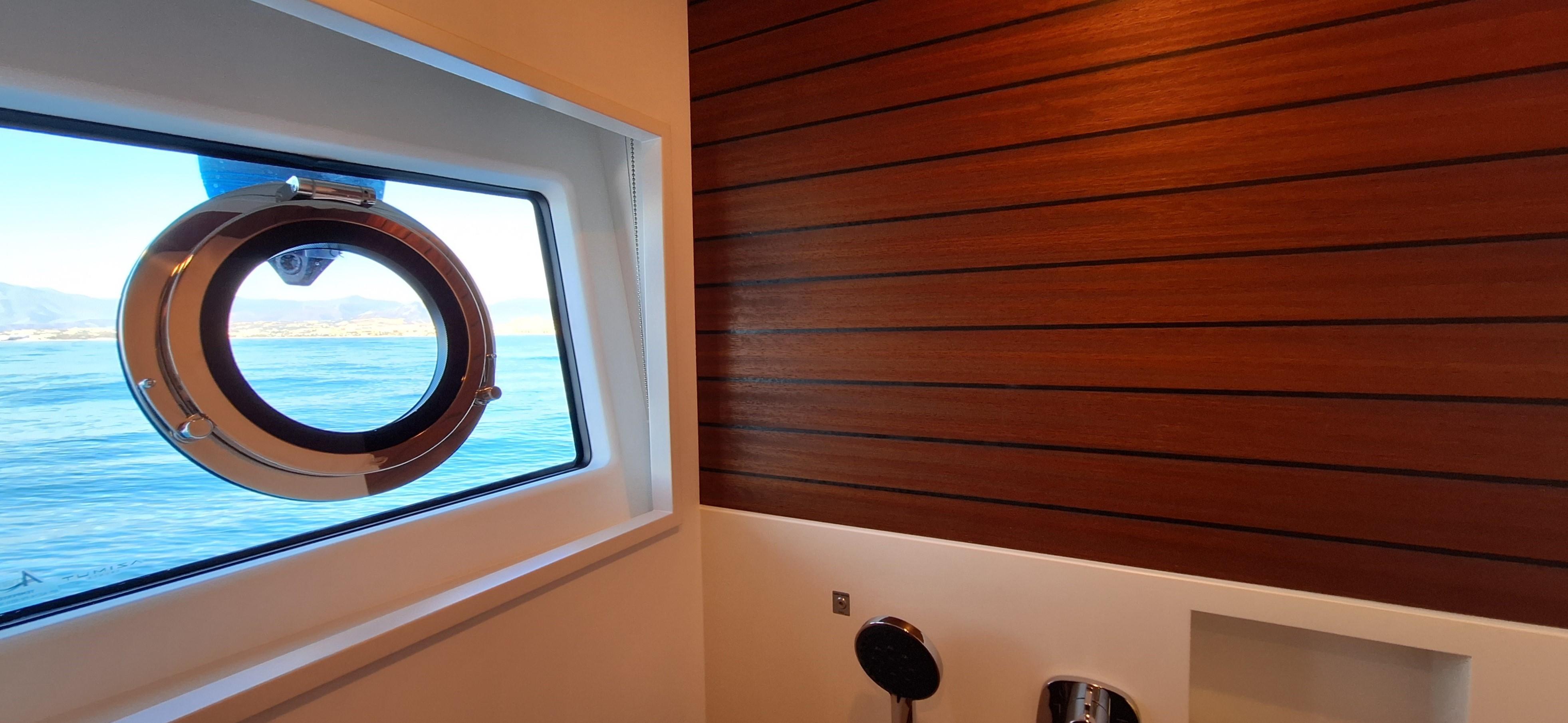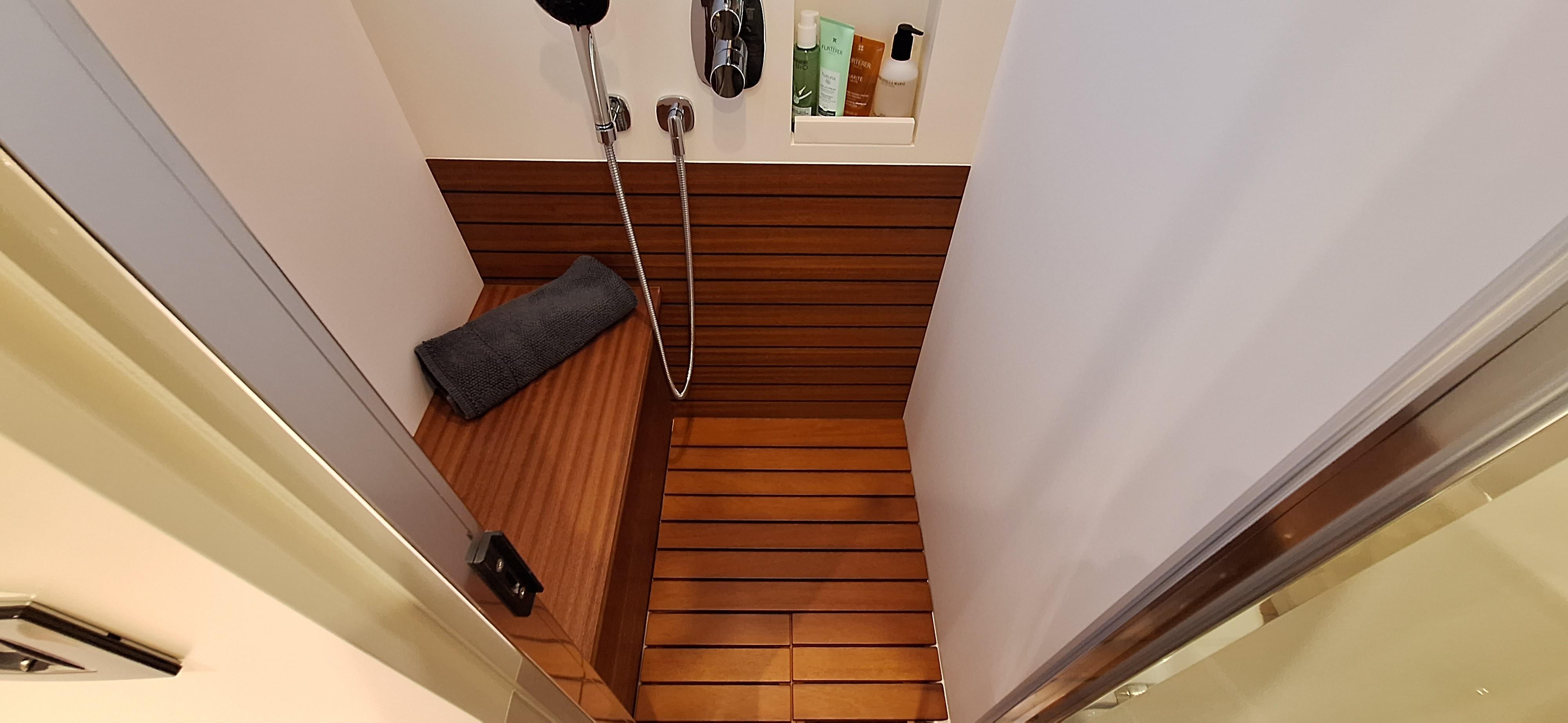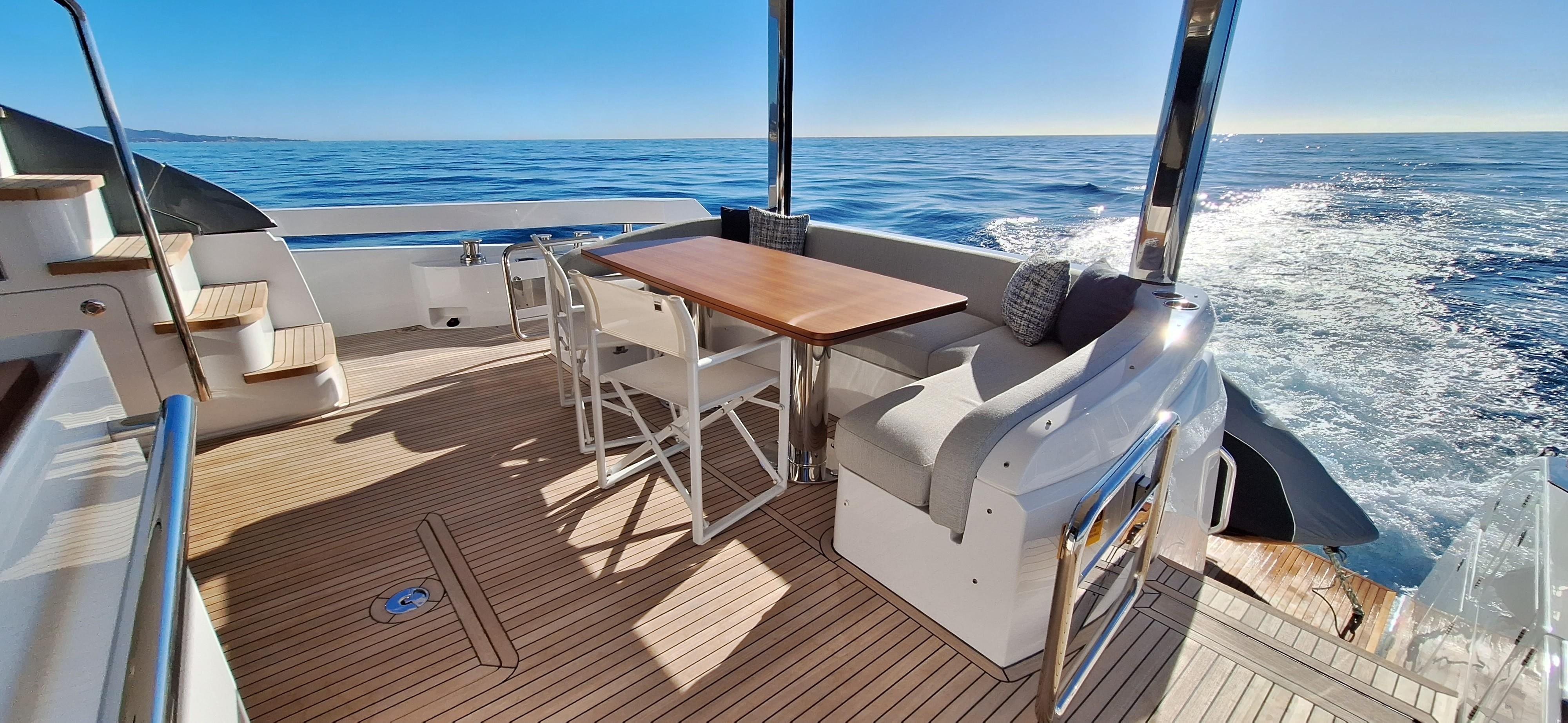 Teak op zwemplatform, cockpit, gangboorden en op de flybridge