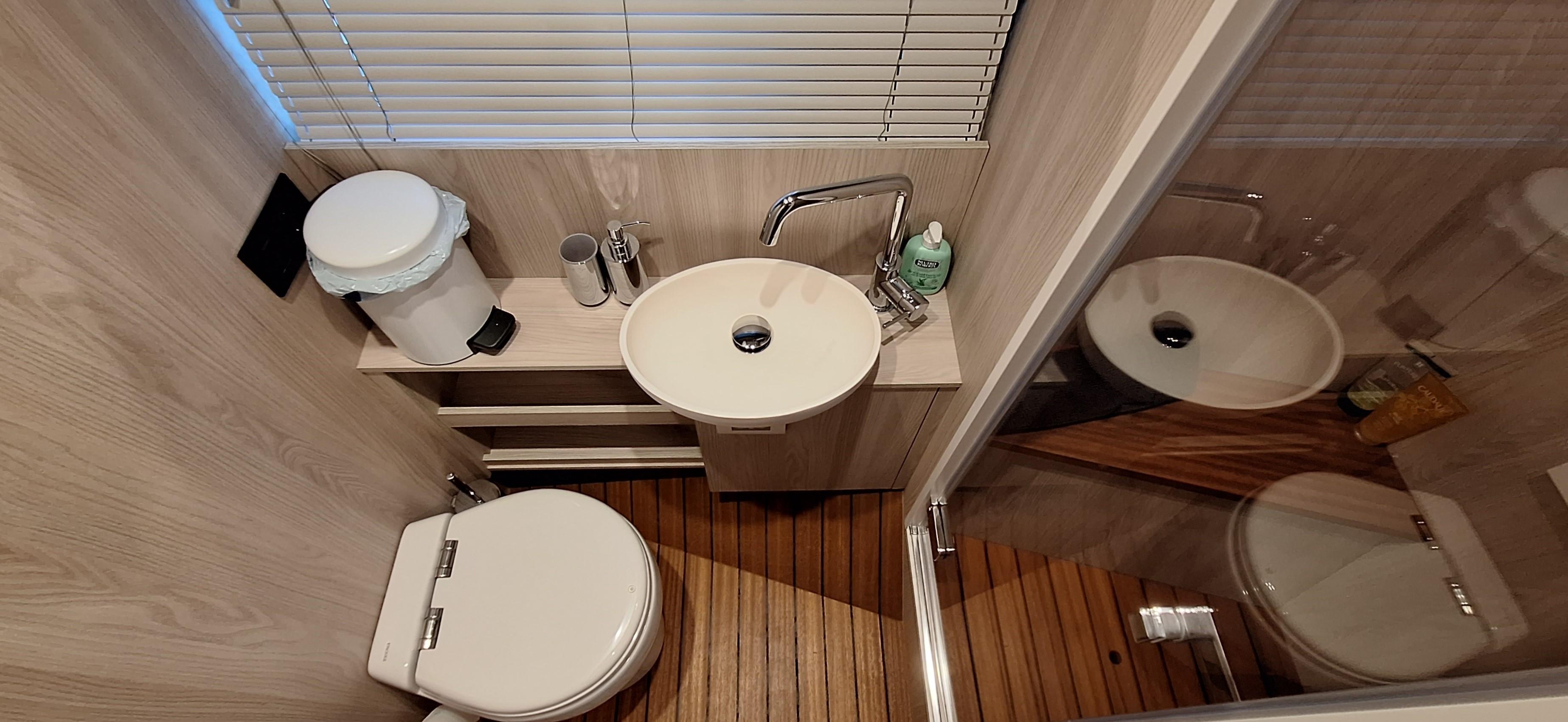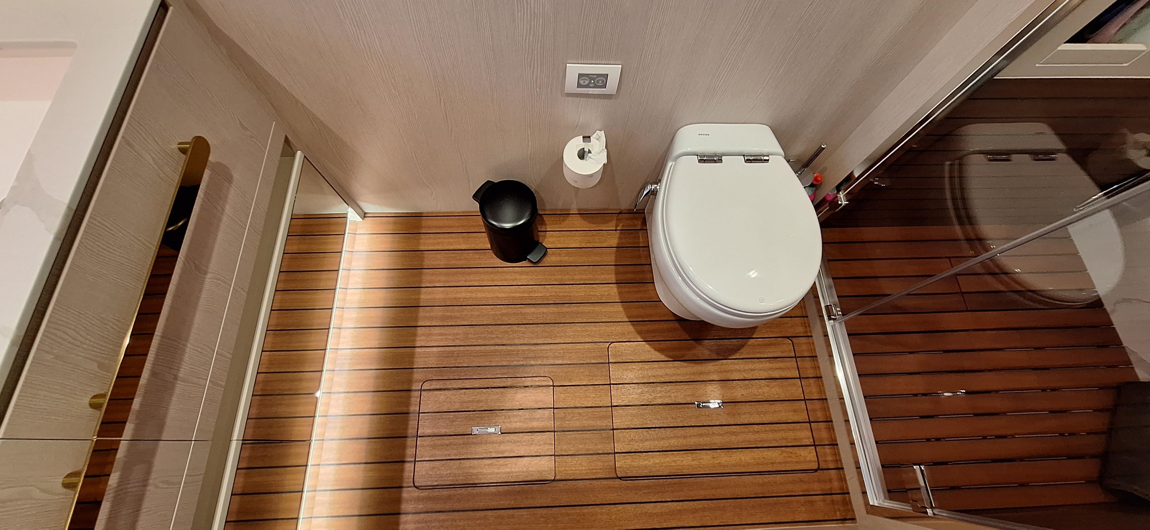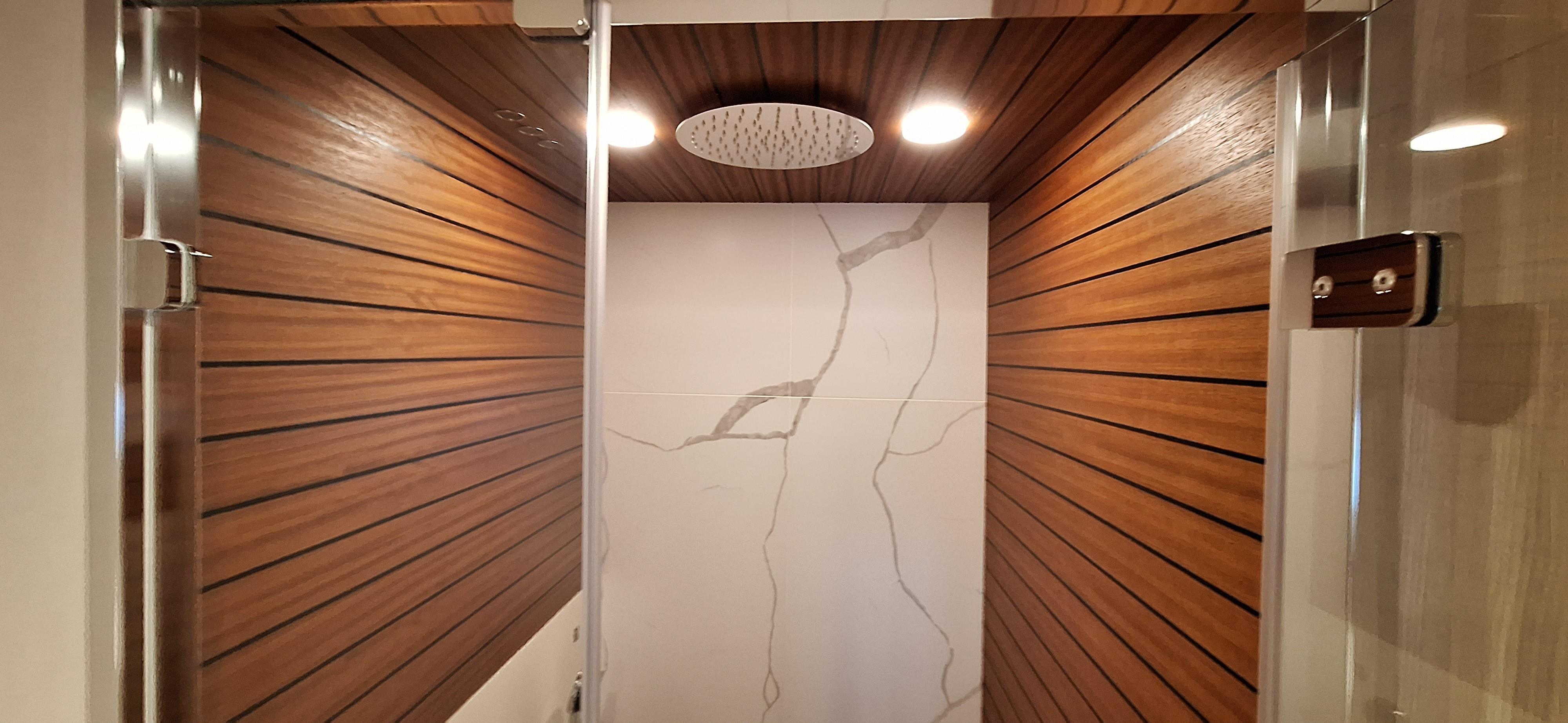 Teak op zwemplatform, cockpit, gangboorden en op de flybridge