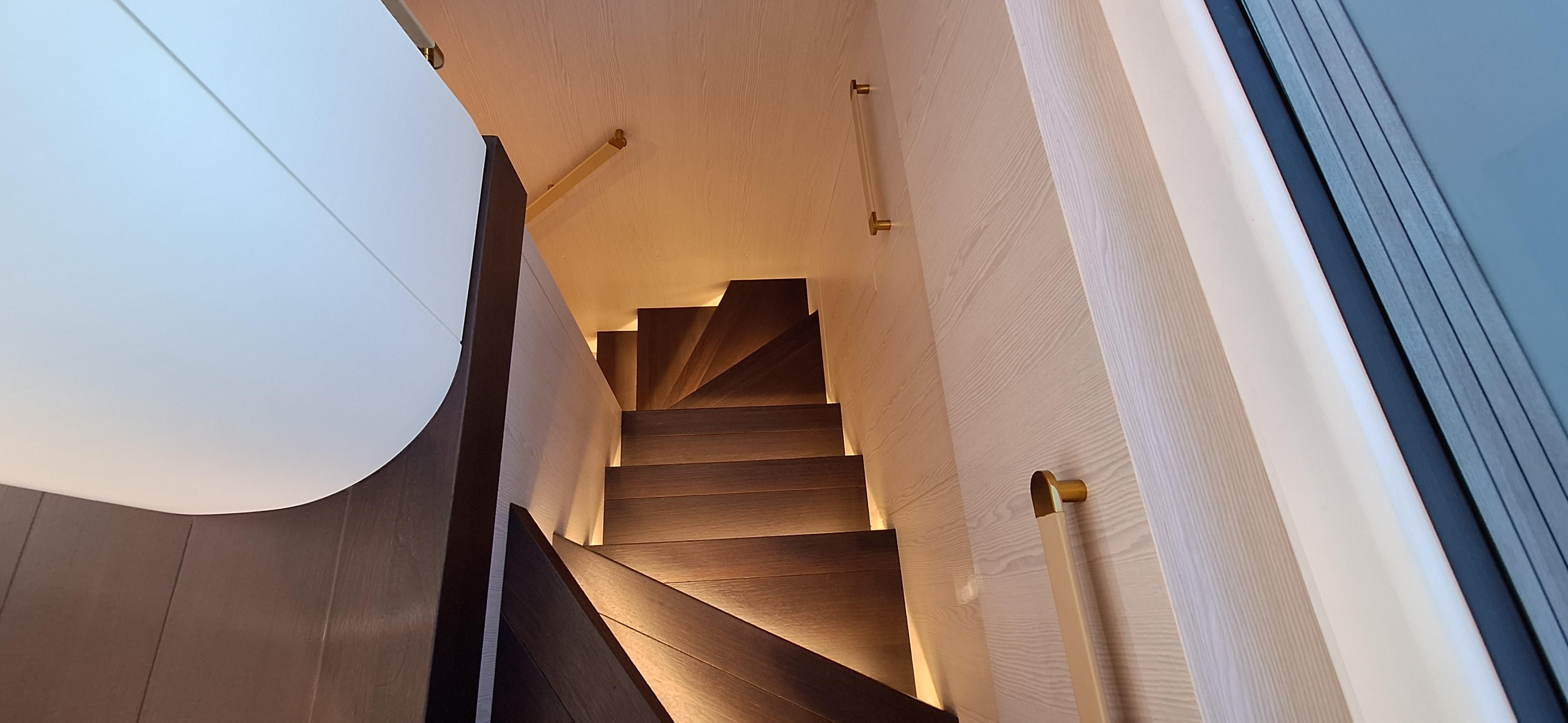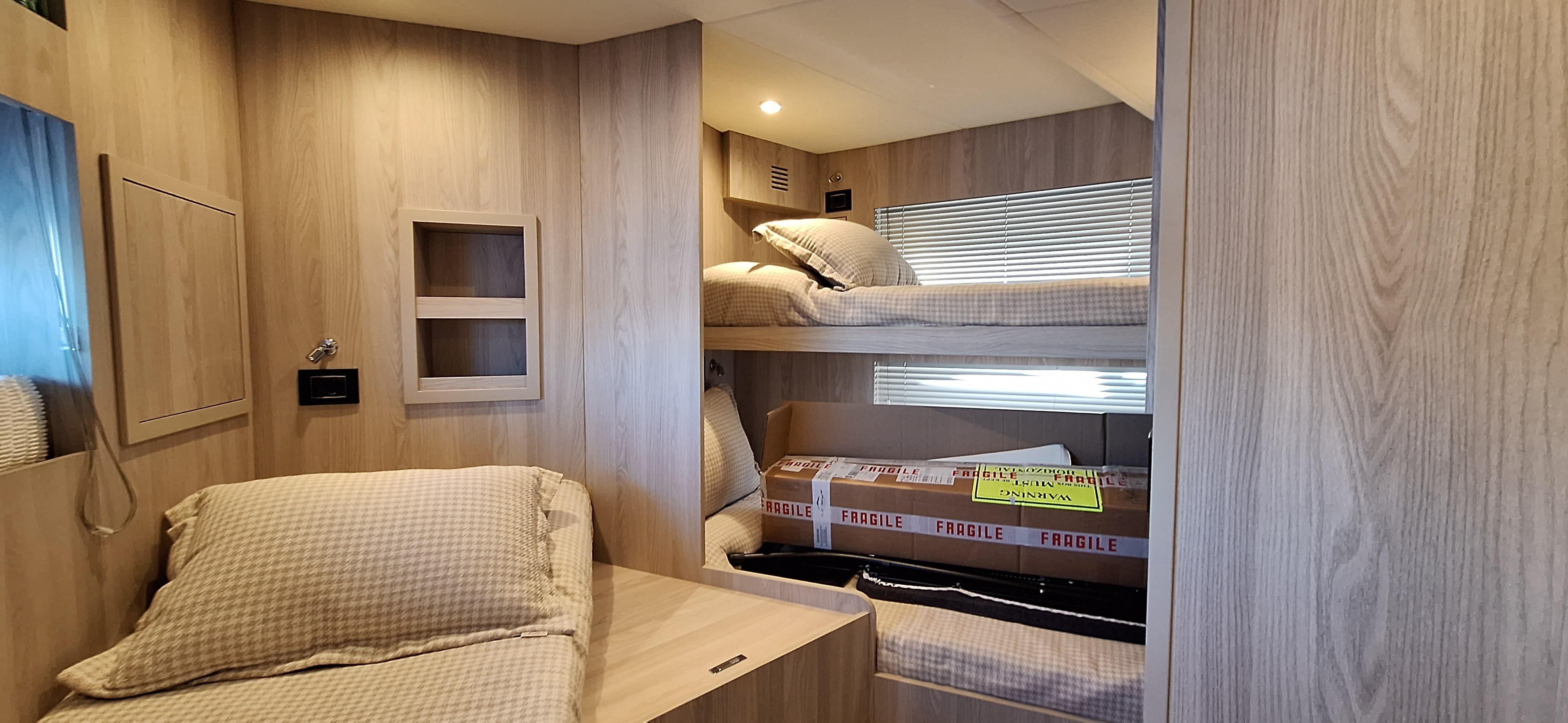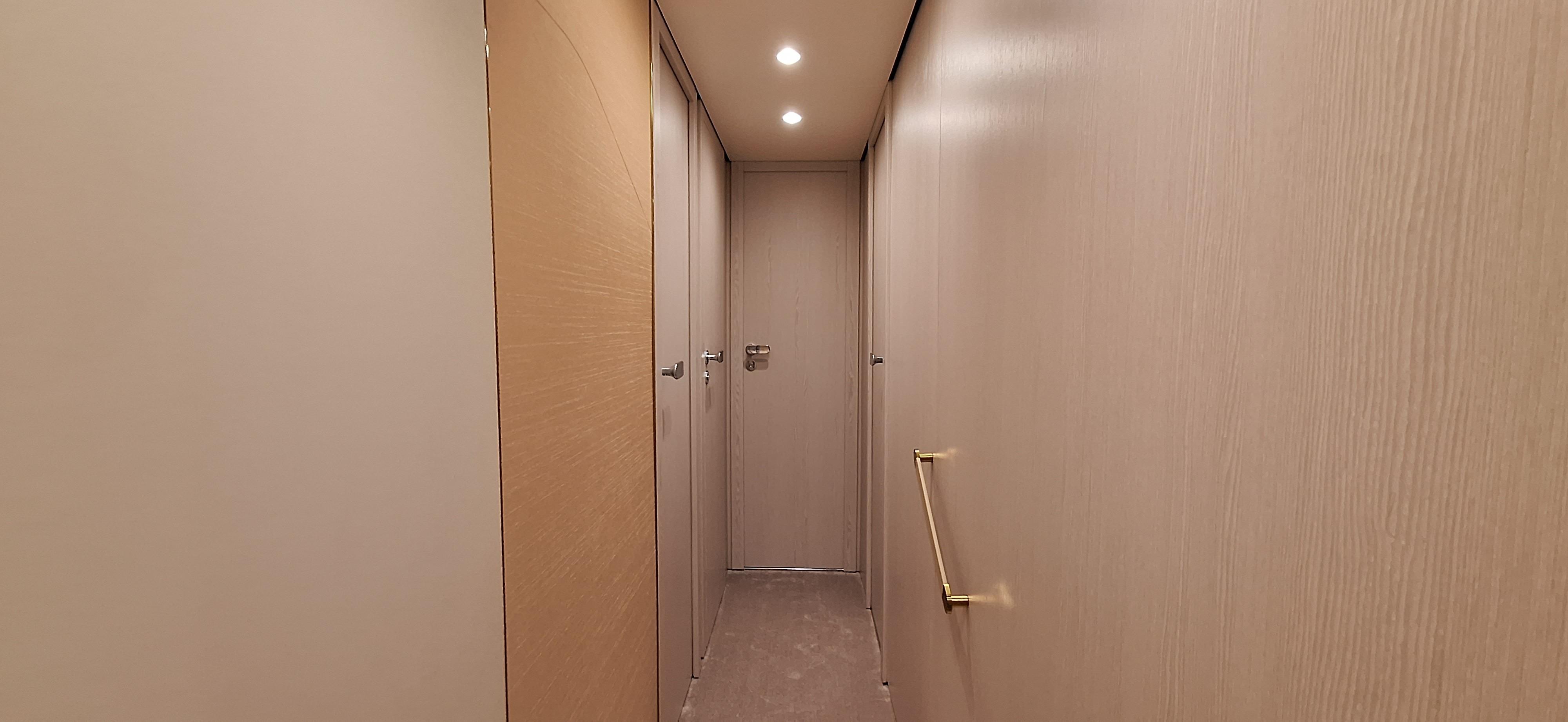 Het interieur is ontworpen door Achille Salvagni en ademt pure luxe: een donkere notenhouten vloer, hoogglans houtafwerking en perfect bijpassende stoffering zorgen voor een verfijnde en tijdloze sfeer.