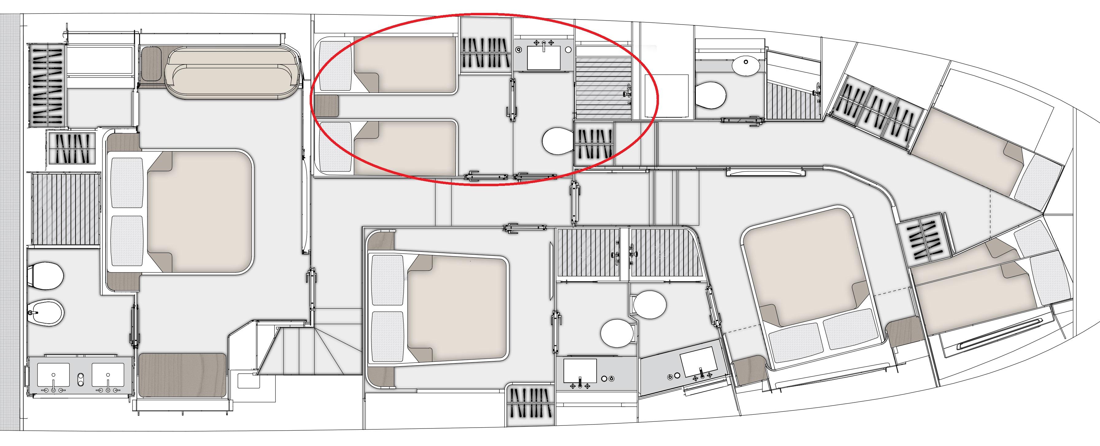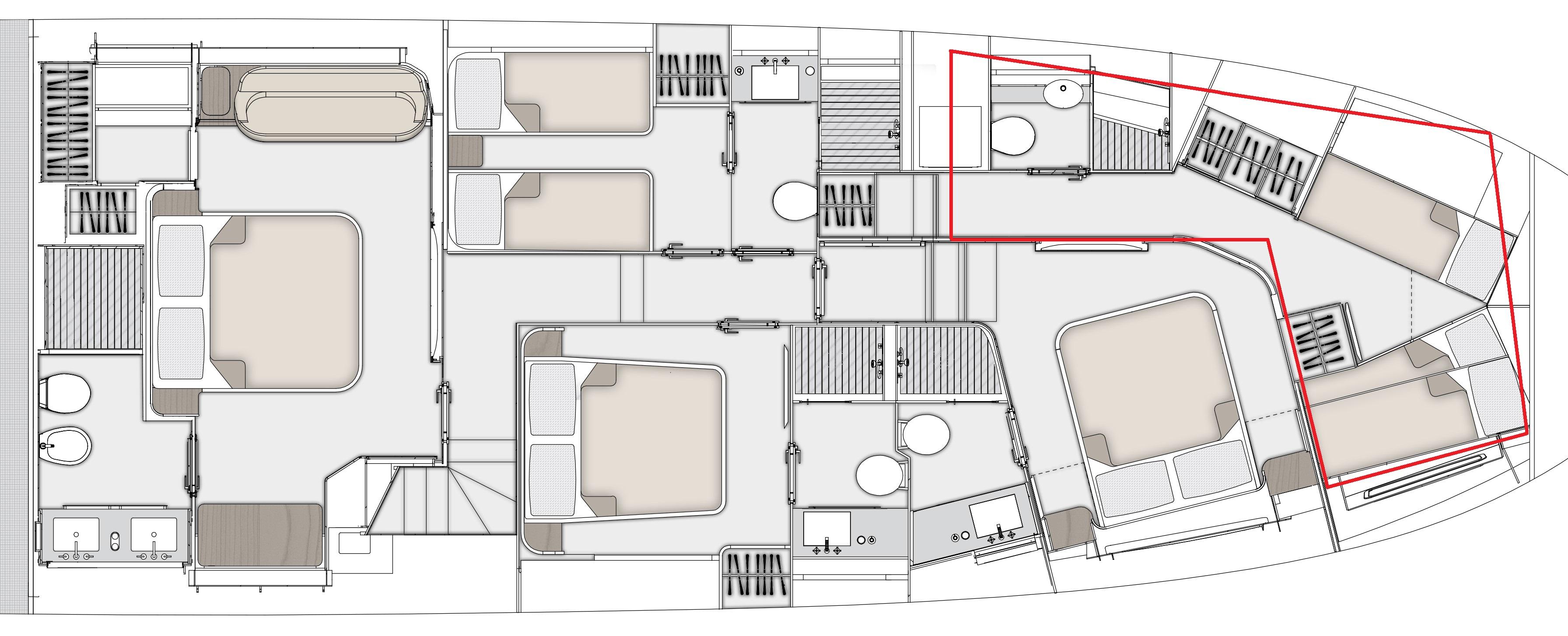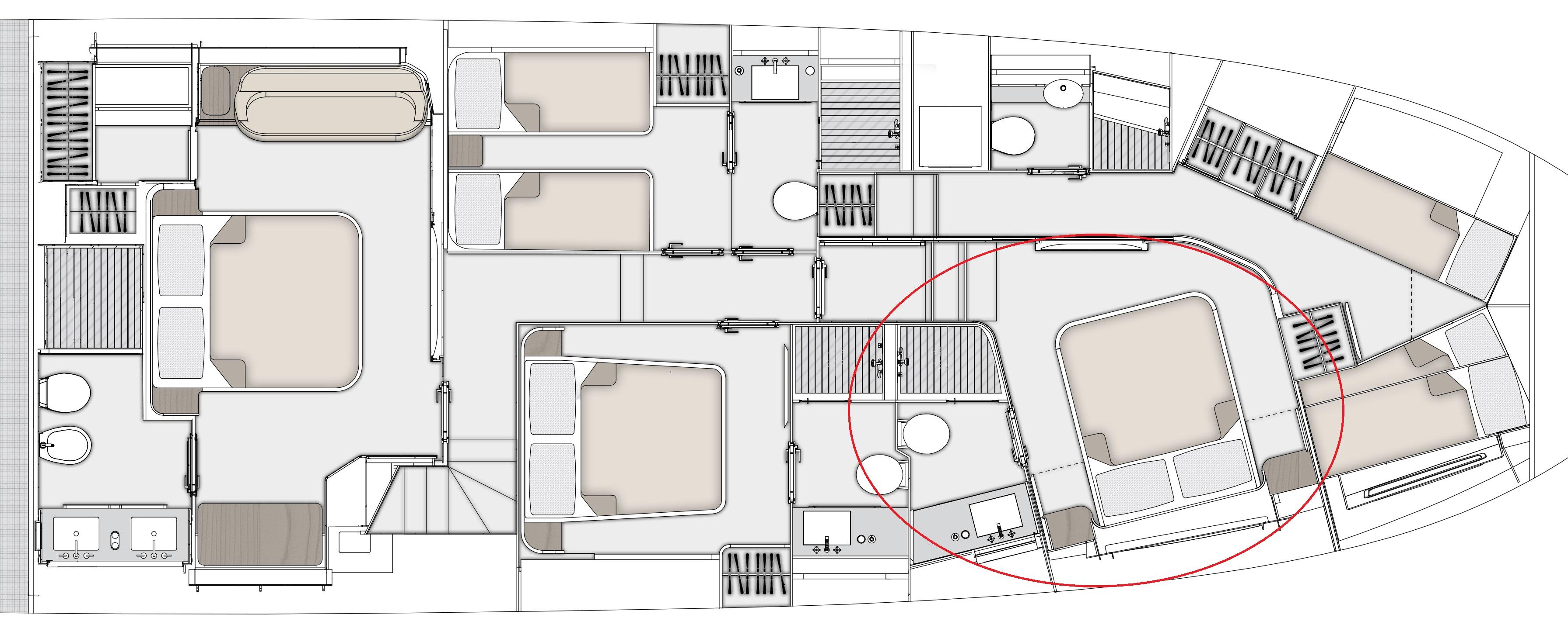 Extra opbergkast in VIP cabin, ontworpen door Achille Salvagni