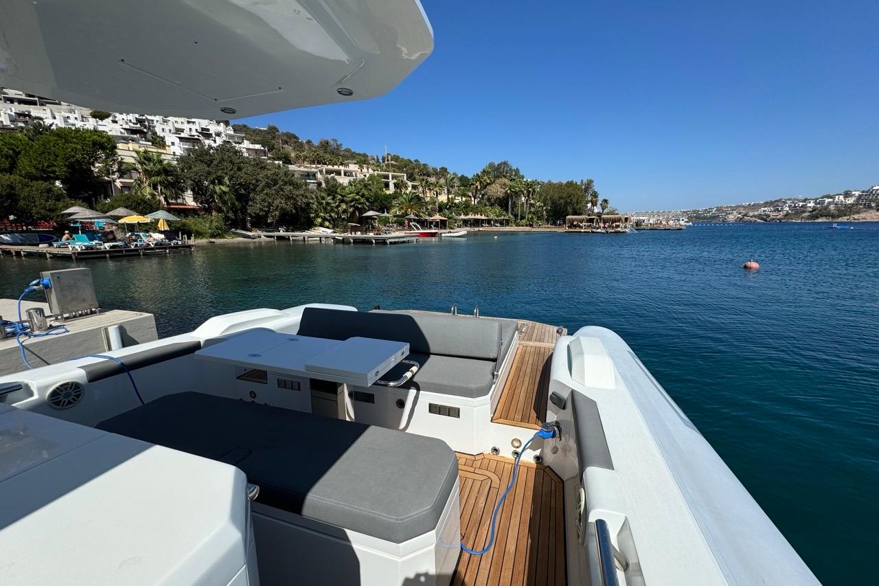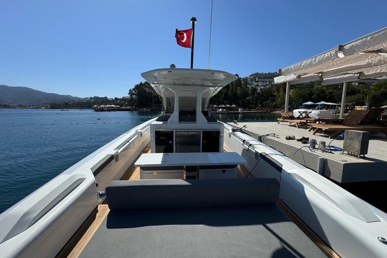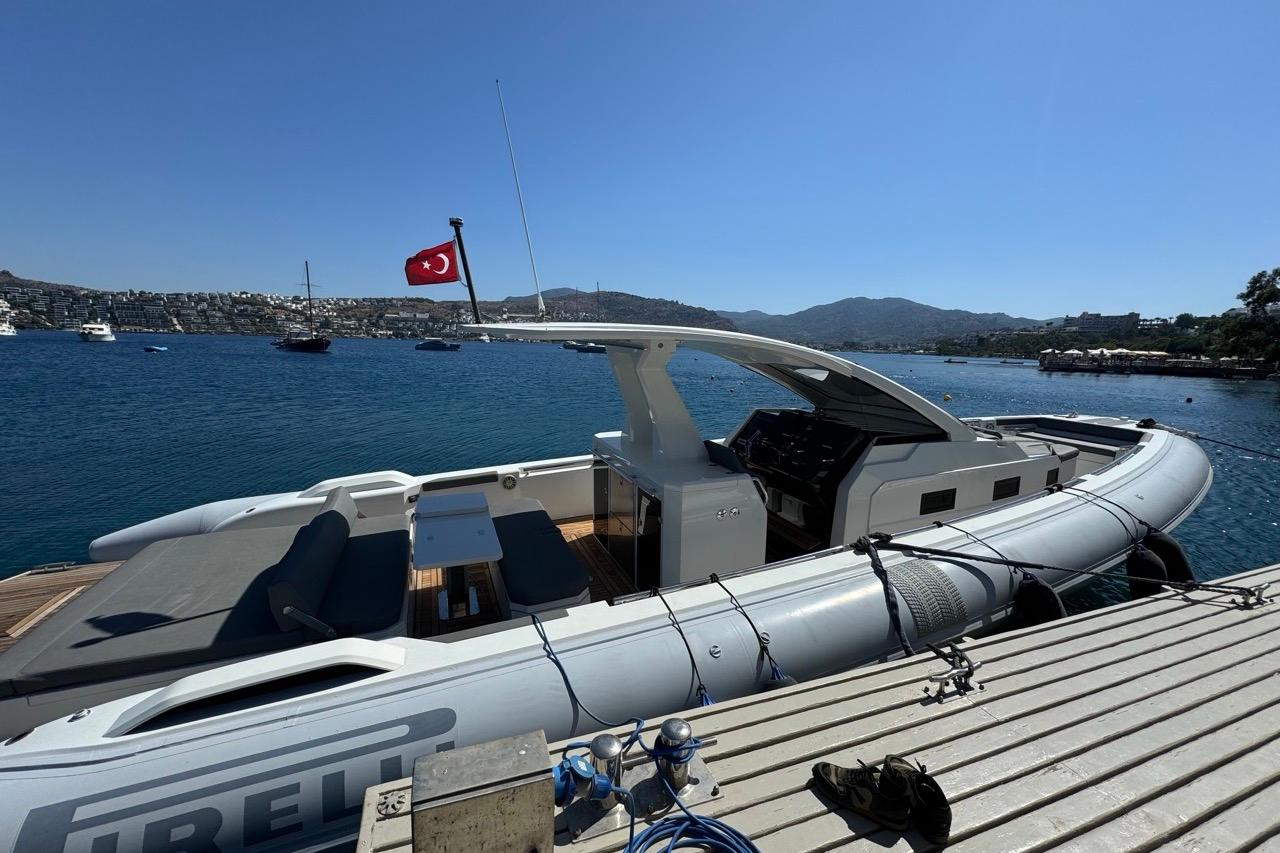 Pirelli 42 (2021) in excellent condition, equipped with twin Volvo Penta D6 IPS engines (2 x 400 HP, 120 hours each). Built by Tecnorib, this 13.1 m model combines performance and comfort with one cabin, bathroom, air conditioning, full galley and upgraded navigation package. Features include hard top with crystal windscreen, GPS 12” with additional screen, stereo system, LED lighting, hydraulic swimming platform, outdoor galley and sunbeds. Fully maintained, Cook Island flag, available for inspection in Turkey.
