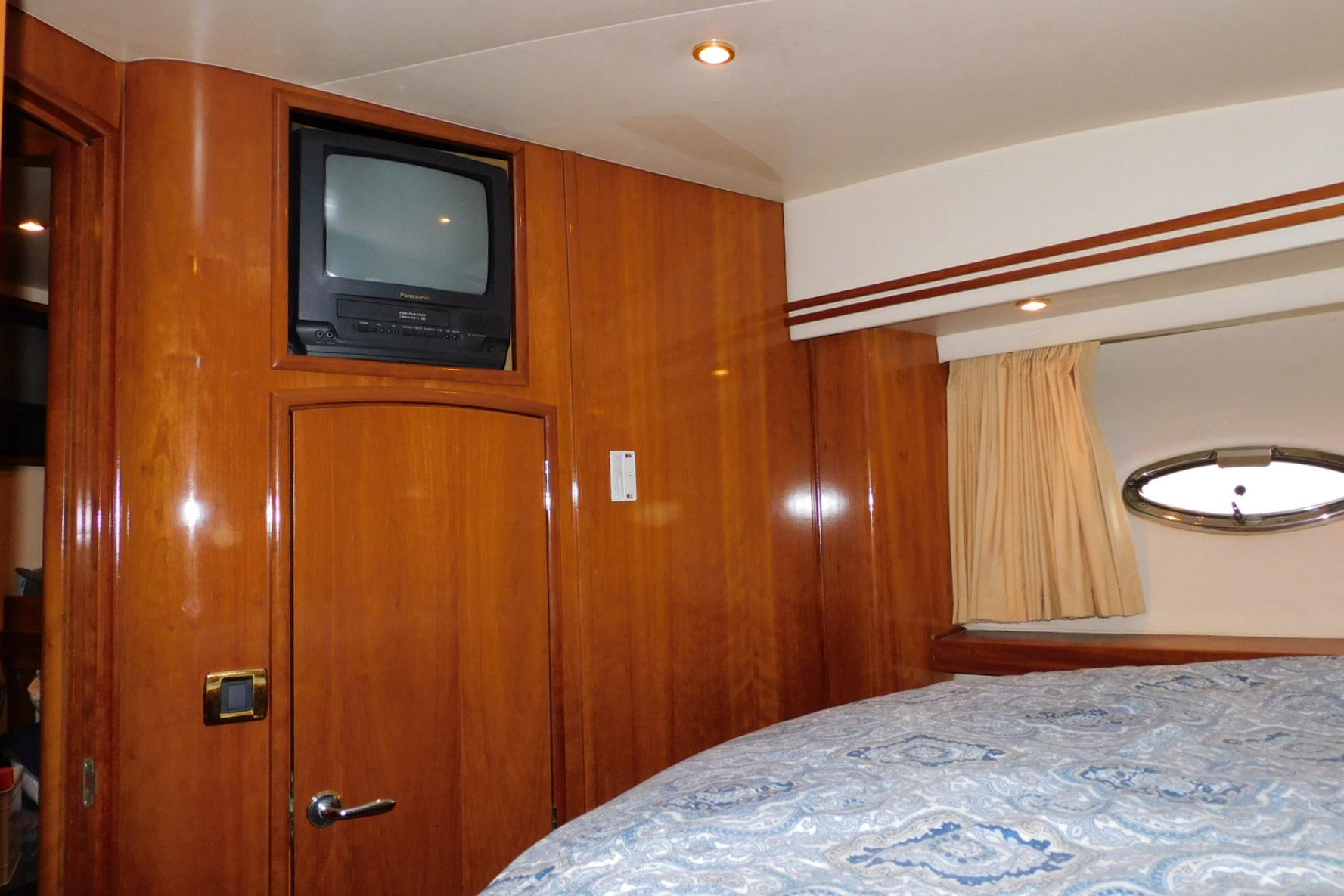 Two Guest Staterooms, Forward with Queen centerline berth and Mid guest with twin Bunks, with Closets and TV’s.
