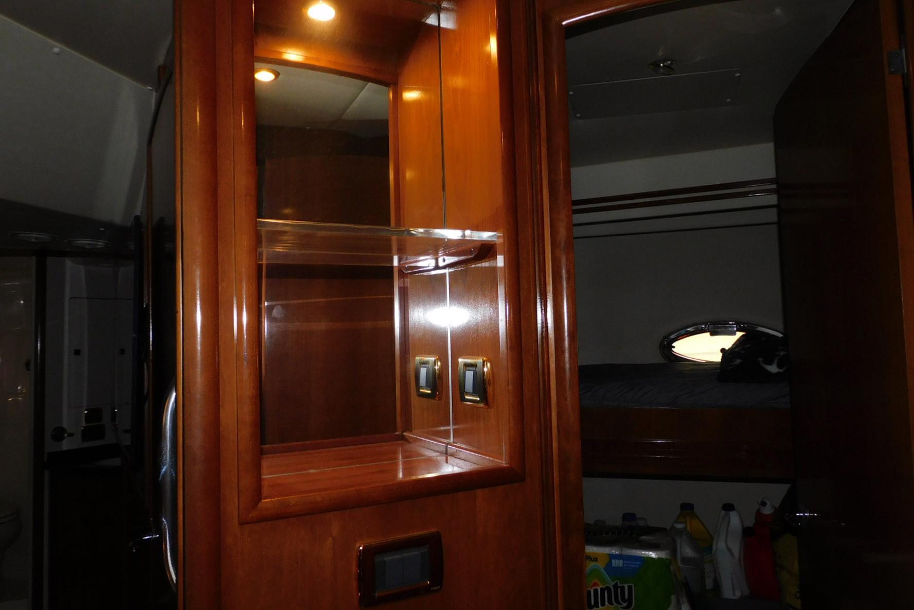 Forward of the master to port is a second state room with twin bunk beds. Further forward is a large queen V-Berth and guest bath with entry from the hall way and V-Berth suite. The beautiful cabinetry and wood work is carried throughout from the main salon and Sky Lounge to the lower level hallways and staterooms.