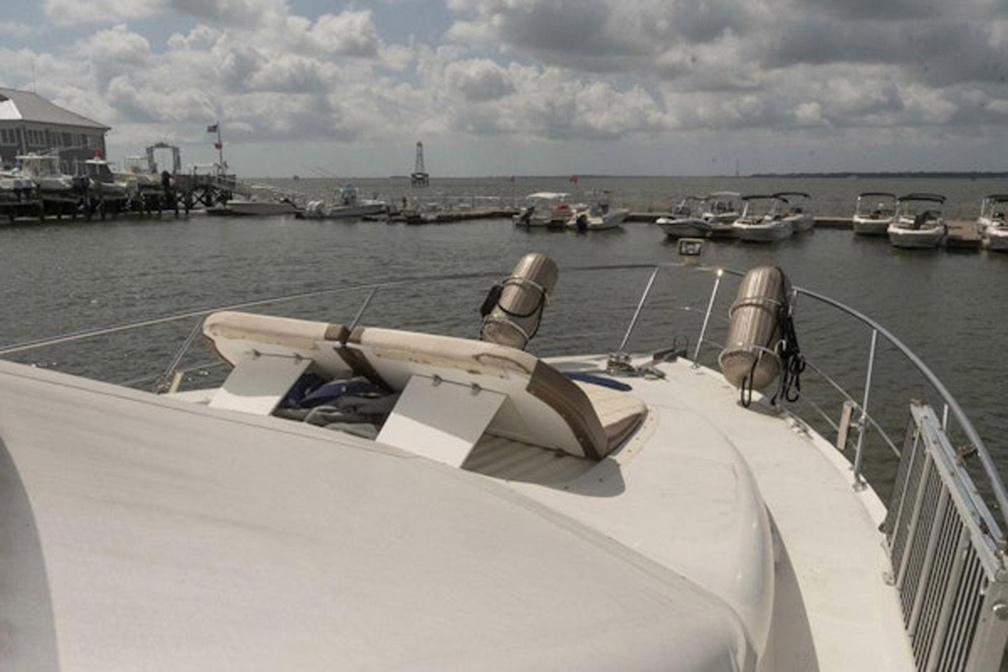 On the bow a luxurious sun pad is integrated into the yachts design for sun bathing. Her groundtackle is complete with windlass, anchor, 150' chain, foot pedal and twin storage lockers at the bow with fresh and salt water rinse downs make cleaning up after the anchoring an easy task.