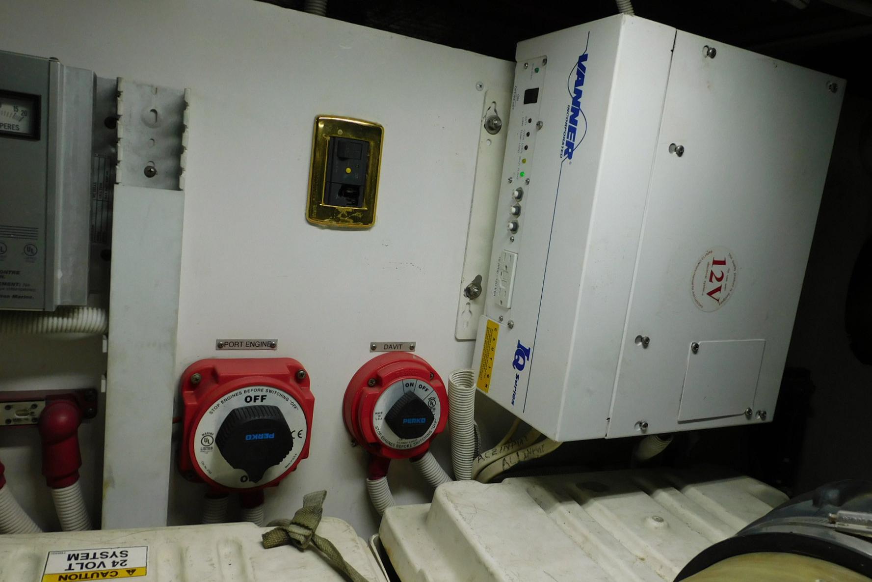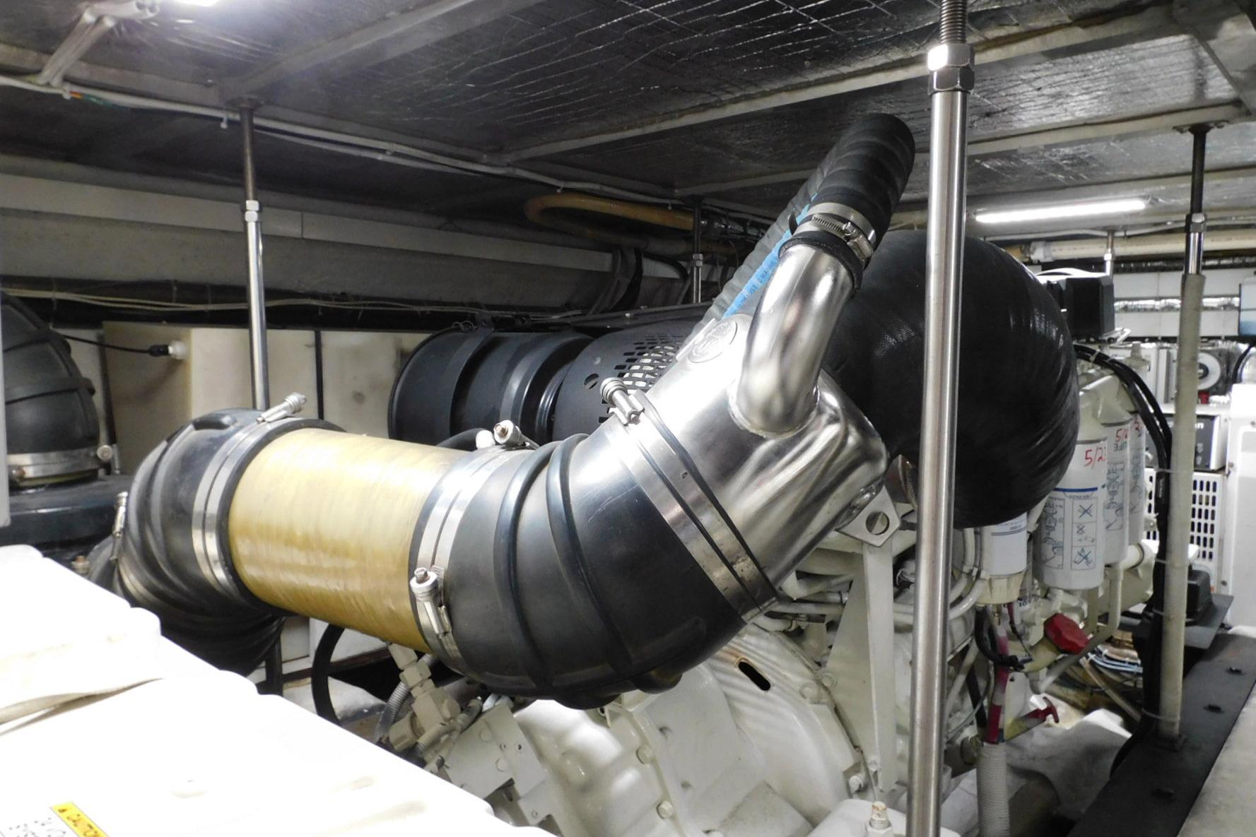 Her engine room is open, clean and accessible and well lighted, includes the upgraded power option of Volvo Penta D-12 675 HP currently showing approximately 1,718 well cared for hours. She has a Newer Onan 17KW generator, 535 hours, with sound shield, inverter and isolation transformer, and 50 amp retractable power cord off her stern with two (2) additional power receptacles and a spare power cord forward for mid ship power connections.