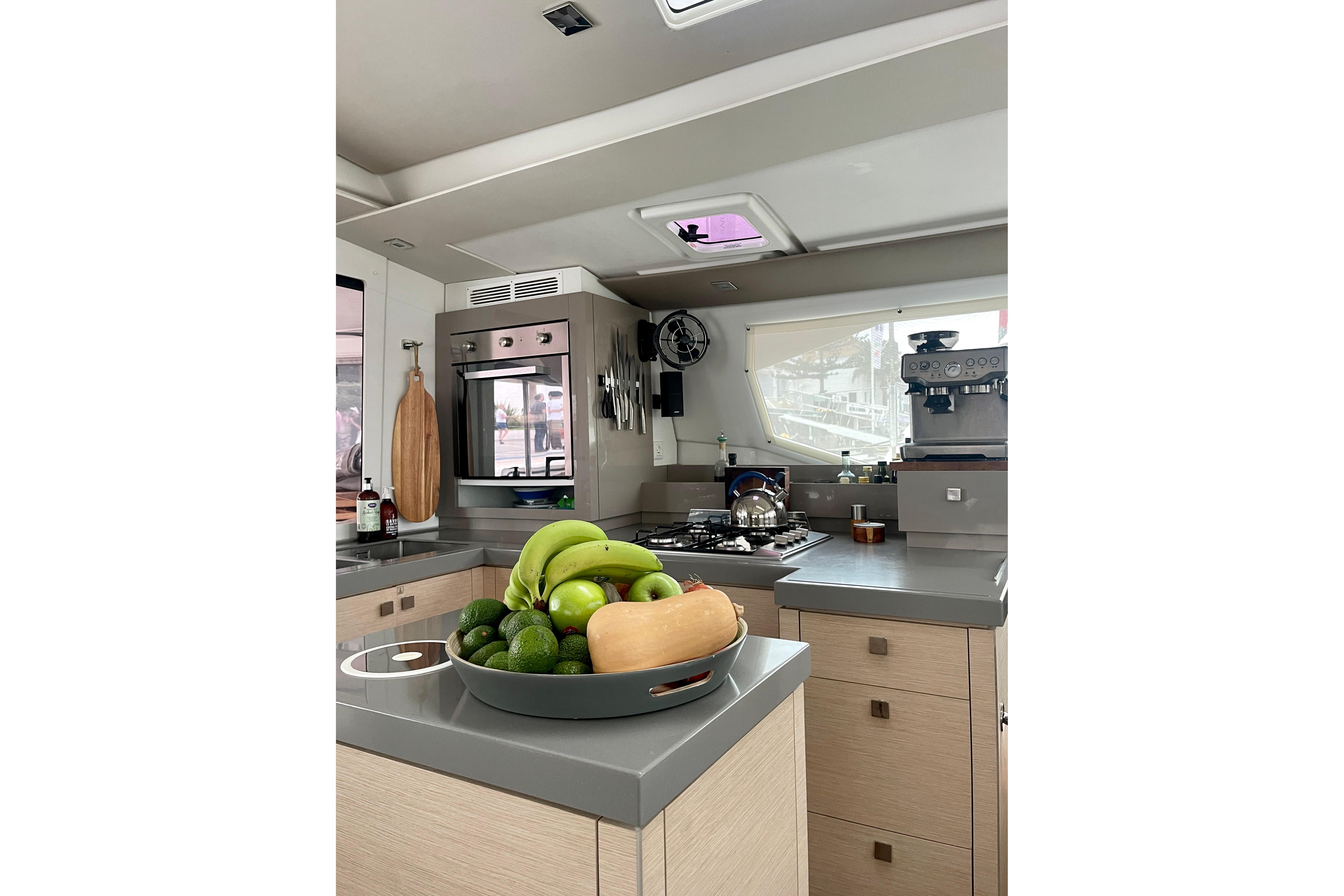The exquisitely crafted saloon is bathed in bright natural light, and her comprehensively equipped galley has an island bench and an abundance of storage for extended cruising. She is a 3-cabin owner version featuring a decadent master suite that occupies an entire port hull complete with a luxurious ensuite with Italian-style shower, with two large guest cabins in the starboard hull with their own exclusive ensuites.