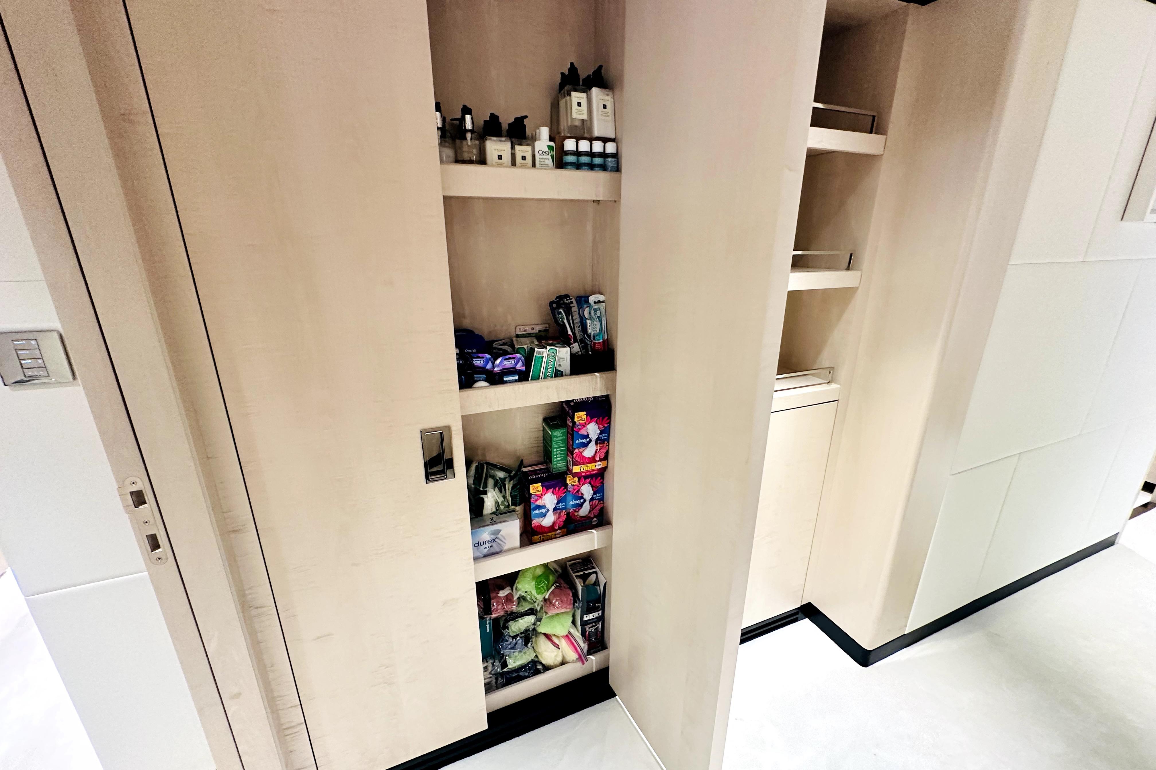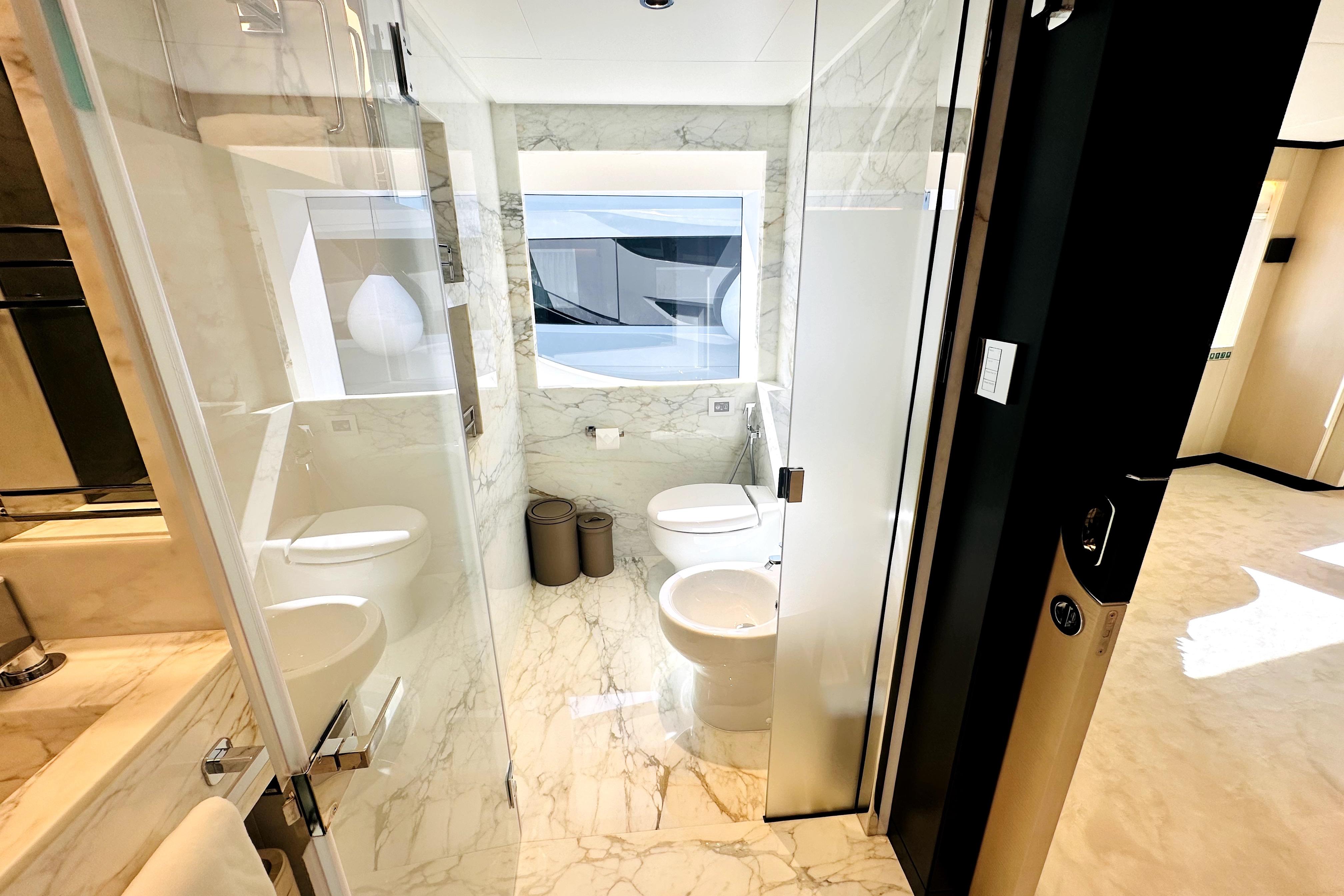 VIP Cabin: Lower deck with walk-in closet and en-suite marble bathroom.