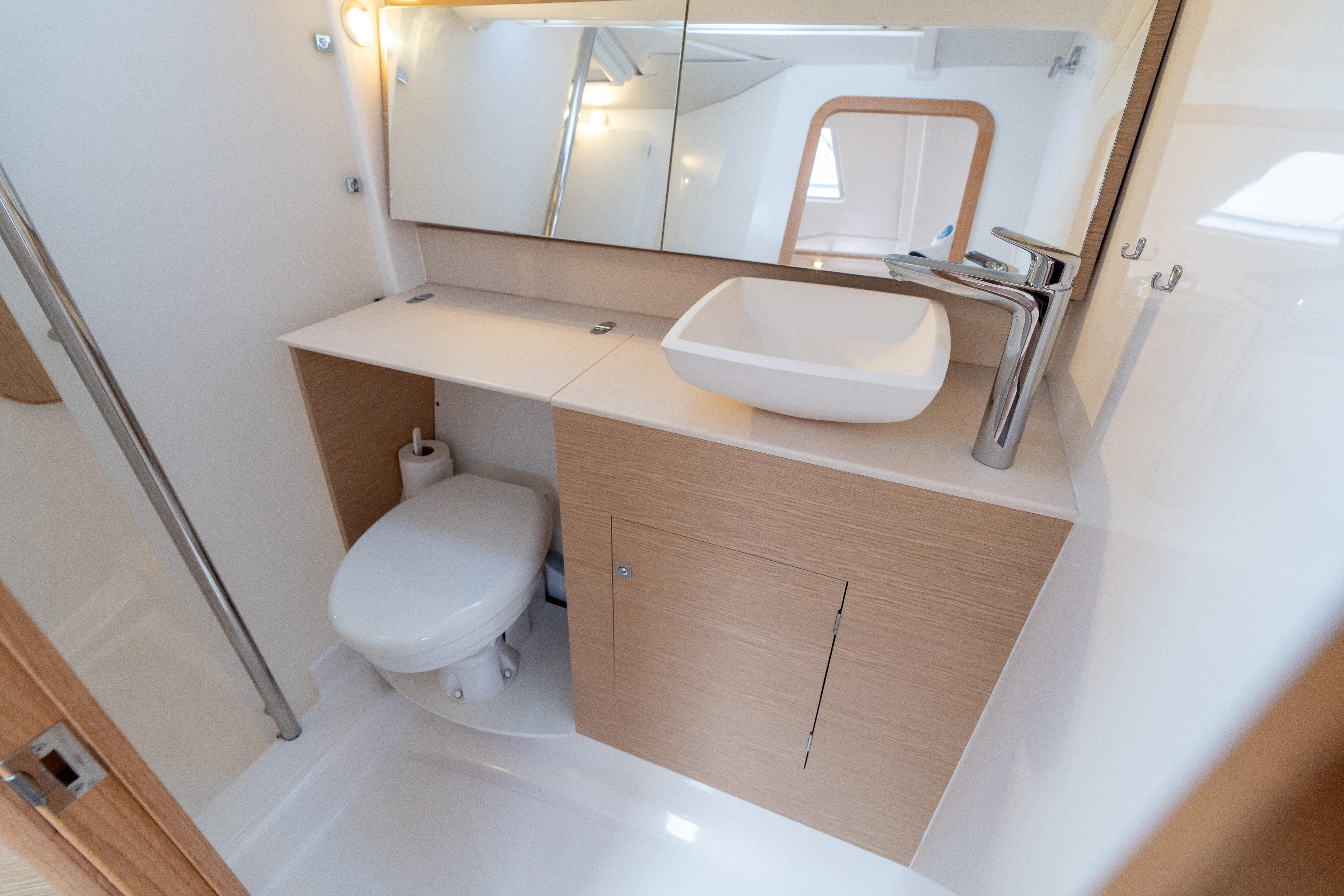 - Spacious aft cabin to starboard with double berth and cockpit portlight