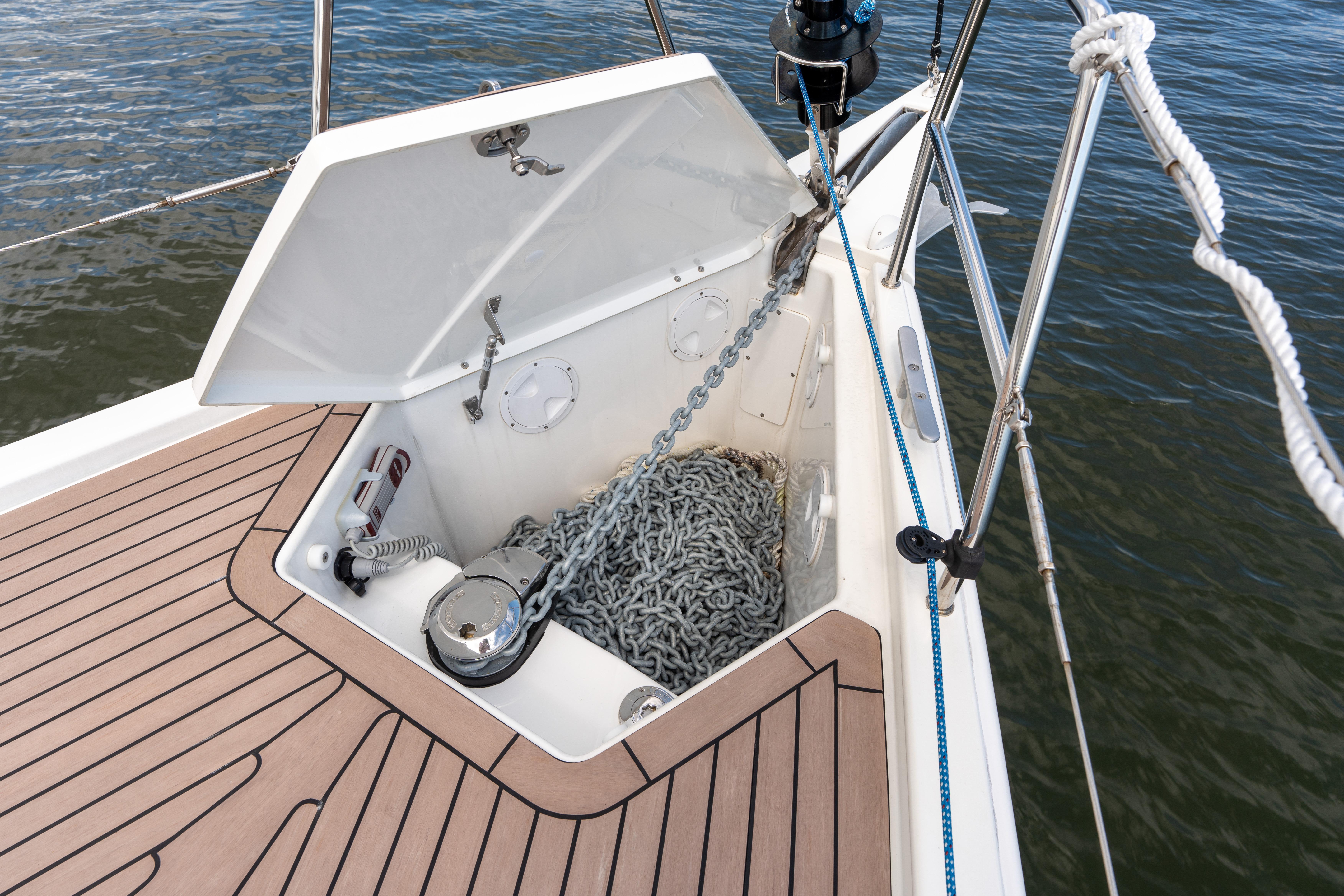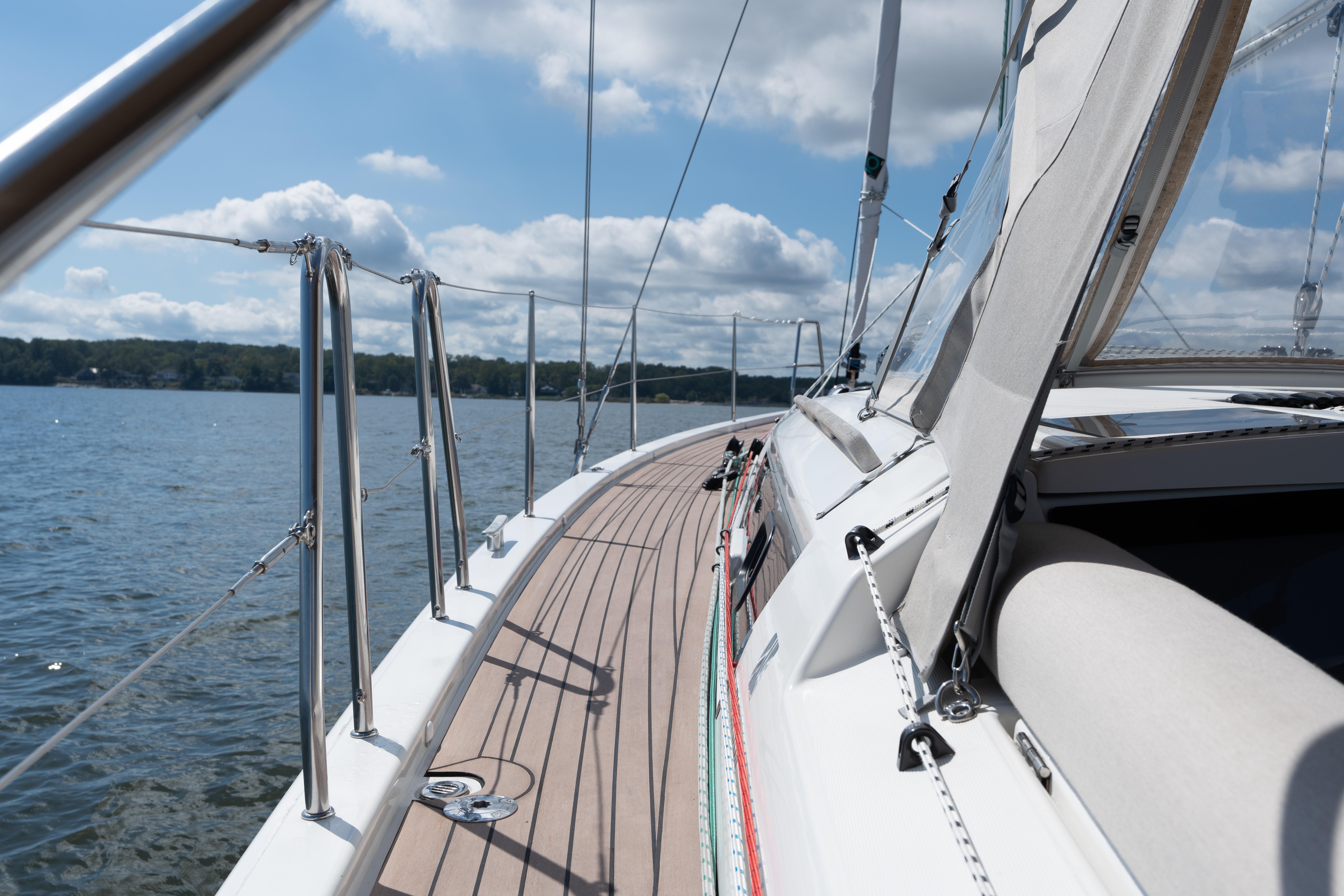 She is equipped with an In-Mast Furling Mainsail System, providing effortless sail handling and simple reefing directly from the cockpit. All major sail controls are led aft to the helm for single-handed sailing, a major custom upgrade that enhances safety, ease, and confidence while underway.